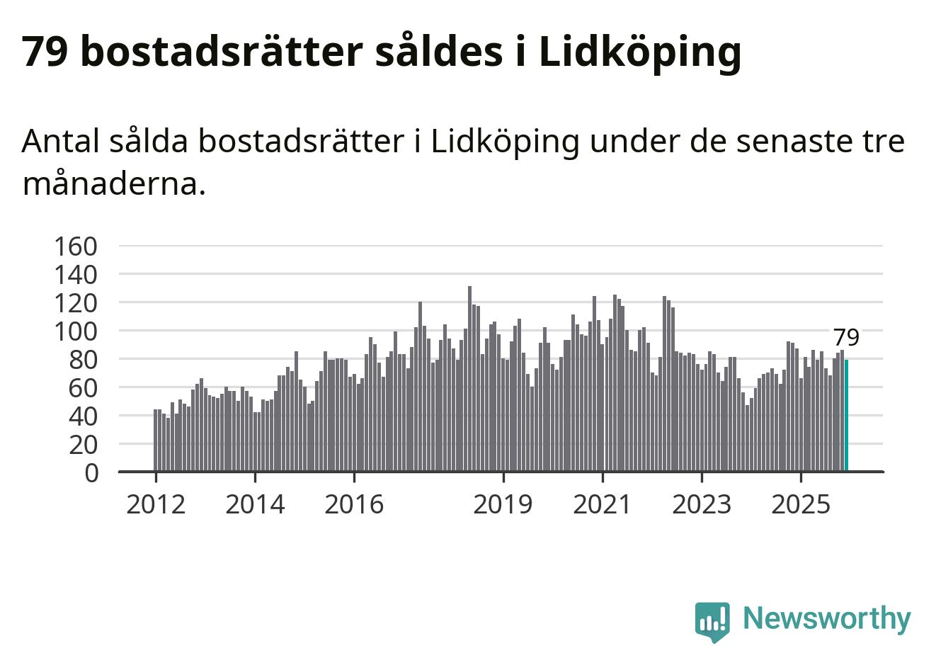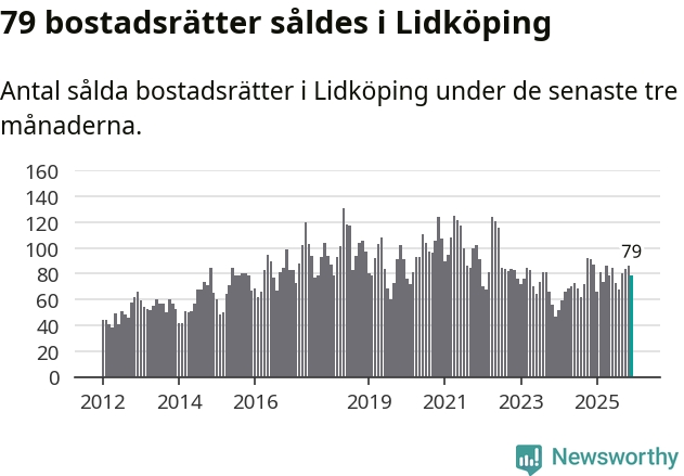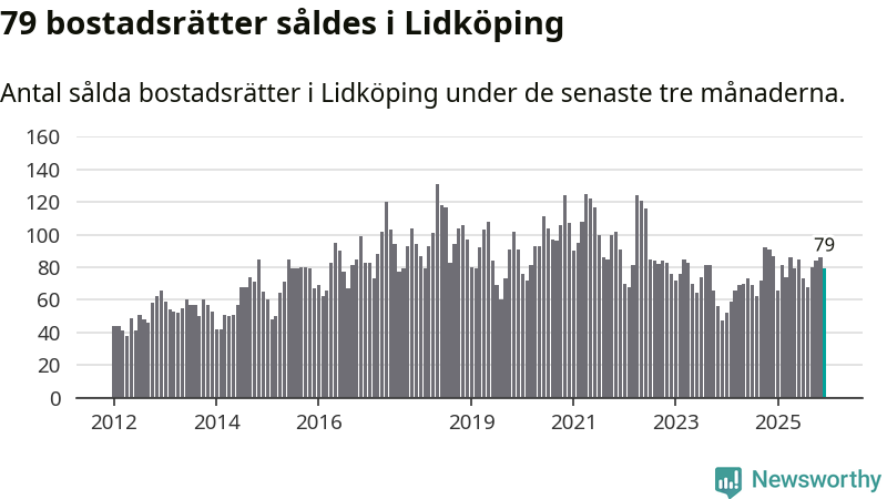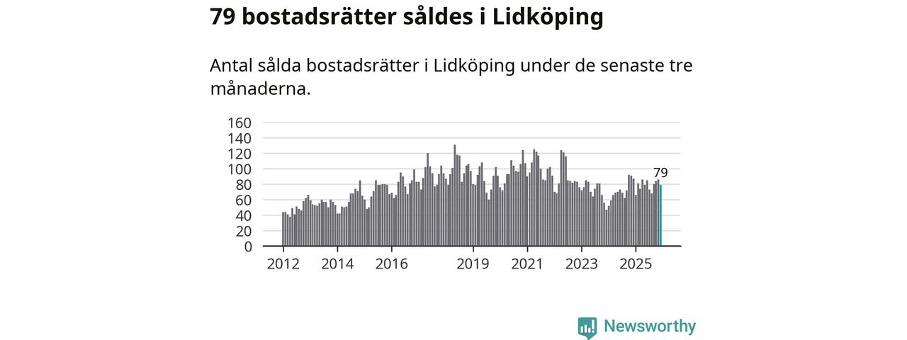 Sammanlagt såldes 79 bostadsrätter i Lidköpings kommun mellan oktober och december till ett genomsnittligt pris på 0,8 miljoner kronor. I fjol gjordes 87 affärer vid den här tiden på året.