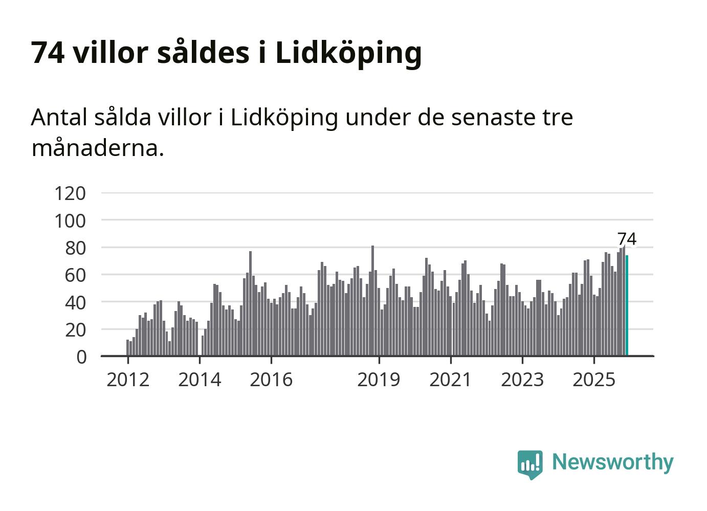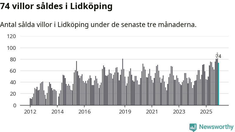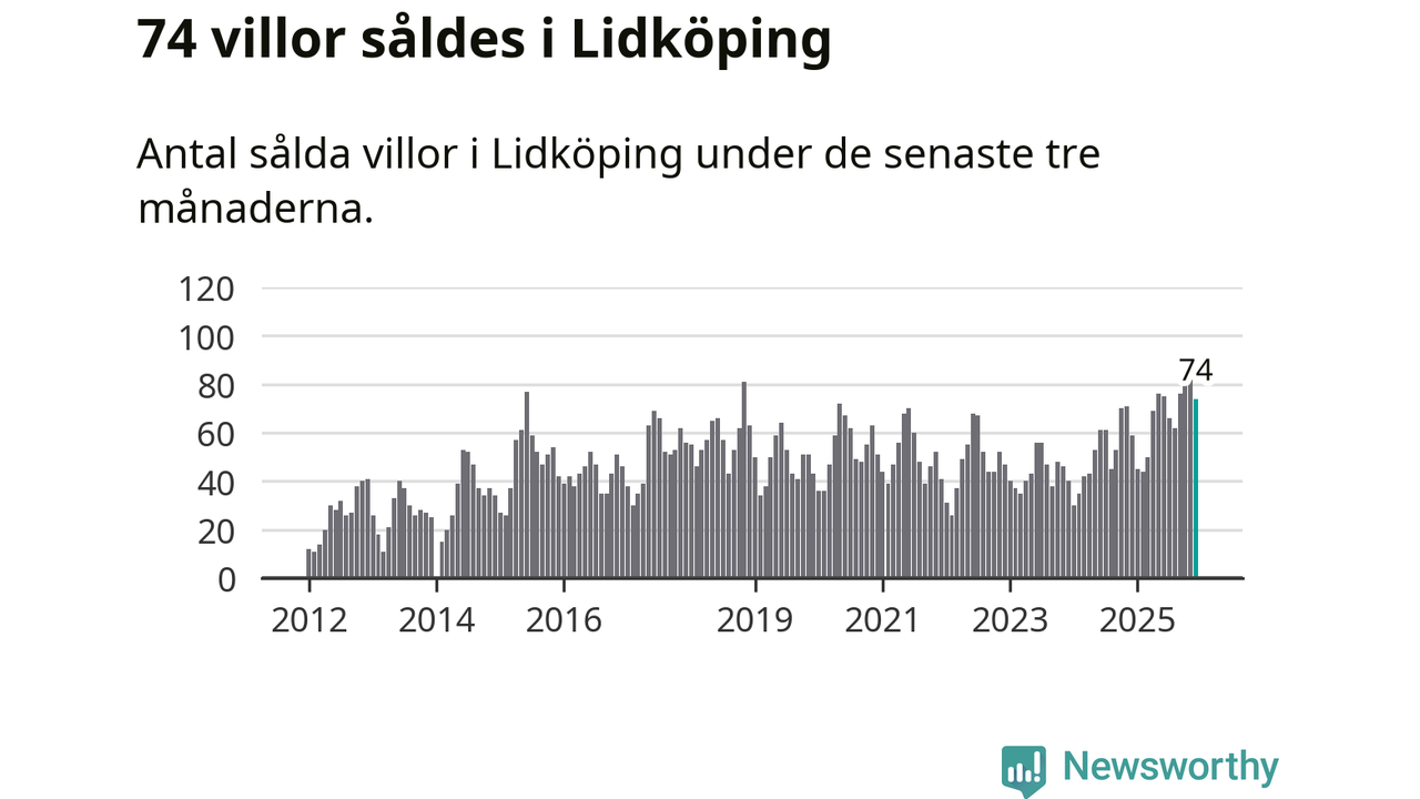 Sammanlagt såldes 74 villor i Lidköpings kommun mellan oktober och december till ett genomsnittligt pris på 3,1 miljoner kronor. I fjol gjordes 59 affärer vid den här tiden på året.