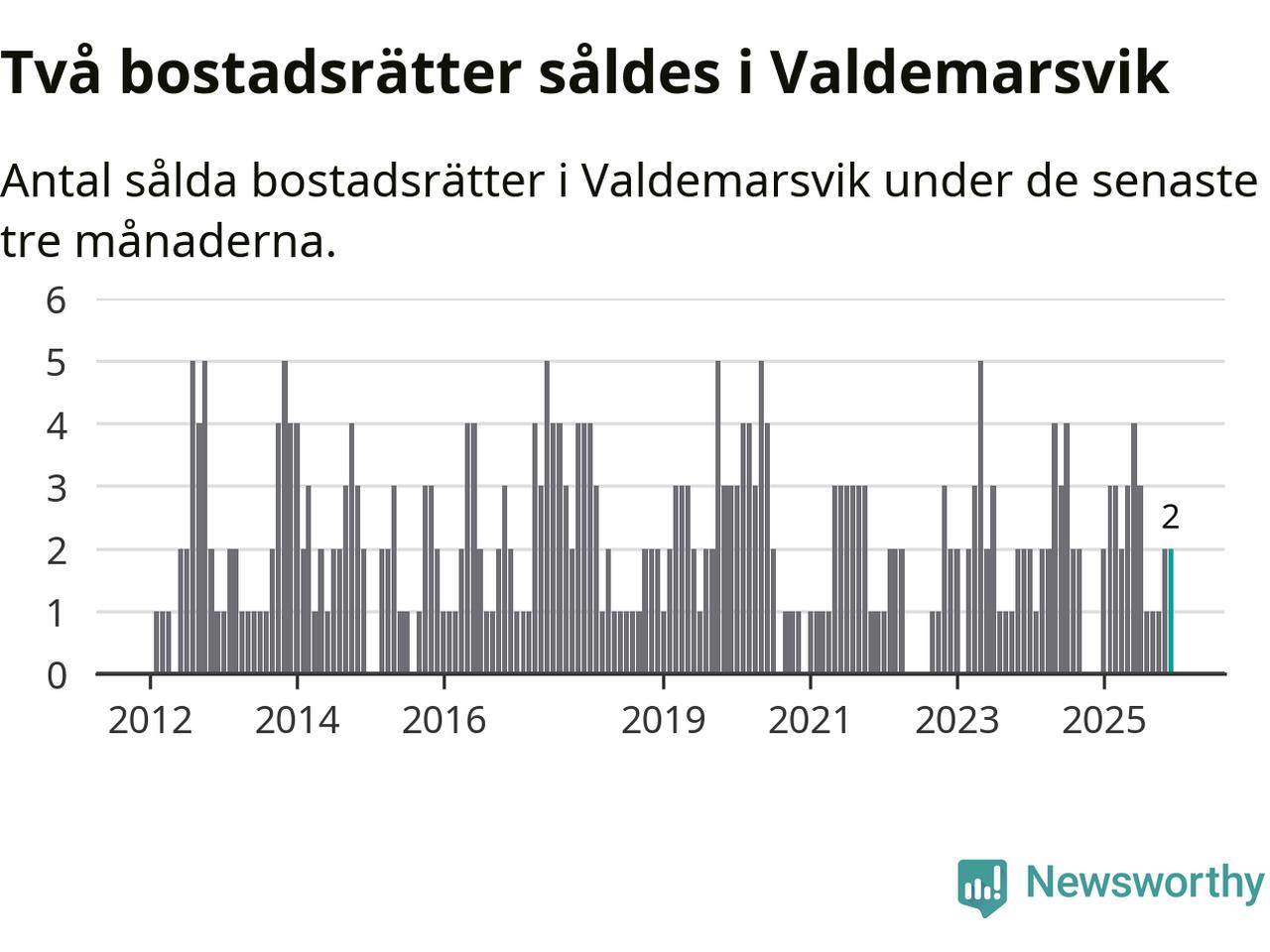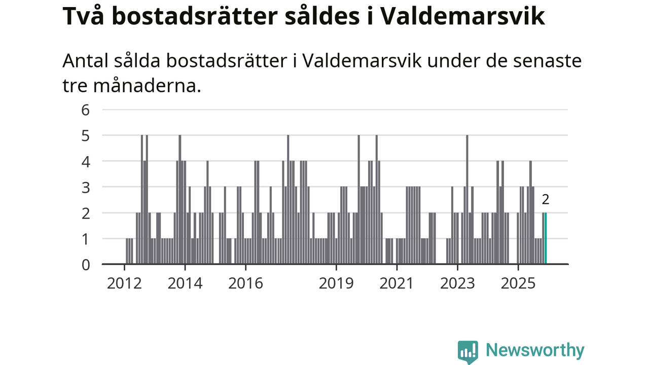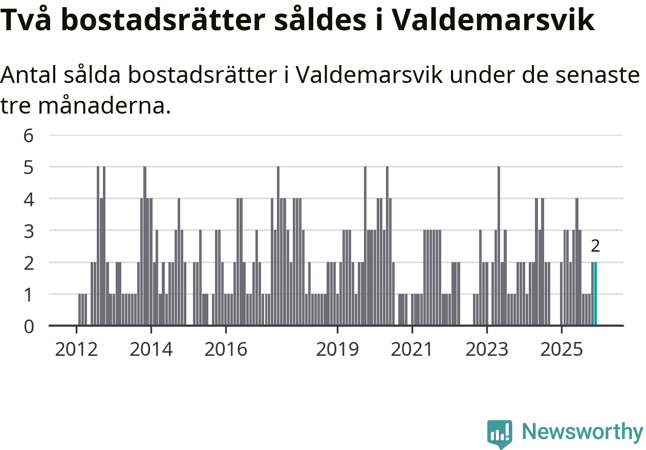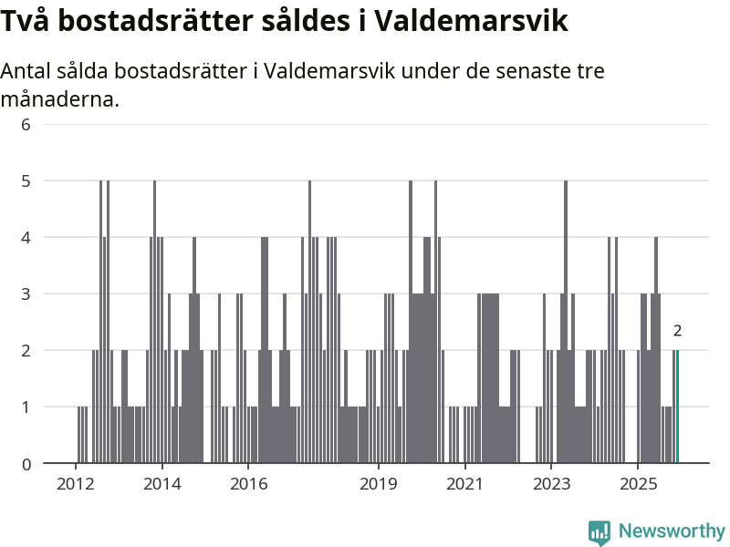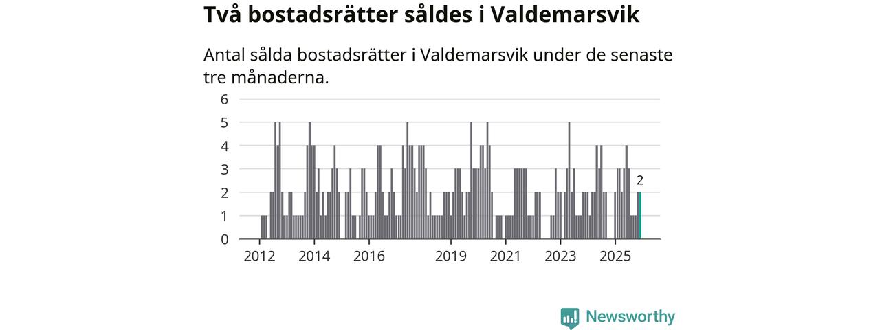 Mellan oktober och december gjordes sammanlagt två affärer med bostadsrätter i Valdemarsviks kommun.