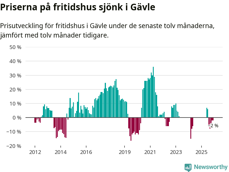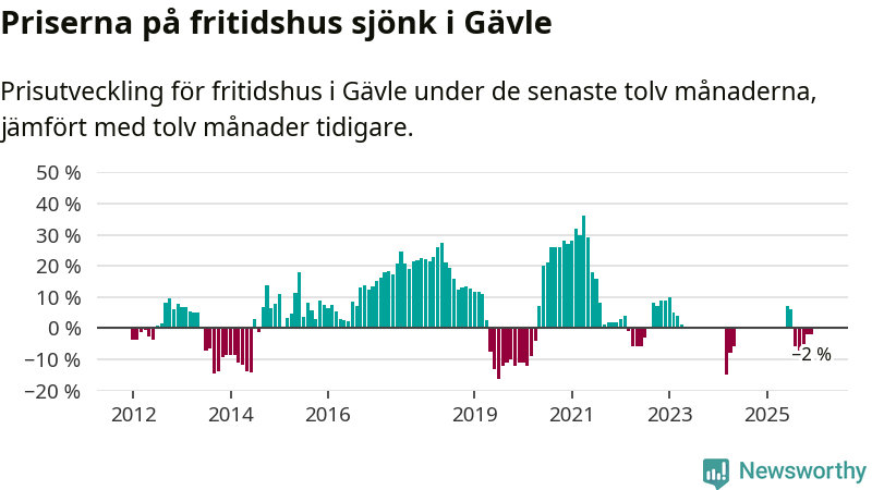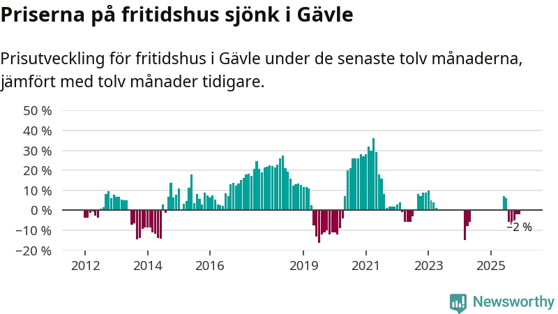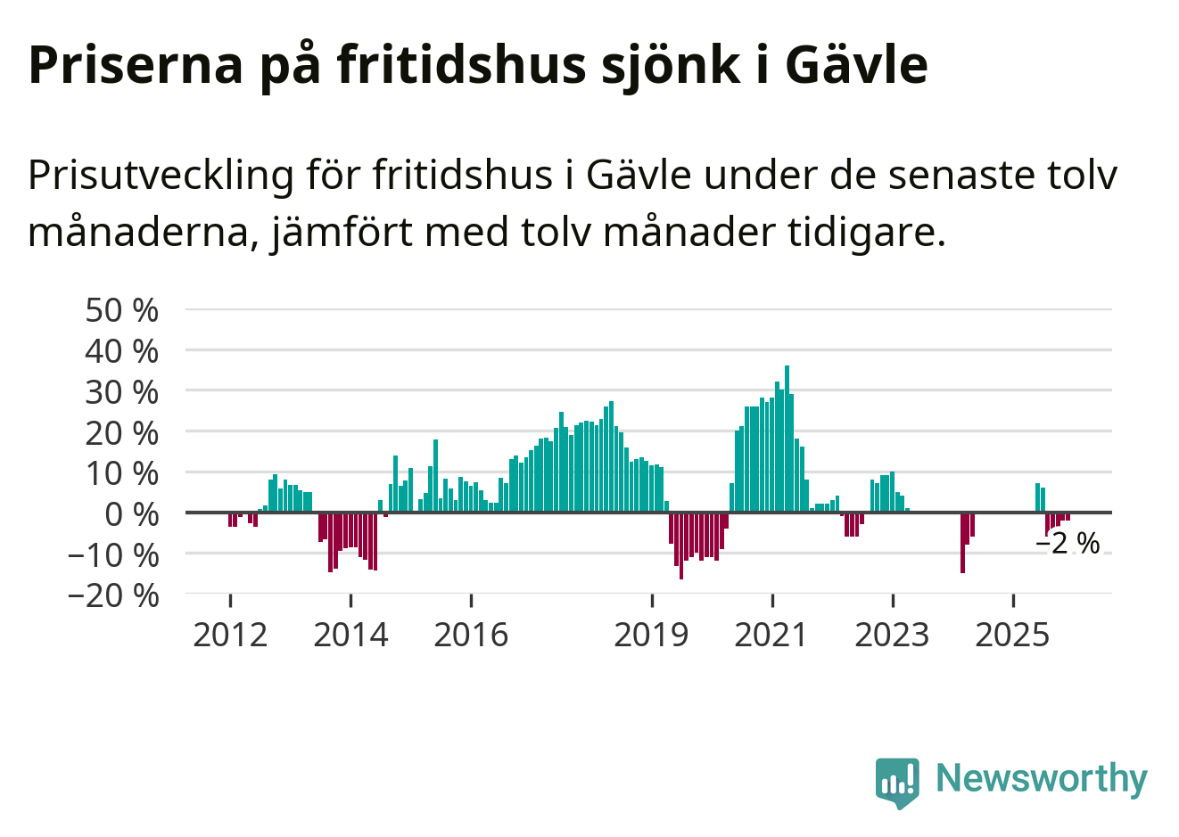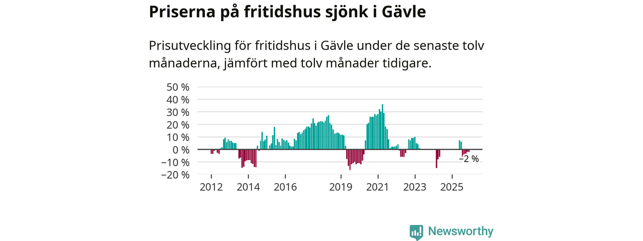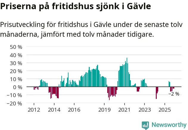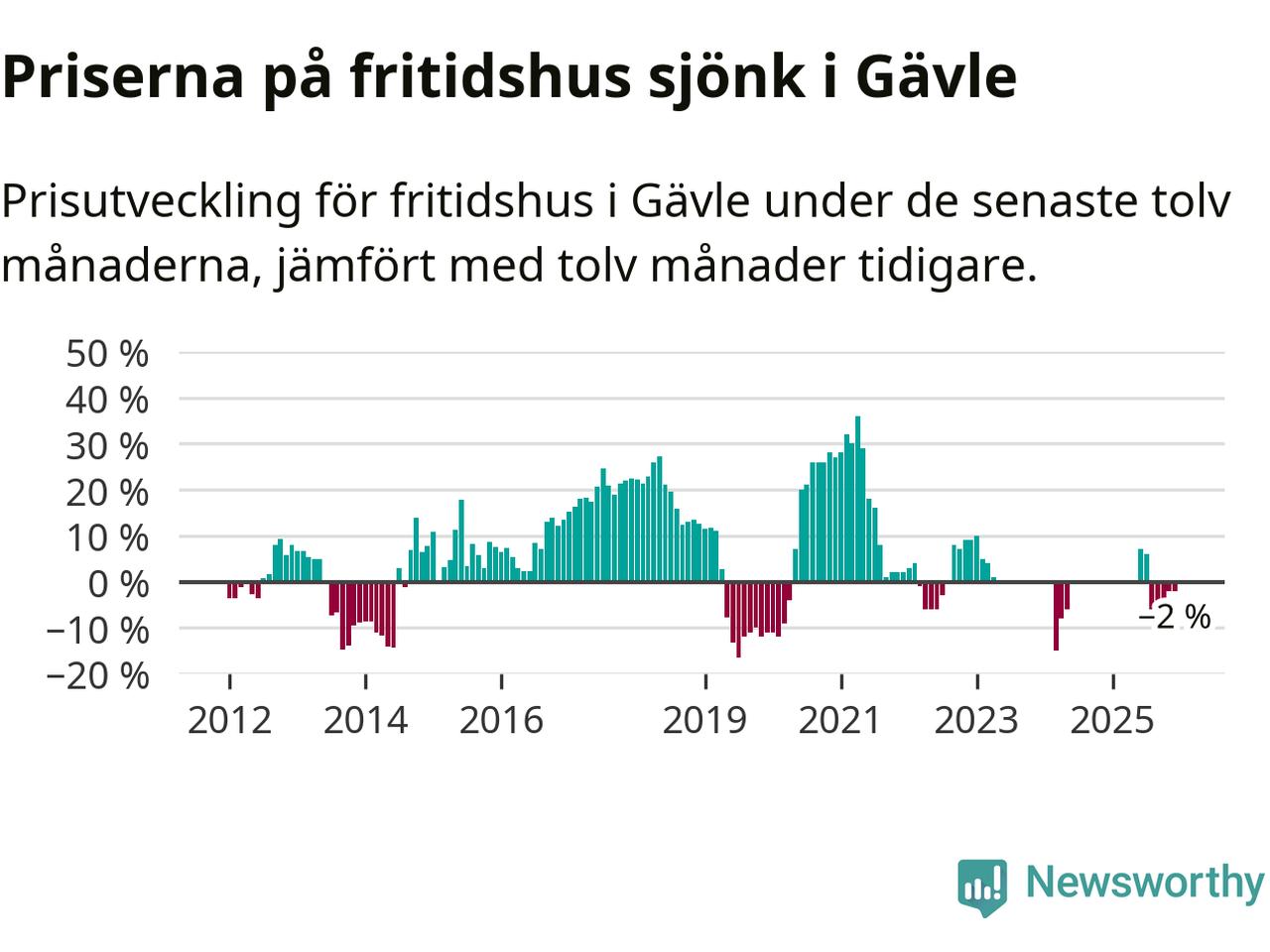 Priserna på fritidshus har gått ner i Gävle kommun. Medelpriset på försäljningarna under de senaste tolv månaderna visar på en nedgång med 2 procent.