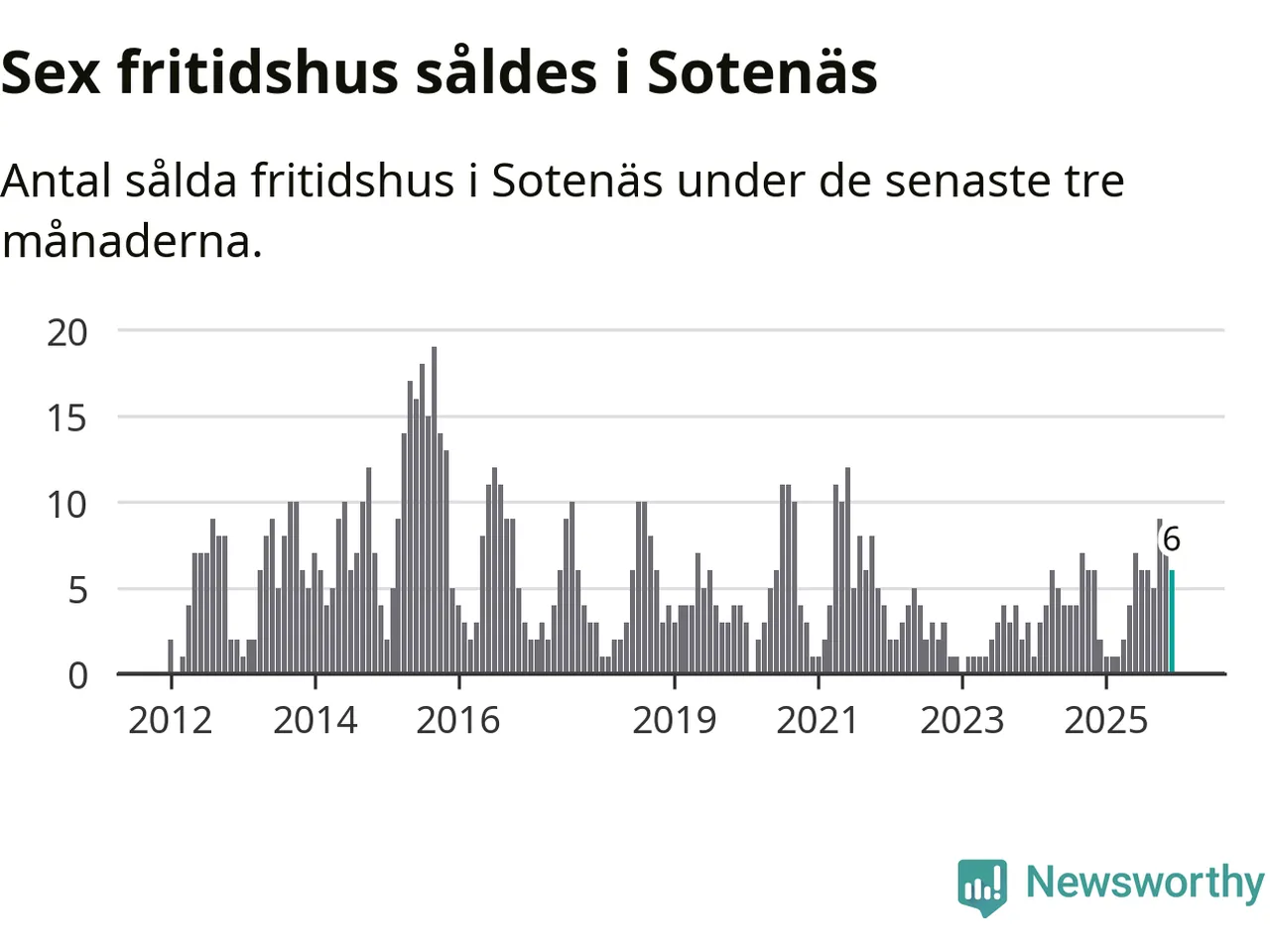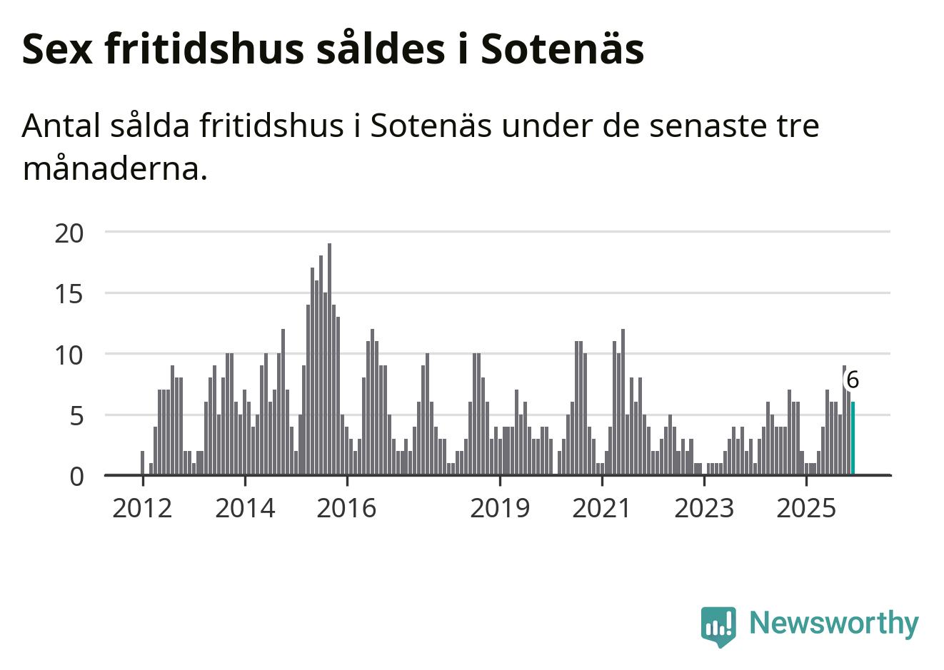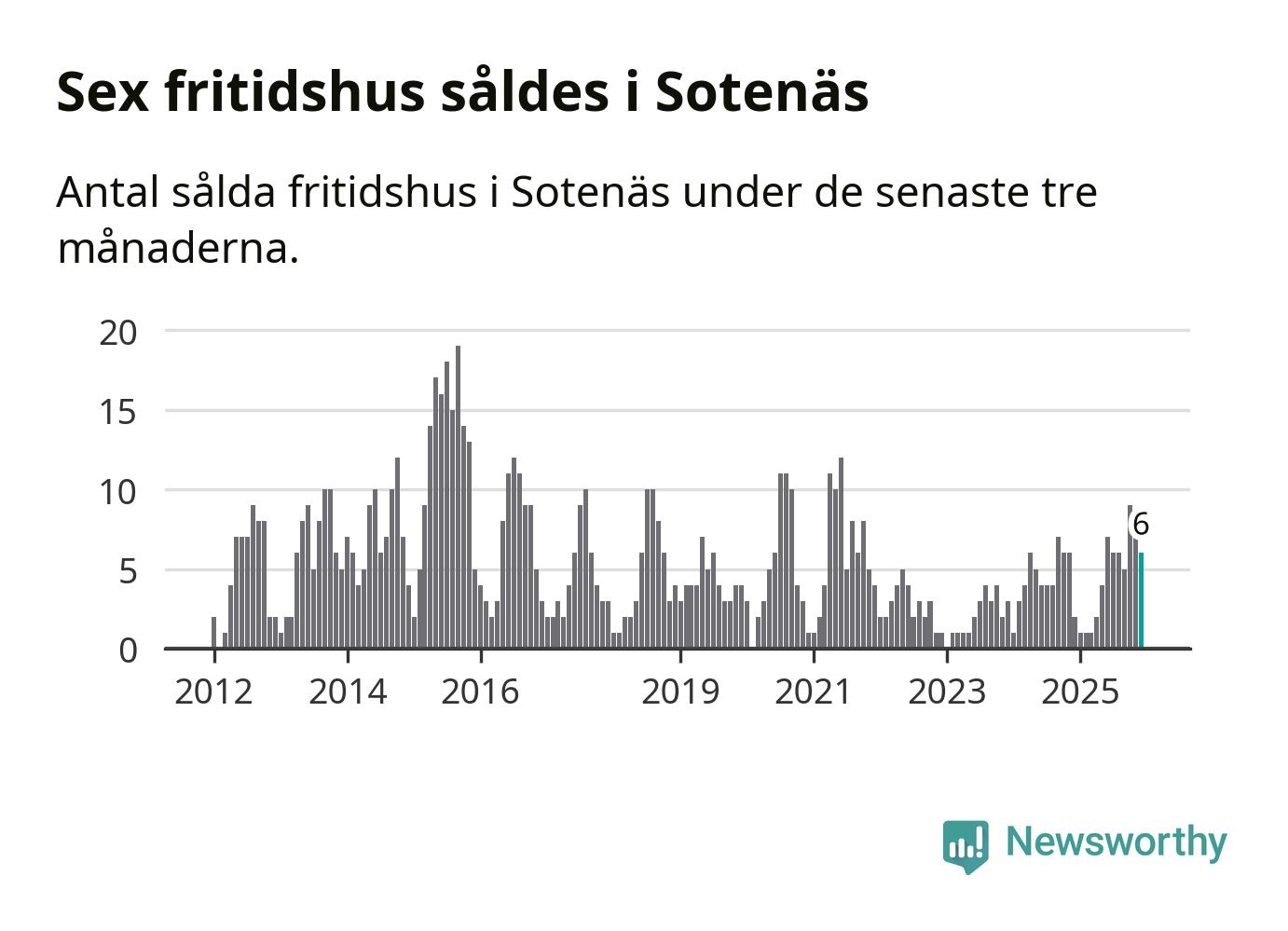 Mellan oktober och december gjordes sammanlagt sex affärer med fritidshus i Sotenäs kommun. Det kan jämföras med två vid motsvarande tid i fjol.