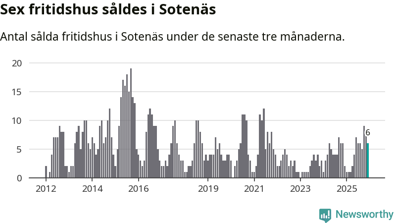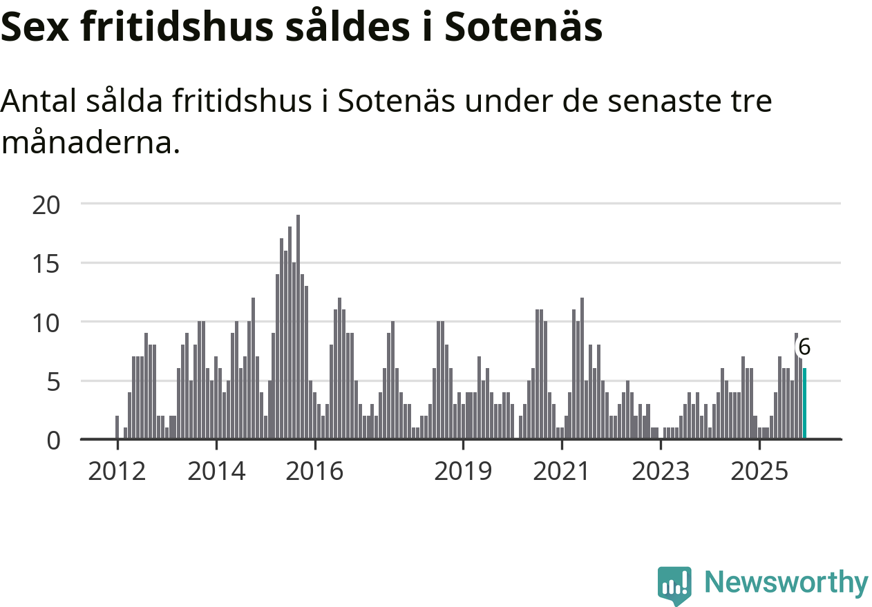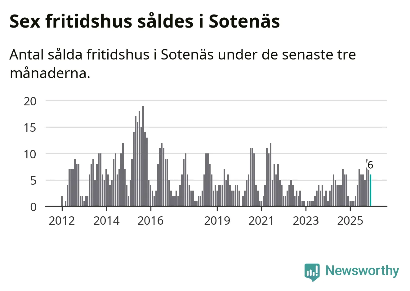 Mellan oktober och december gjordes sammanlagt sex affärer med fritidshus i Sotenäs kommun. Det kan jämföras med två vid motsvarande tid i fjol.