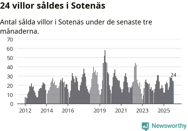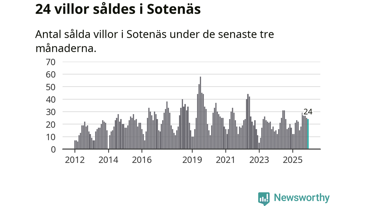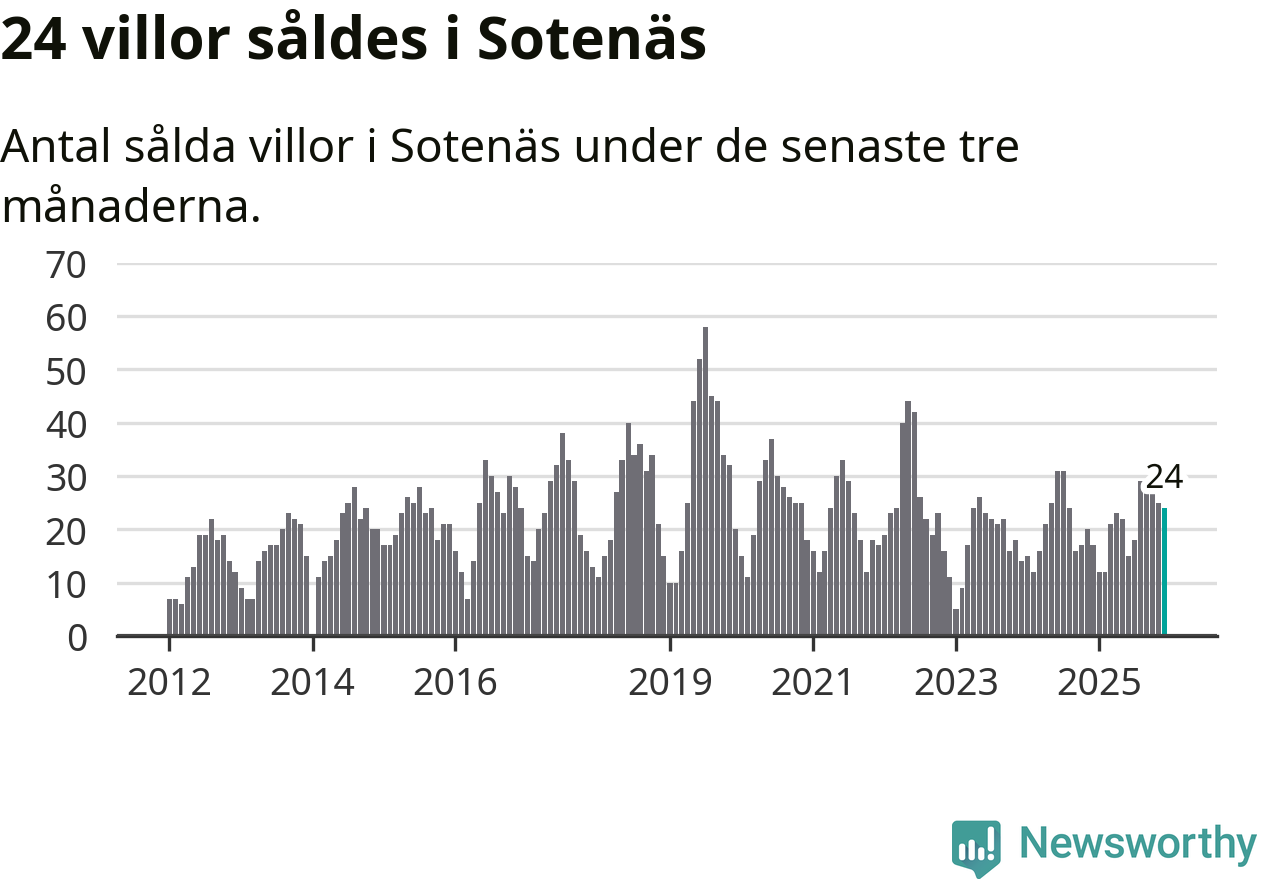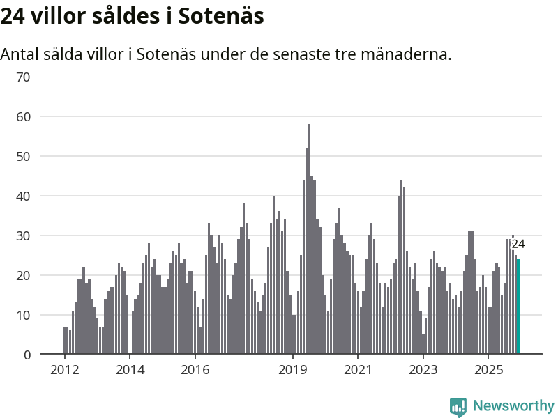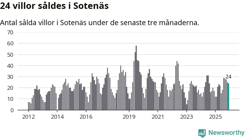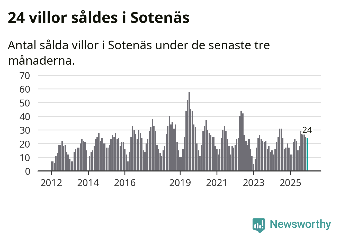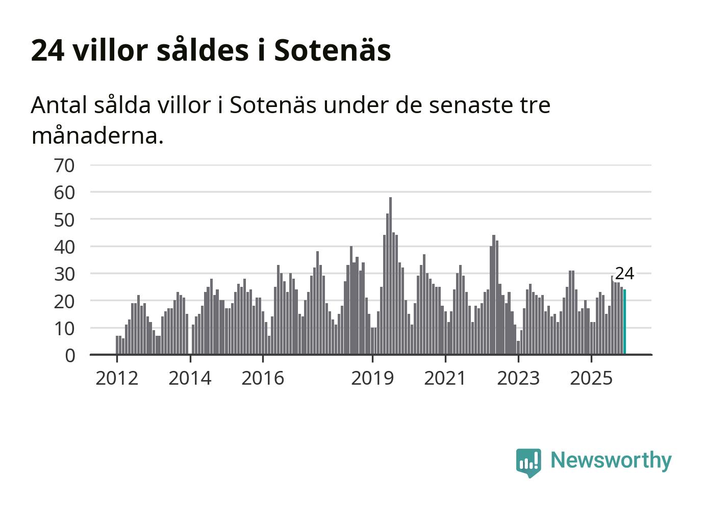 Mellan oktober och december gjordes sammanlagt 24 affärer med villor i Sotenäs kommun. Det kan jämföras med 17 vid motsvarande tid i fjol.