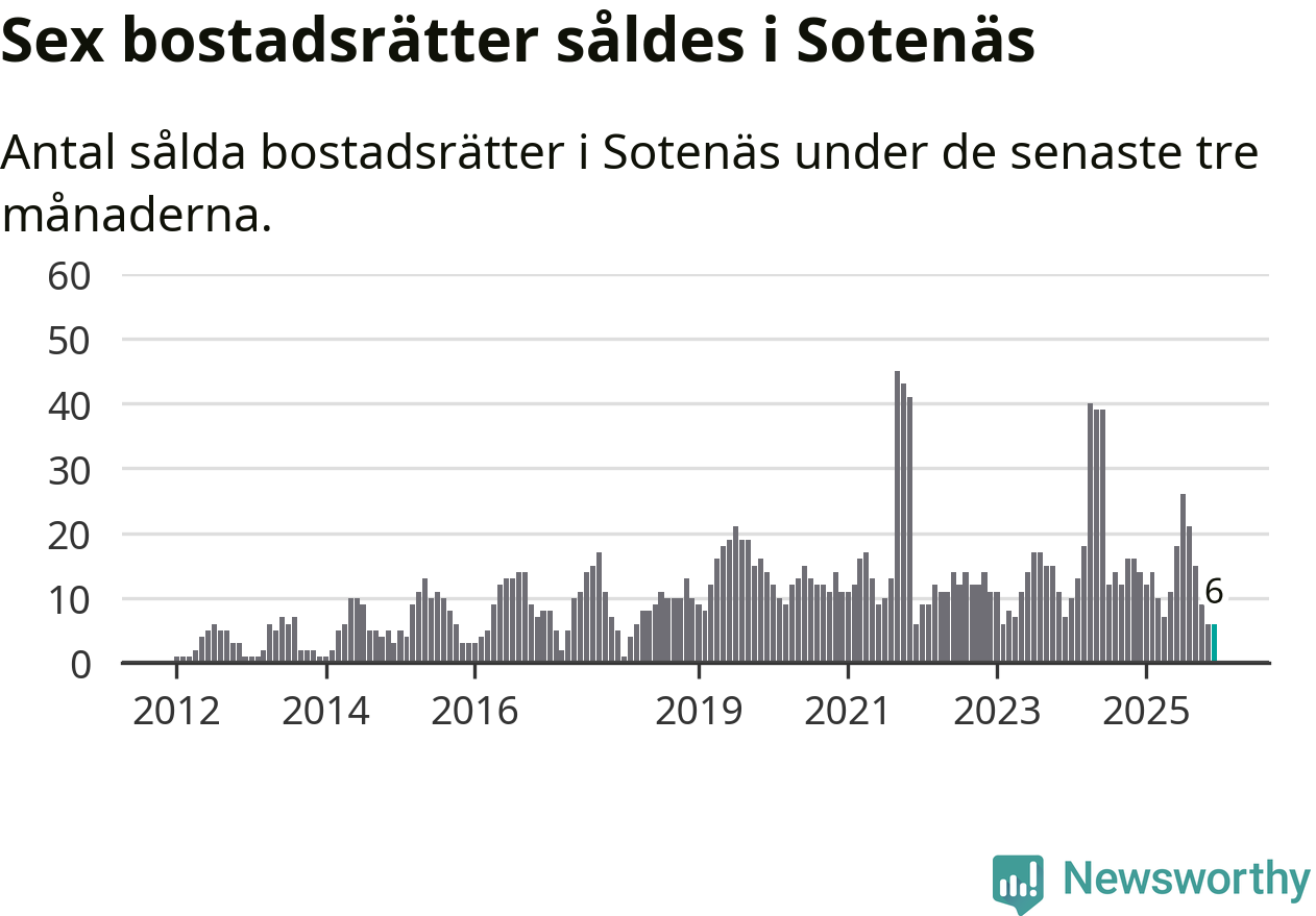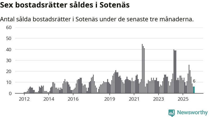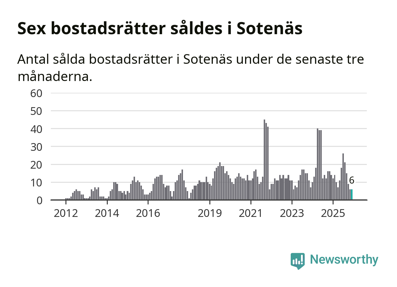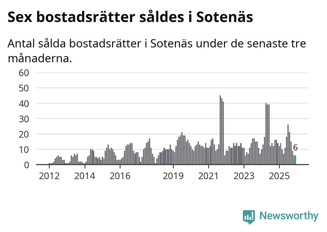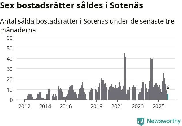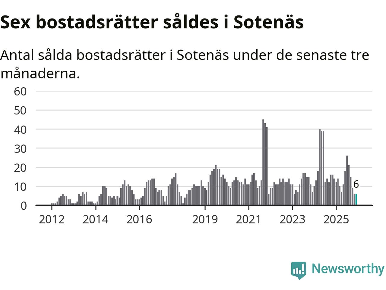 Mellan oktober och december gjordes sammanlagt sex affärer med bostadsrätter i Sotenäs kommun. Det kan jämföras med 14 vid motsvarande tid i fjol.
