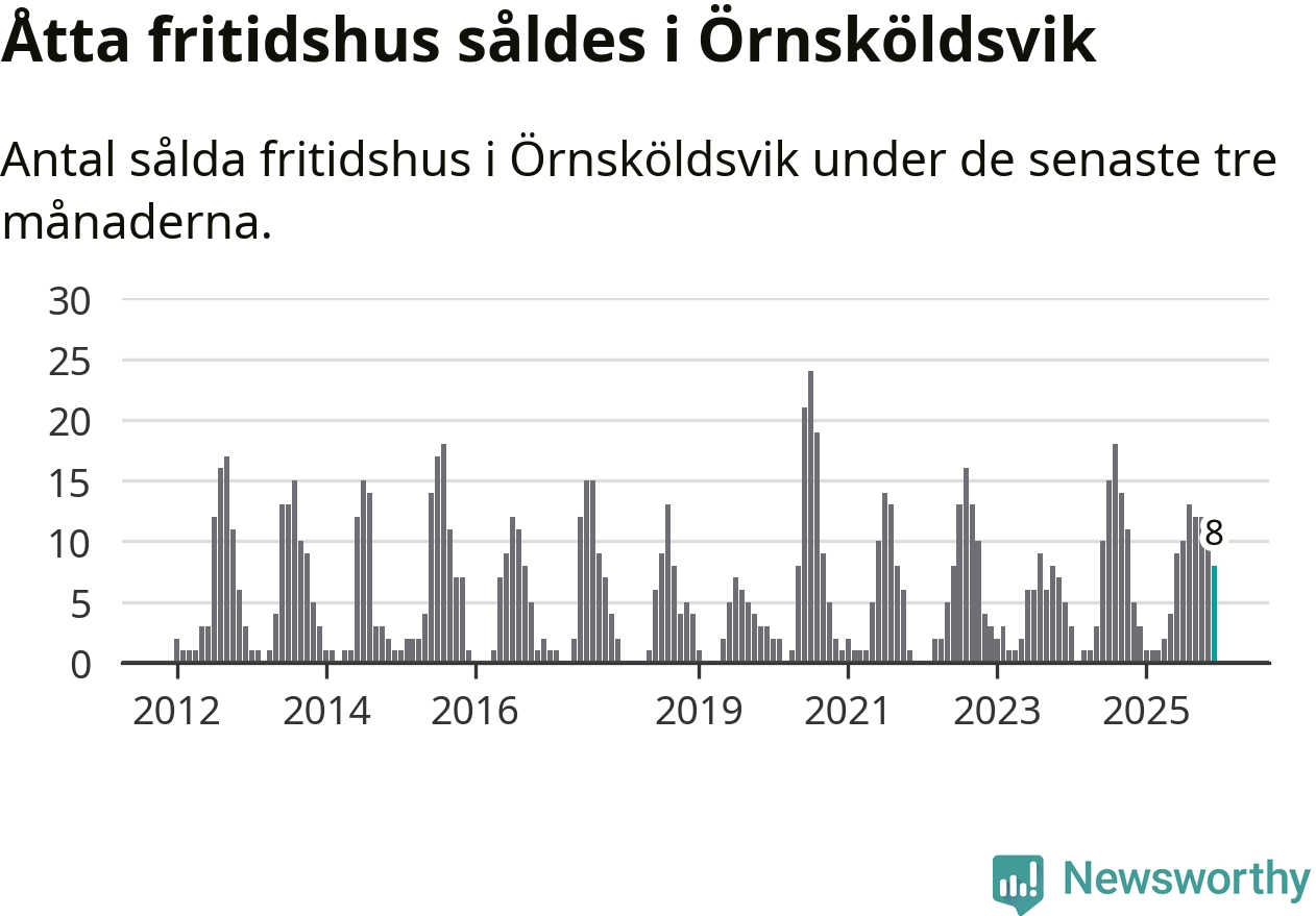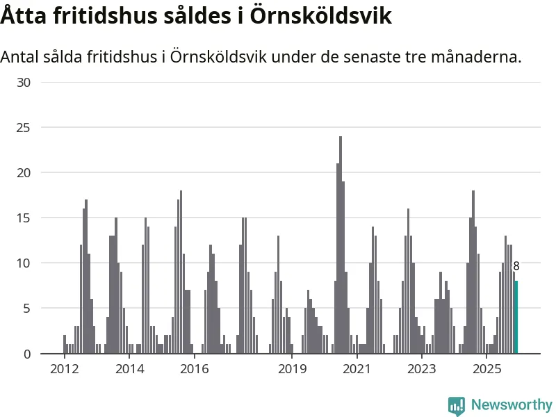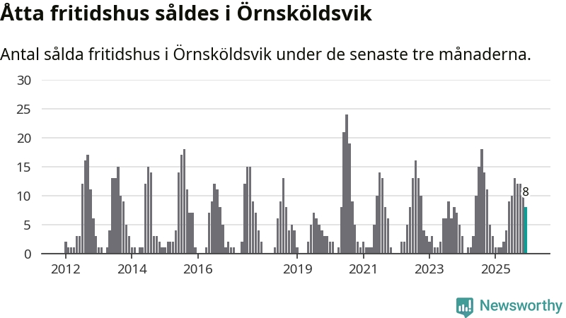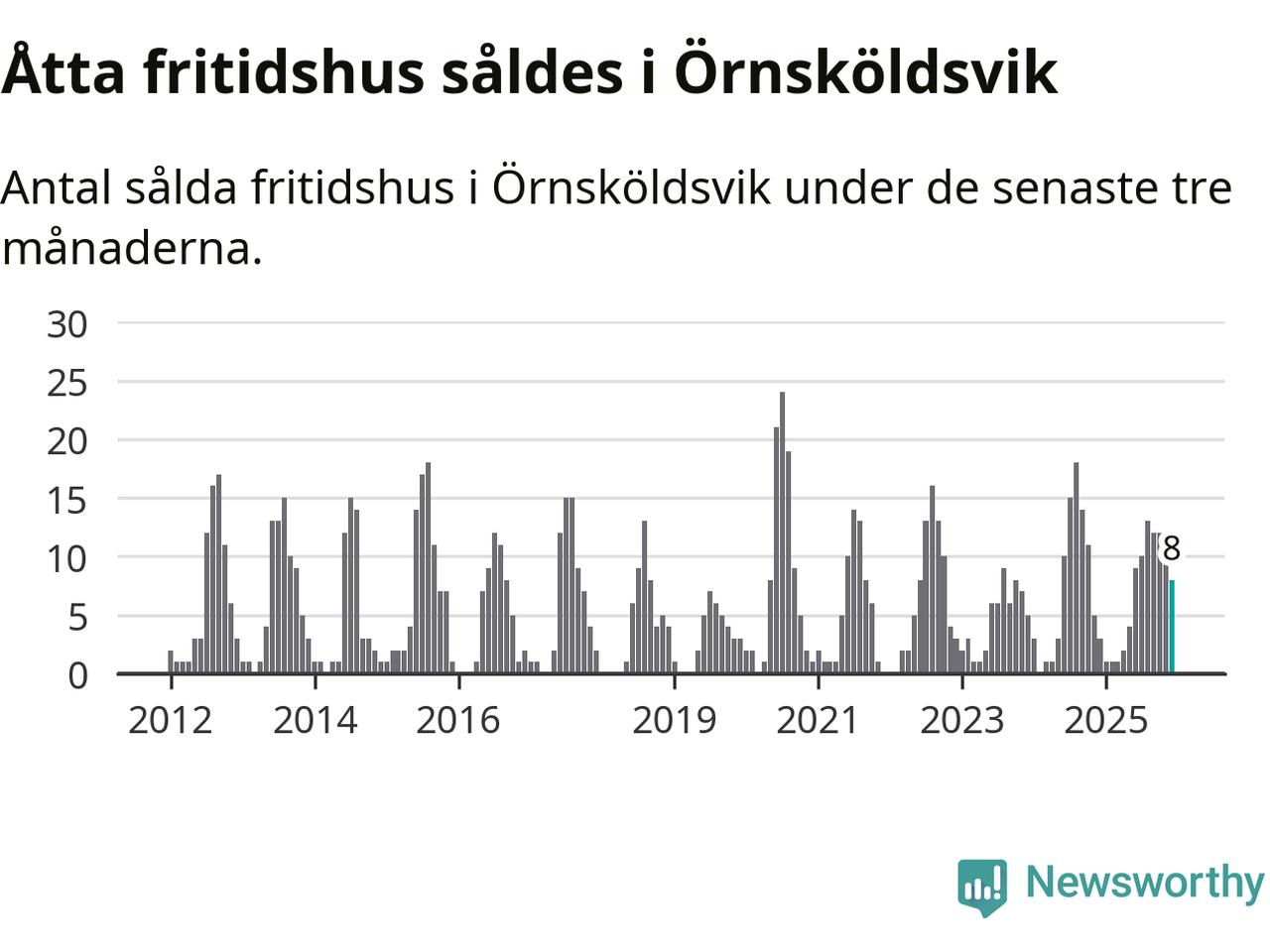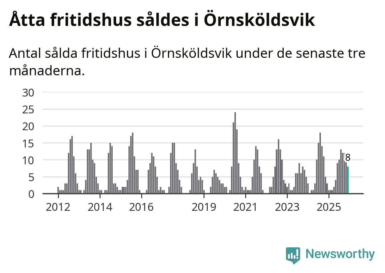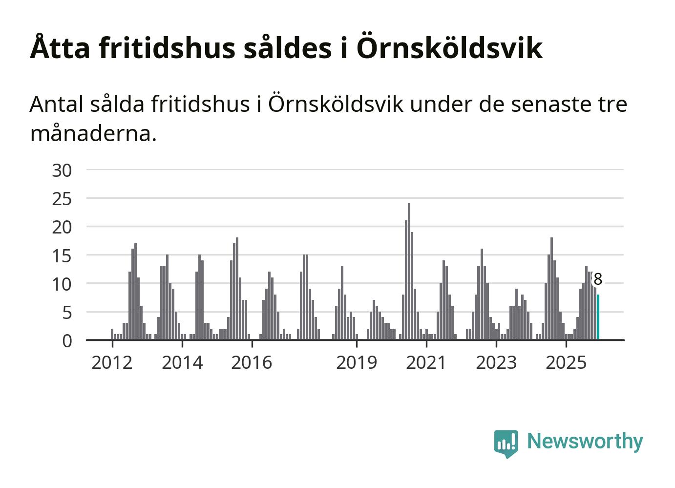 Mellan oktober och december gjordes sammanlagt åtta affärer med fritidshus i Örnsköldsviks kommun. Det kan jämföras med tre vid motsvarande tid i fjol.
