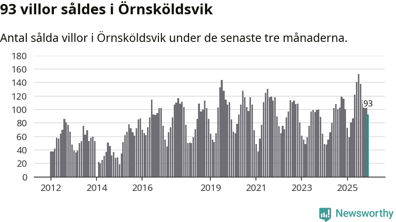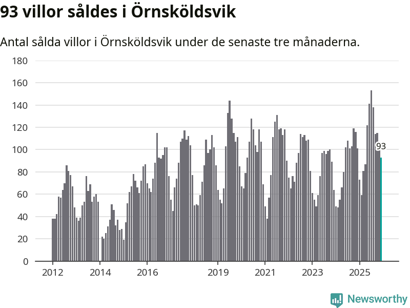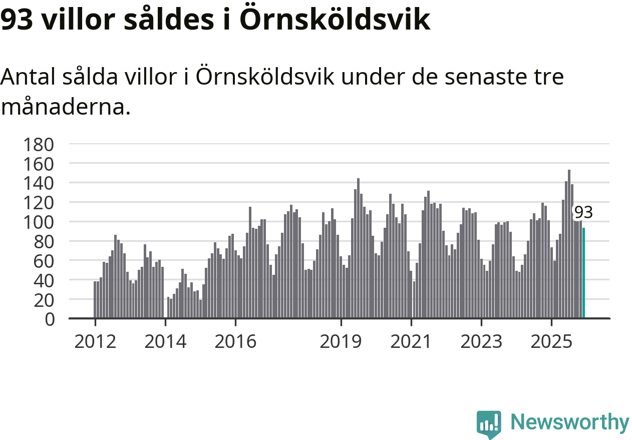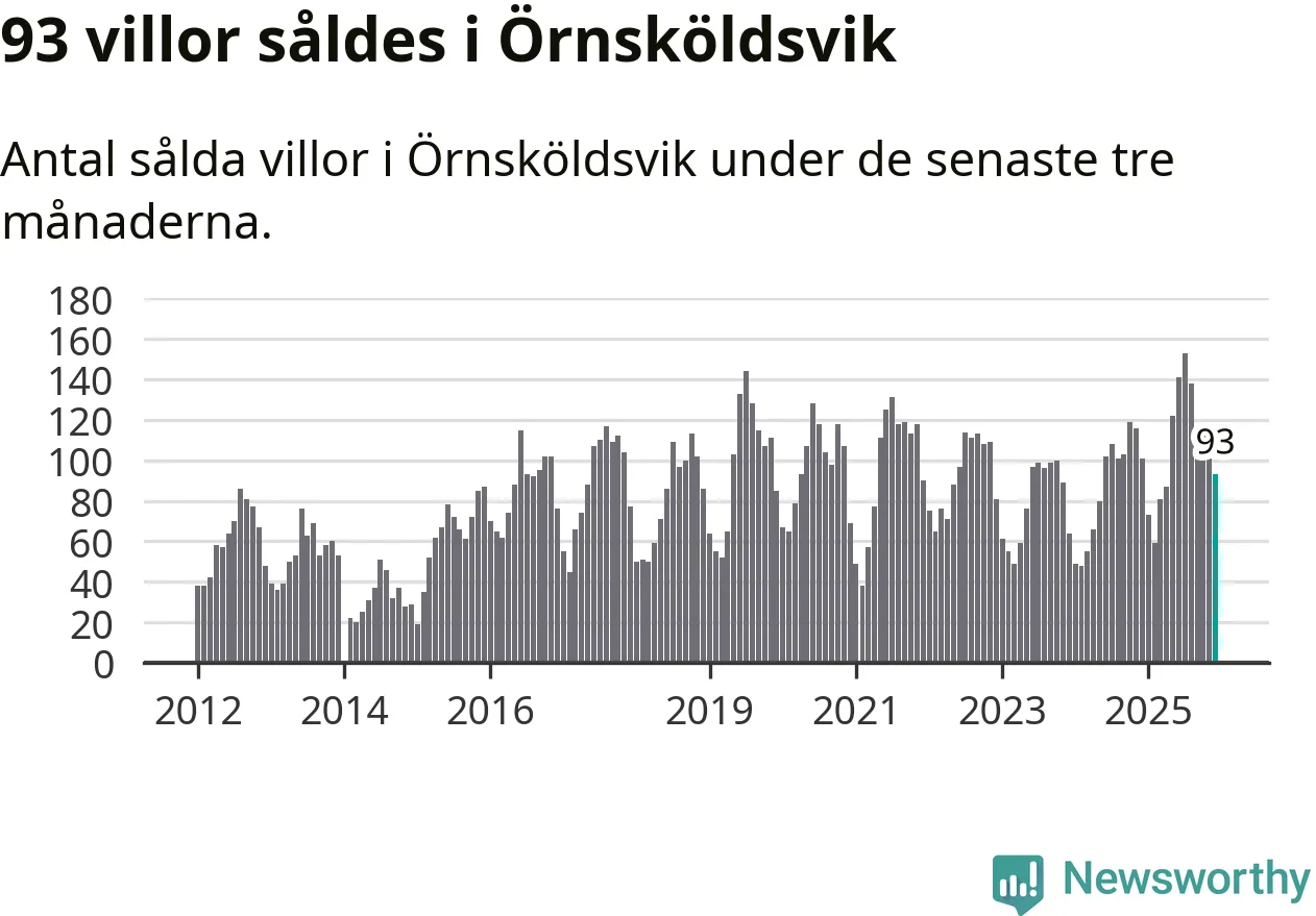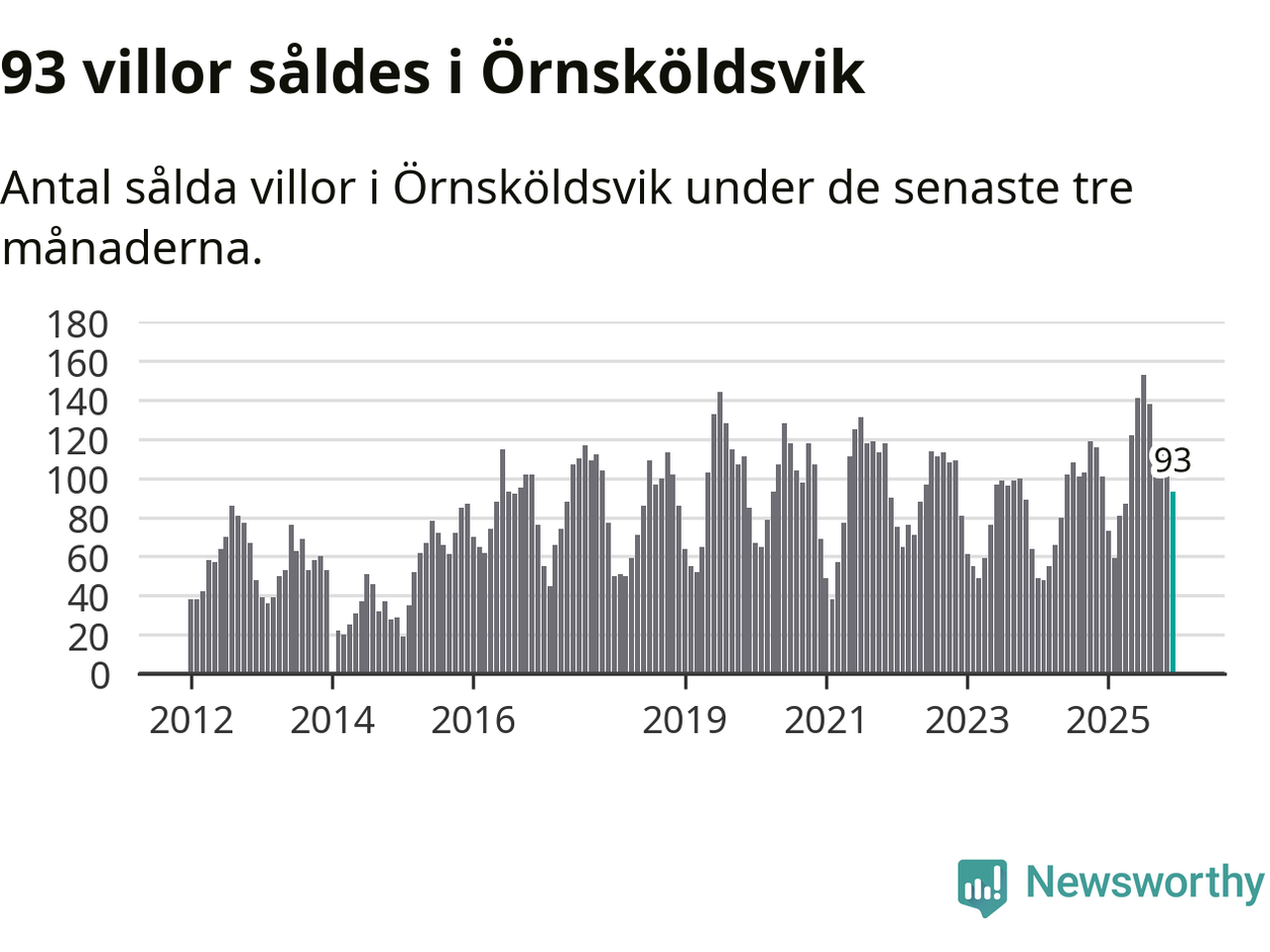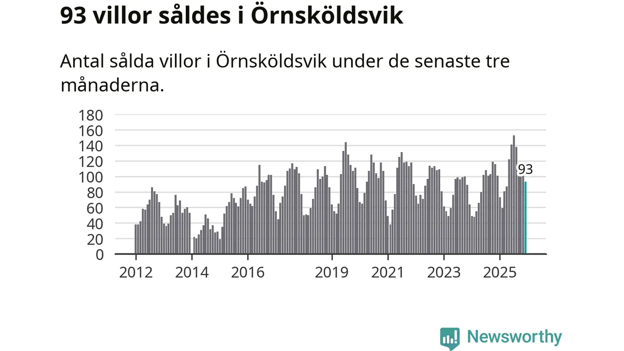 Sammanlagt såldes 93 villor i Örnsköldsviks kommun mellan oktober och december till ett genomsnittligt pris på 1,5 miljoner kronor. I fjol gjordes 101 affärer vid den här tiden på året.
