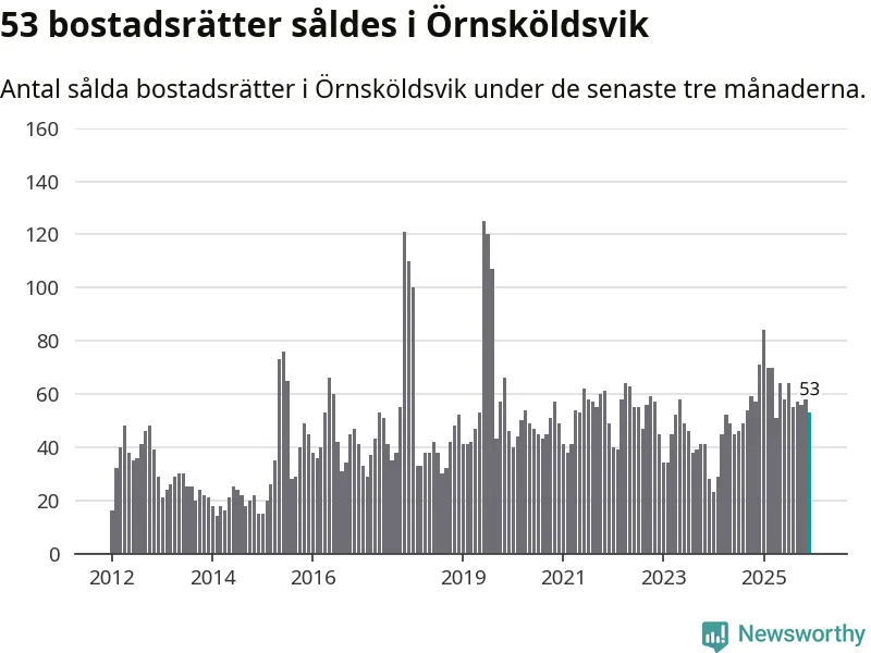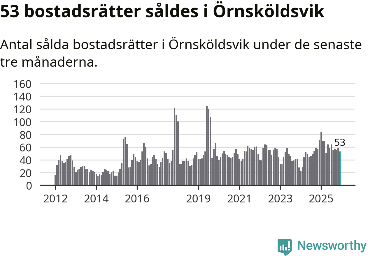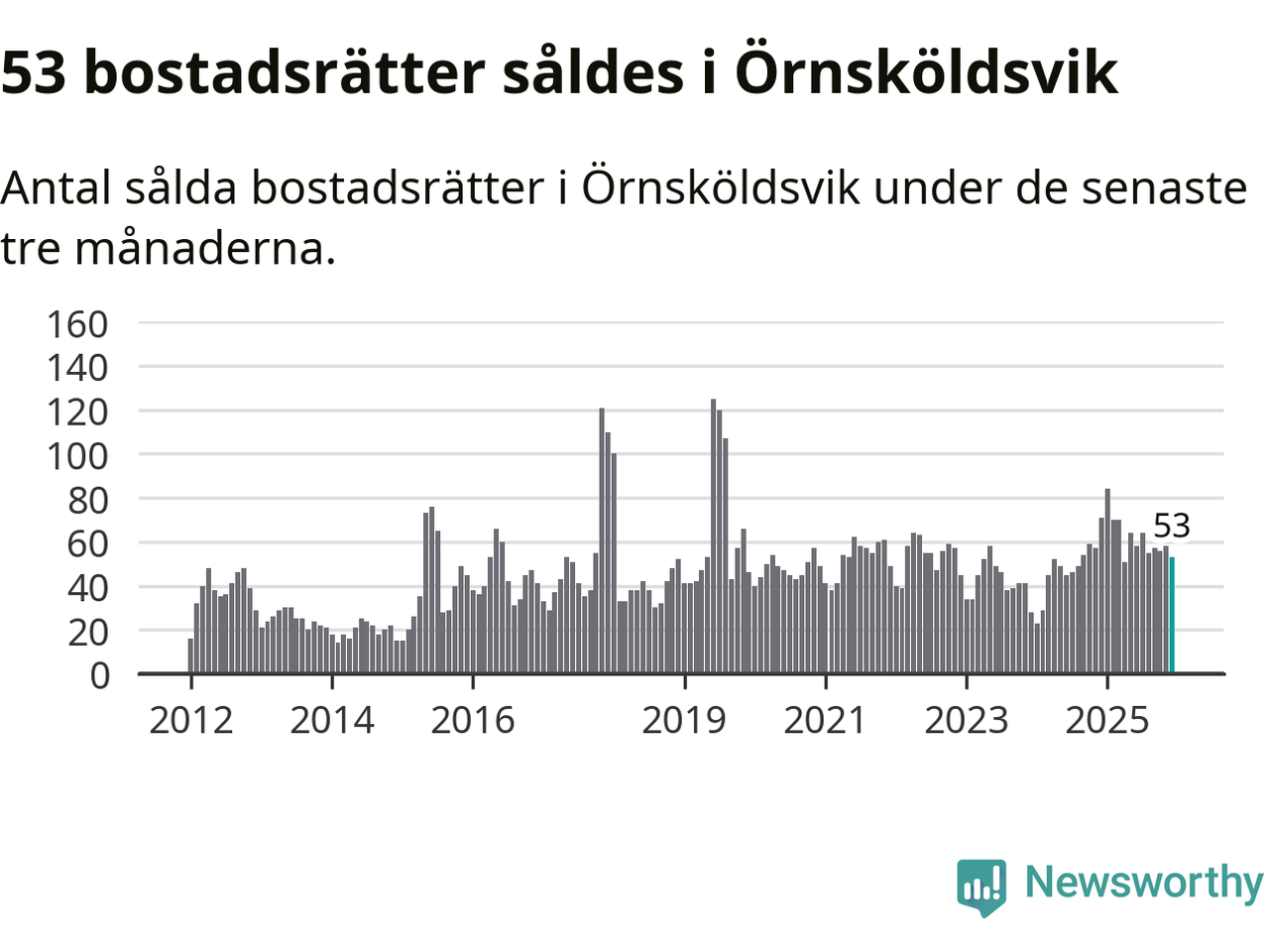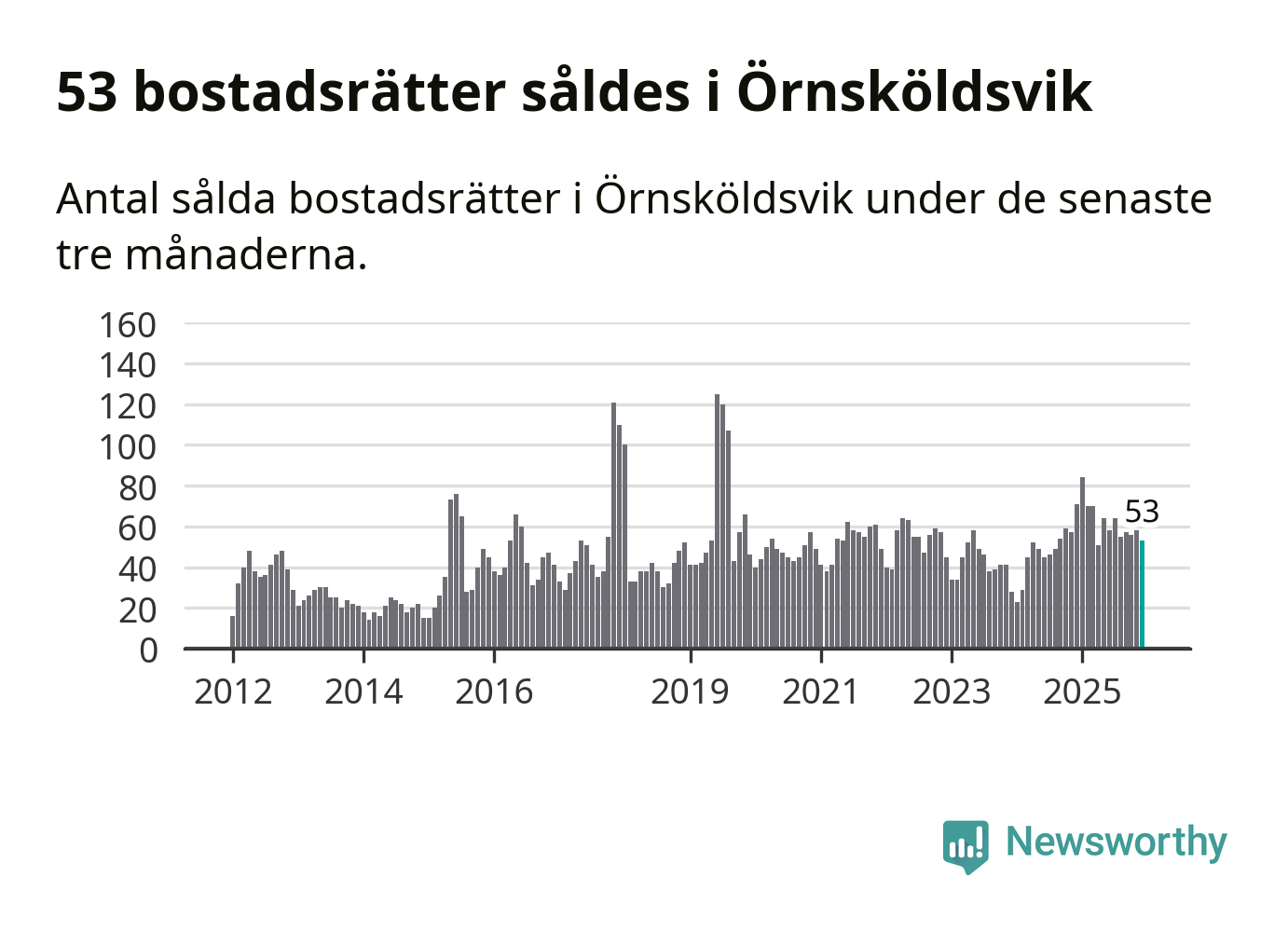 Sammanlagt såldes 53 bostadsrätter i Örnsköldsviks kommun mellan oktober och december till ett genomsnittligt pris på 1,5 miljoner kronor. I fjol gjordes 71 affärer vid den här tiden på året.