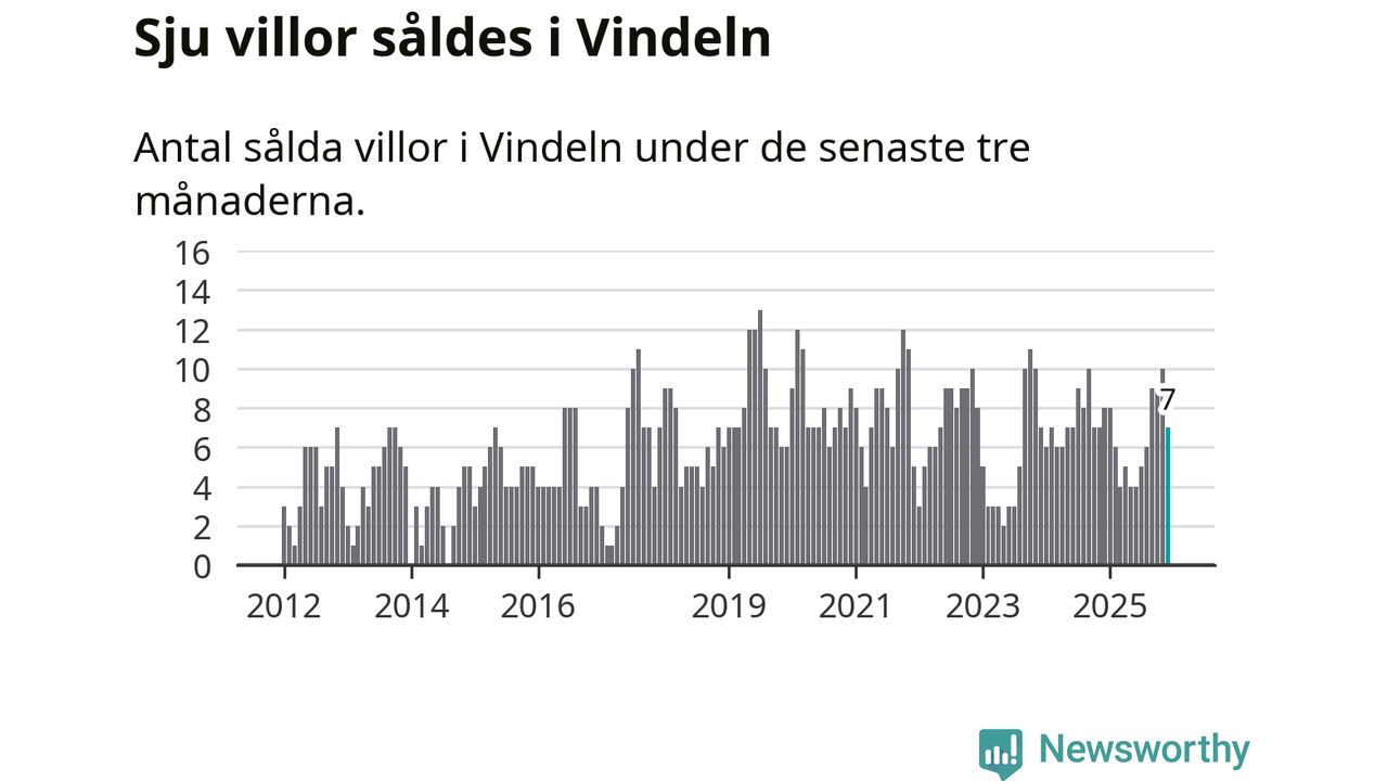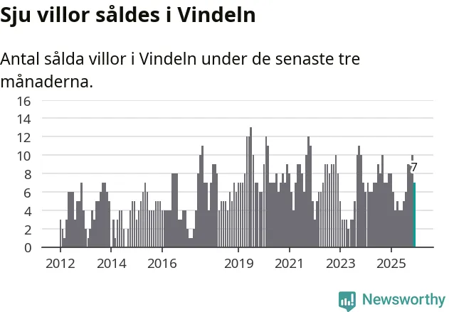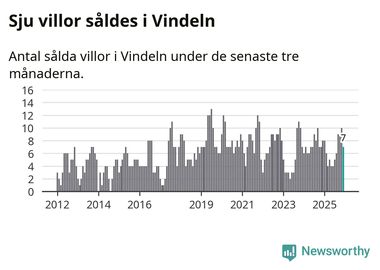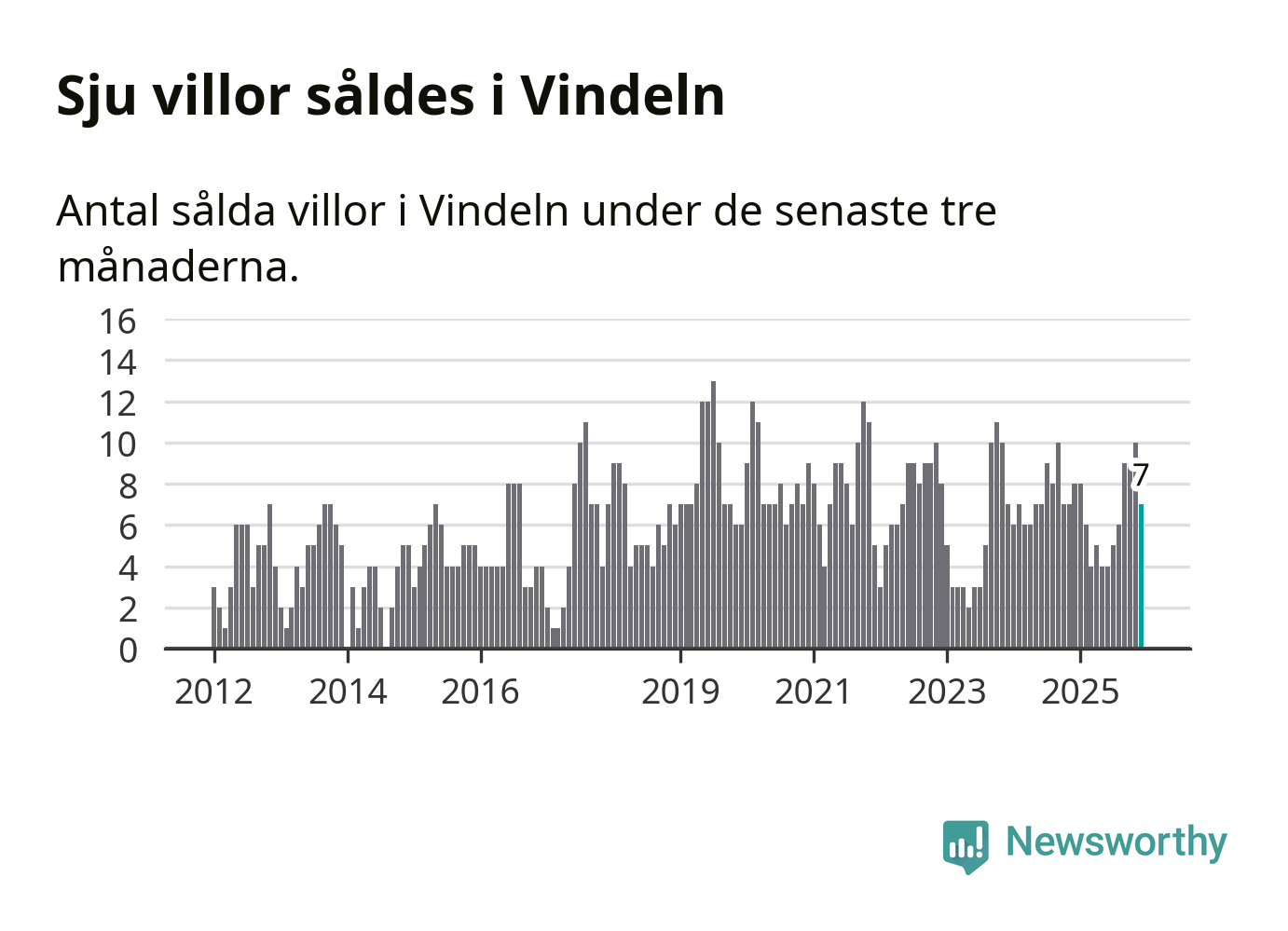 Mellan oktober och december gjordes sammanlagt sju affärer med villor i Vindelns kommun. Det kan jämföras med åtta vid motsvarande tid i fjol.