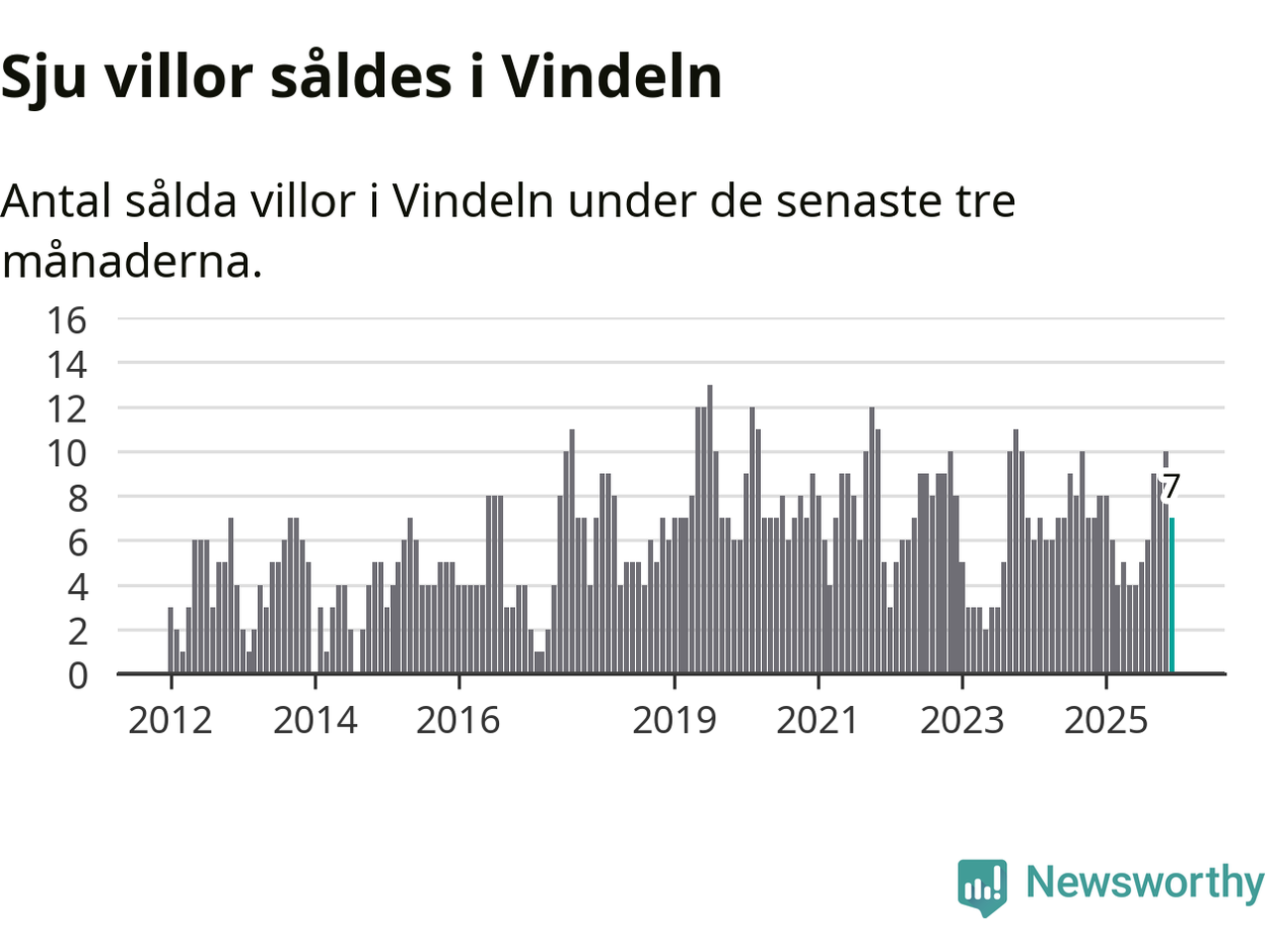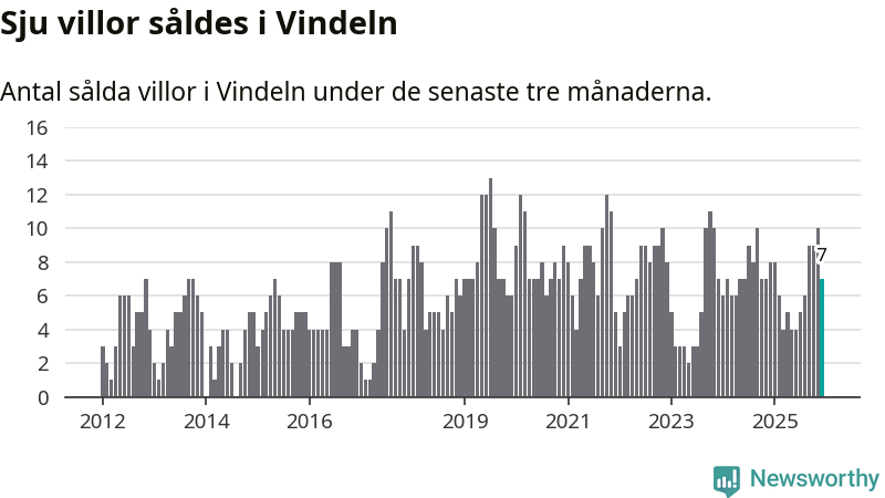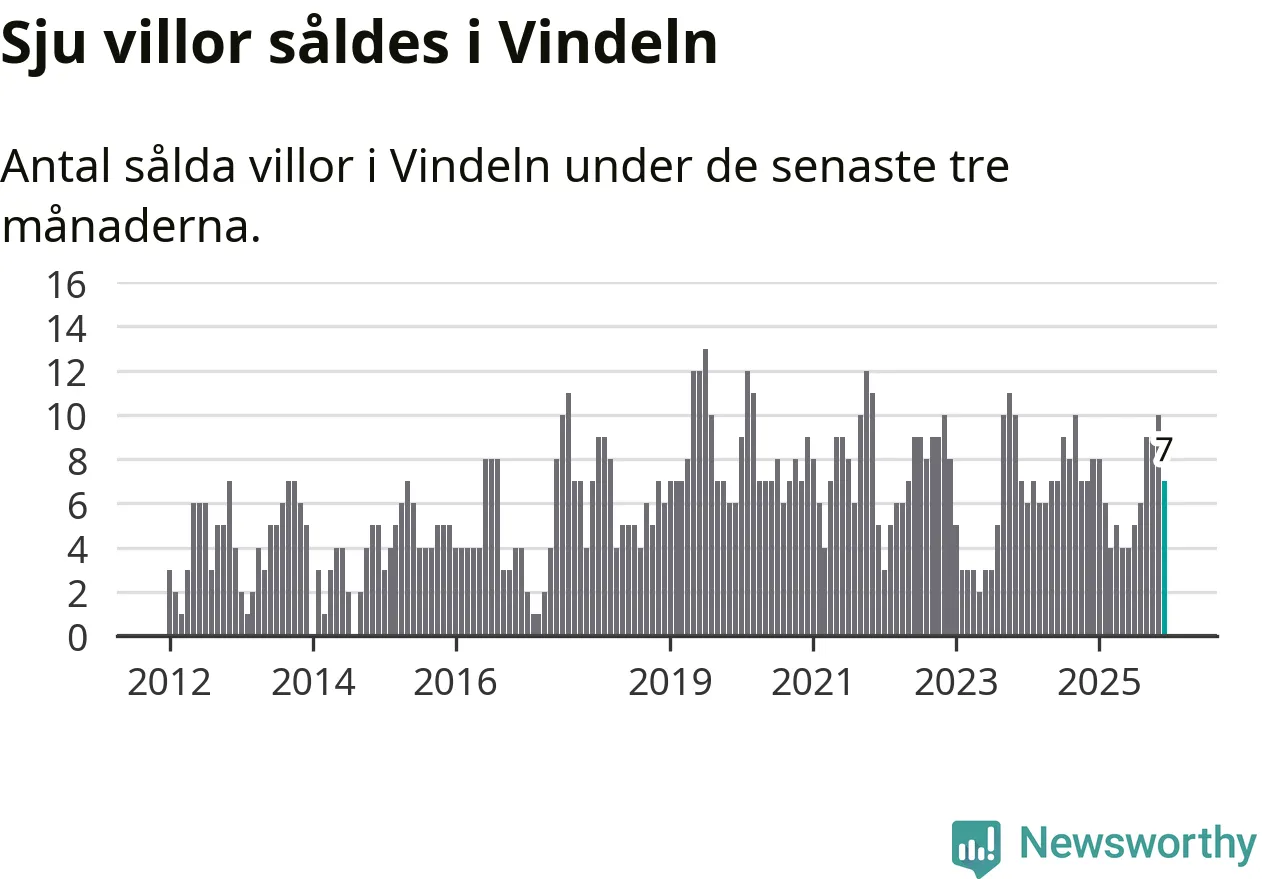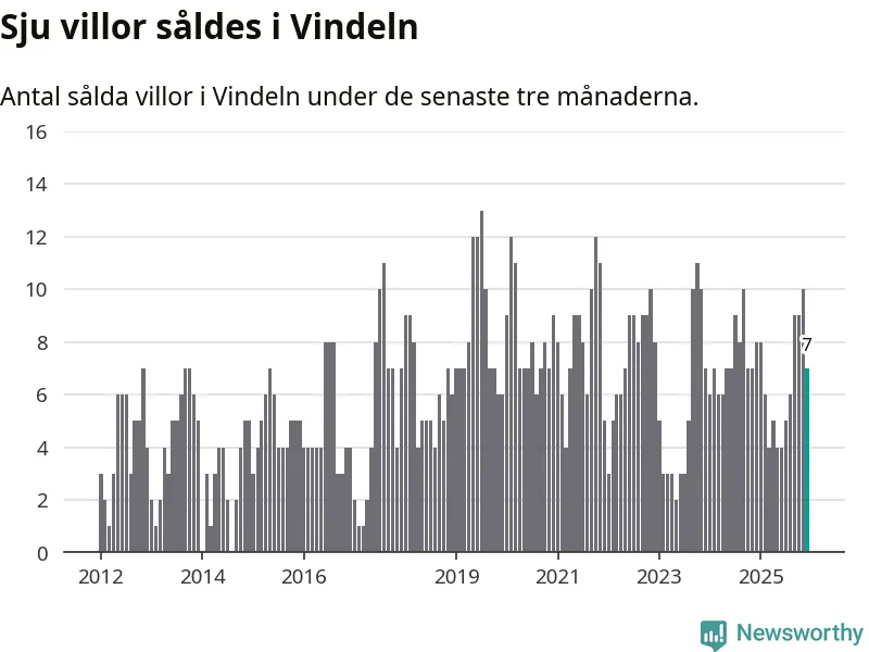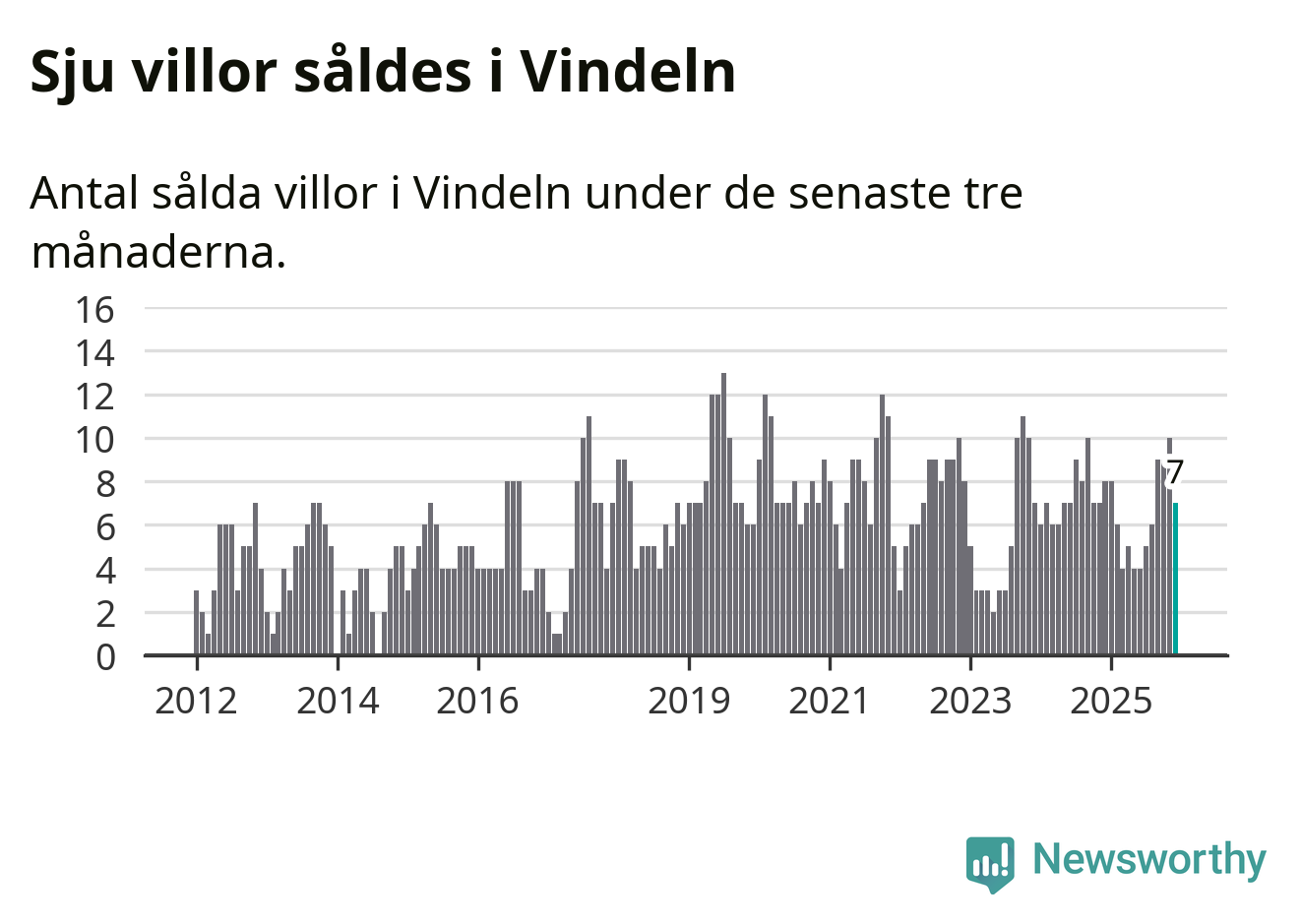 Mellan oktober och december gjordes sammanlagt sju affärer med villor i Vindelns kommun. Det kan jämföras med åtta vid motsvarande tid i fjol.