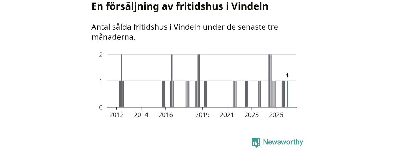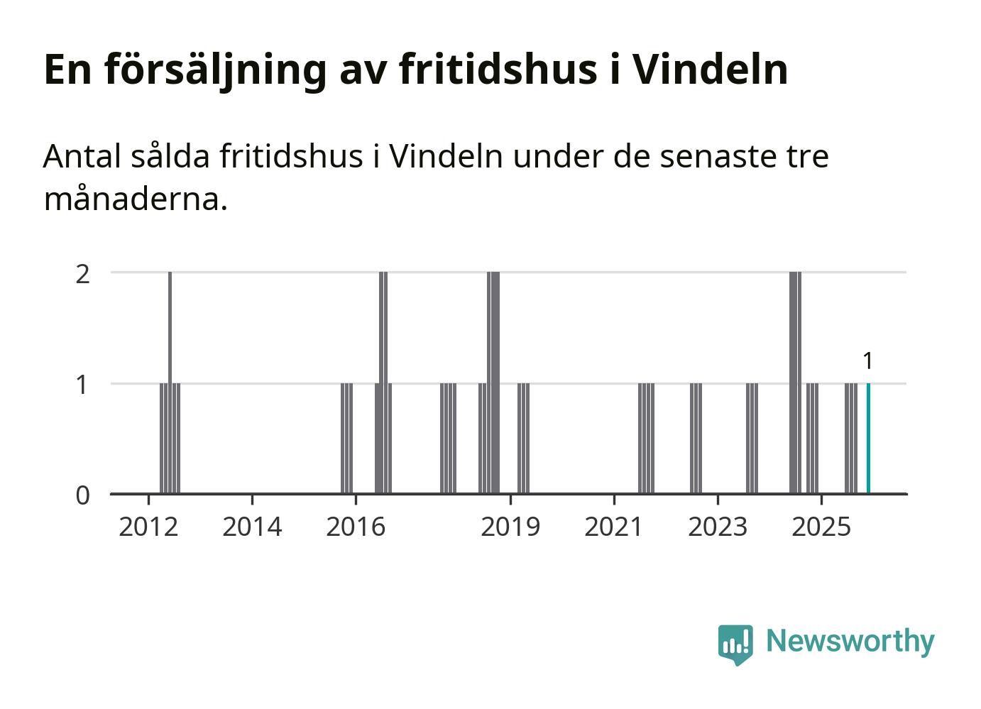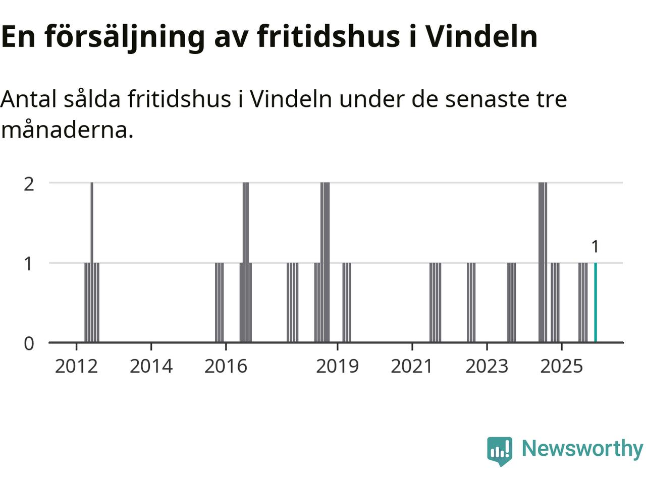 Mellan oktober och december gjordes sammanlagt en affär med fritidshus i Vindelns kommun. Det är lika många affärer som vid motsvarande tid i fjol.
