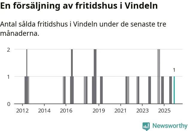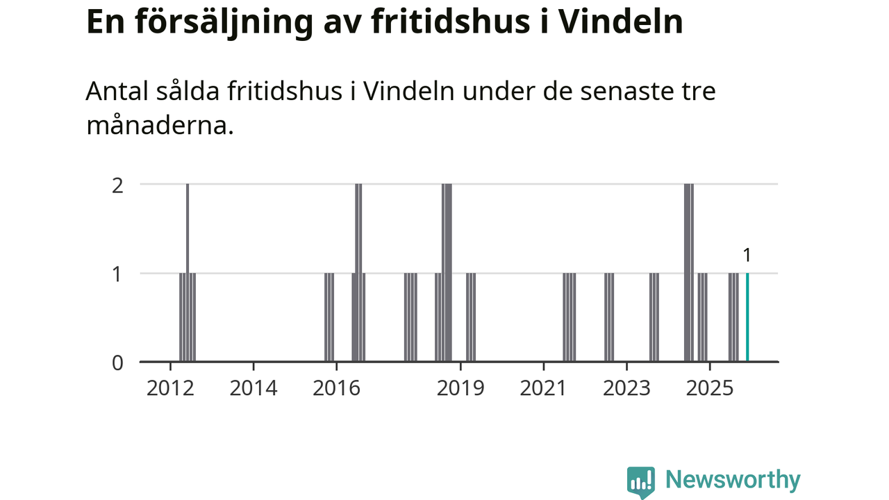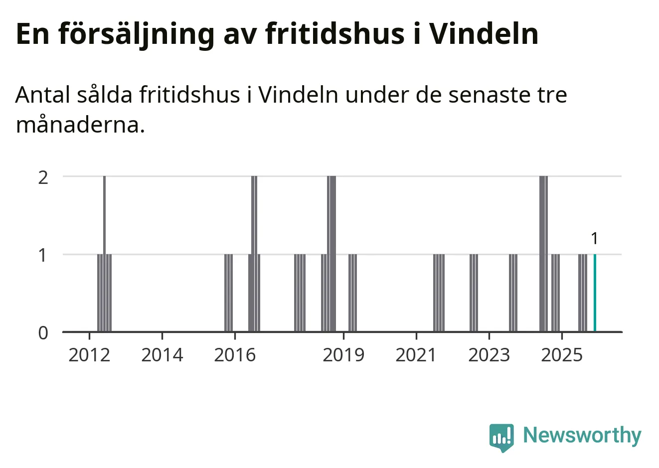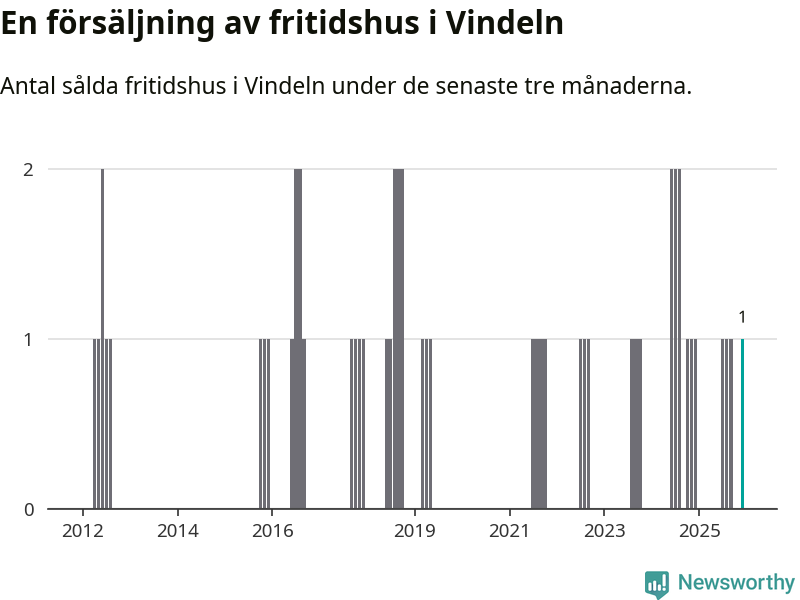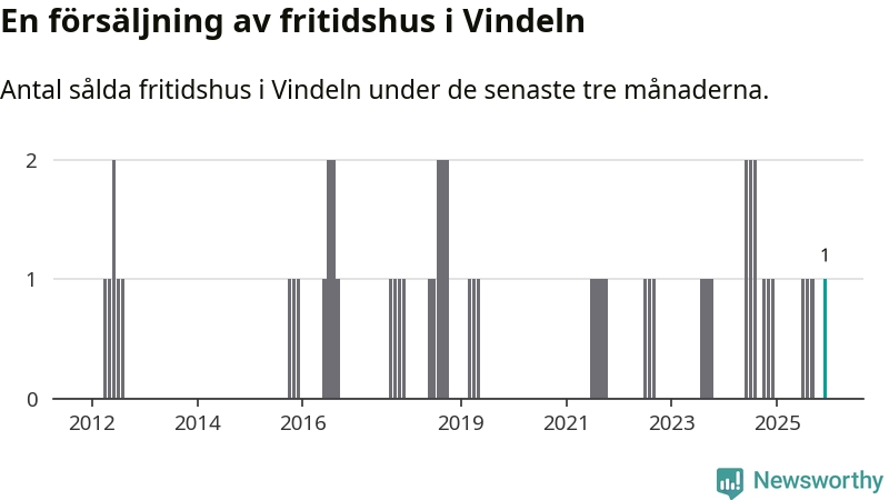 Mellan oktober och december gjordes sammanlagt en affär med fritidshus i Vindelns kommun. Det är lika många affärer som vid motsvarande tid i fjol.