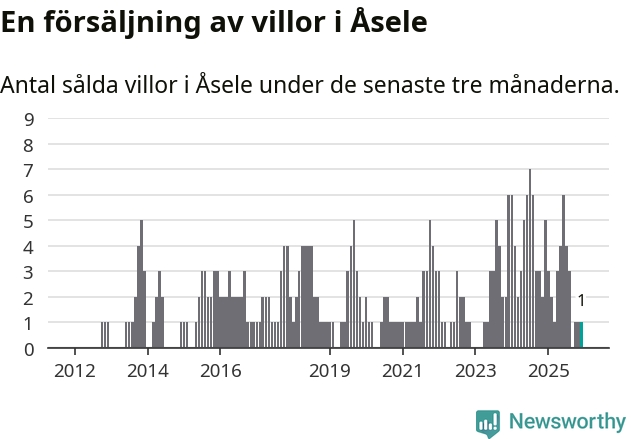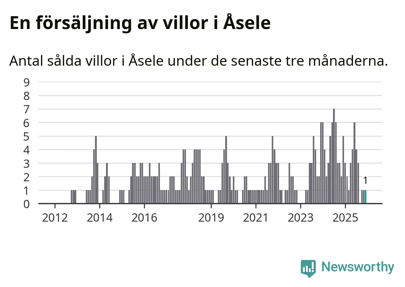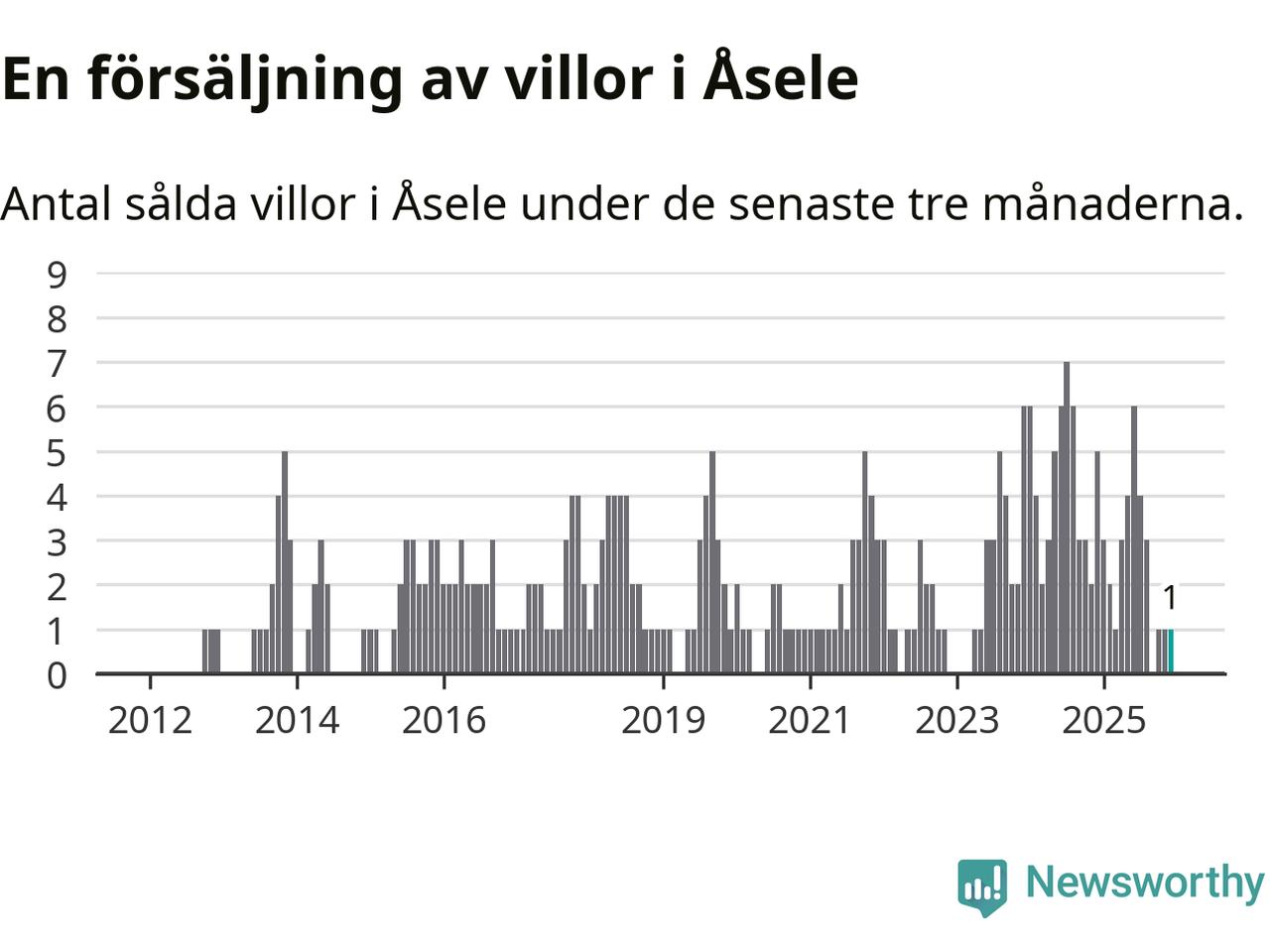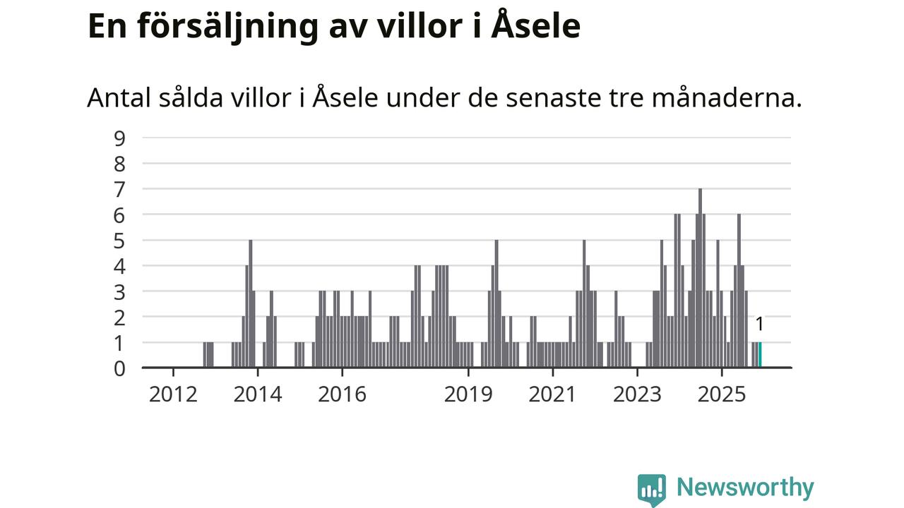 Mellan oktober och december gjordes sammanlagt en affär med villor i Åsele kommun. Det kan jämföras med fem vid motsvarande tid i fjol.