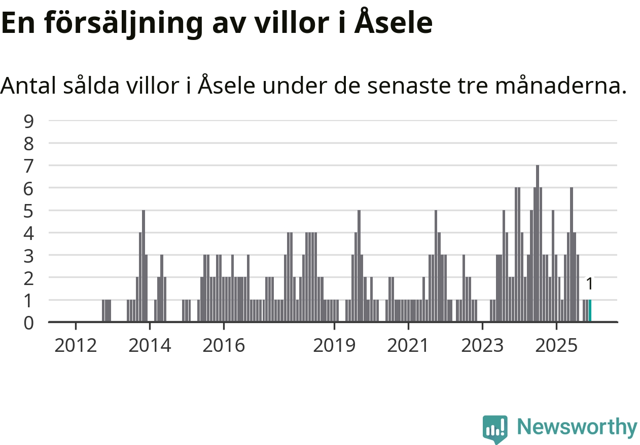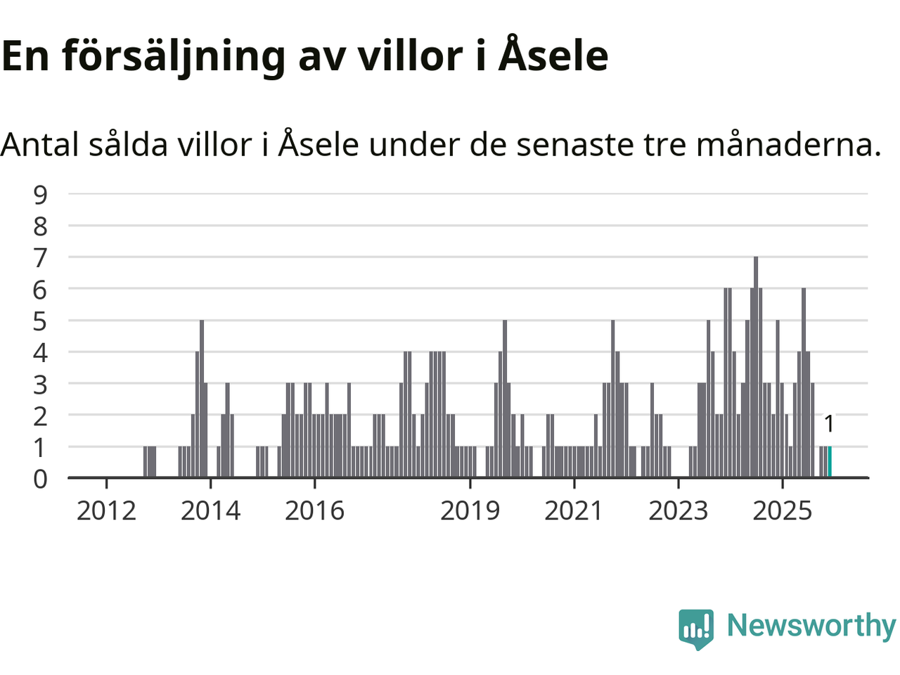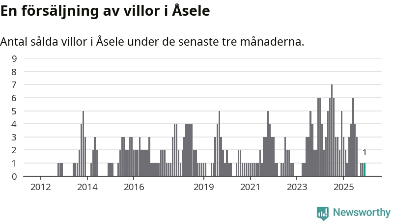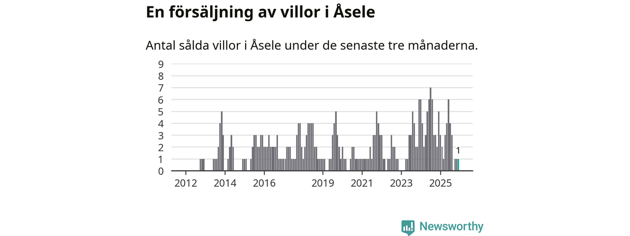 Mellan oktober och december gjordes sammanlagt en affär med villor i Åsele kommun. Det kan jämföras med fem vid motsvarande tid i fjol.
