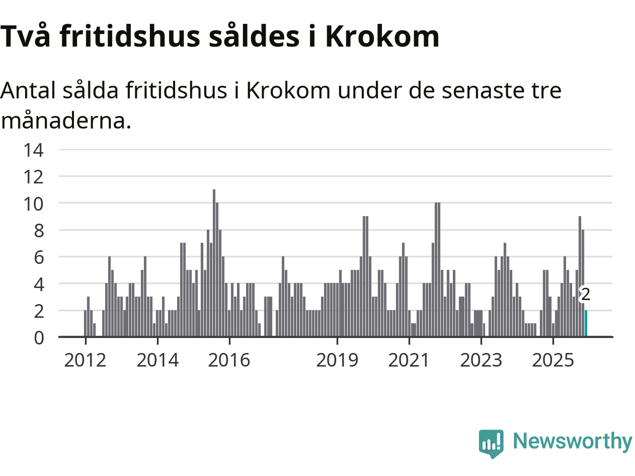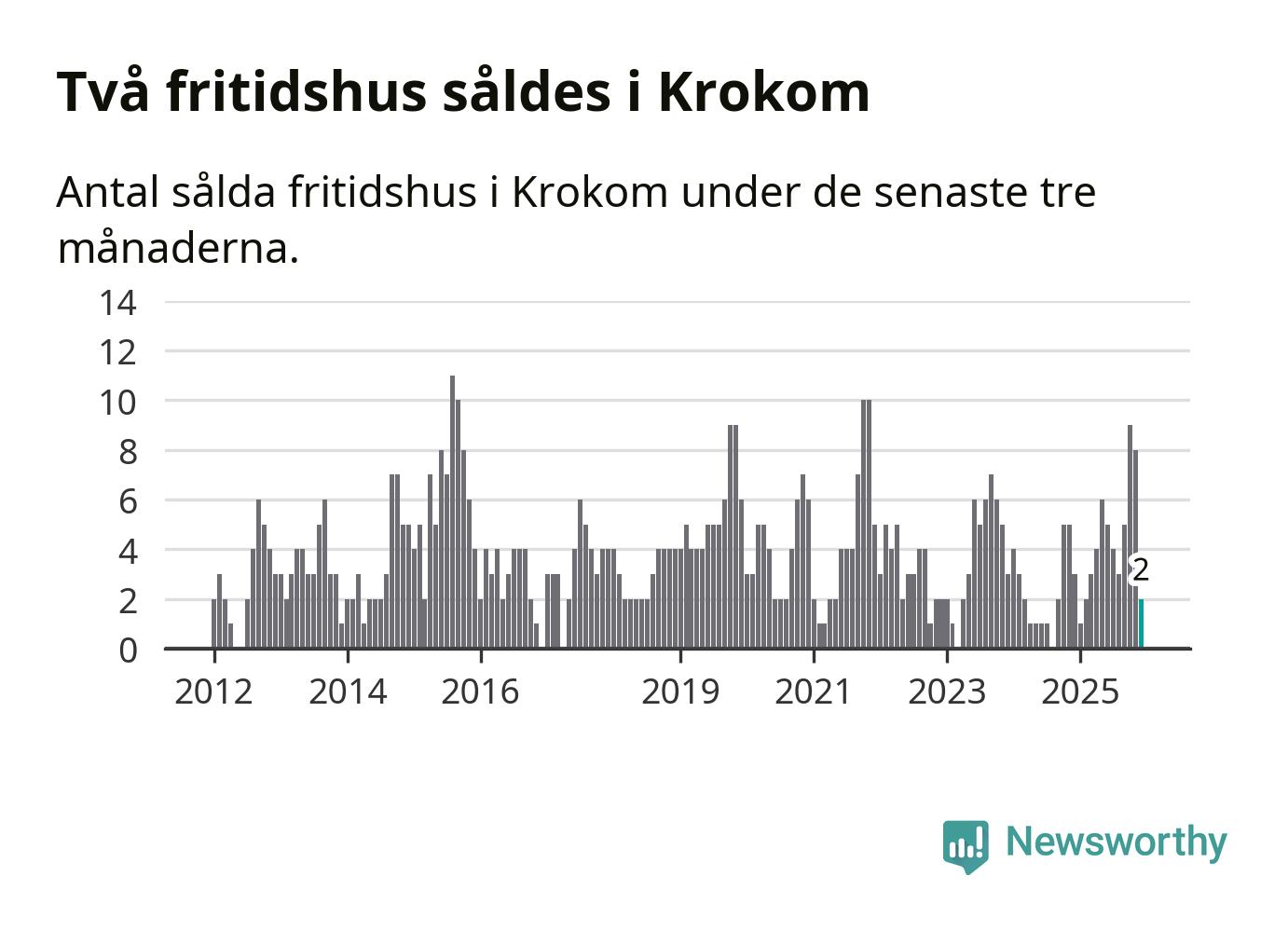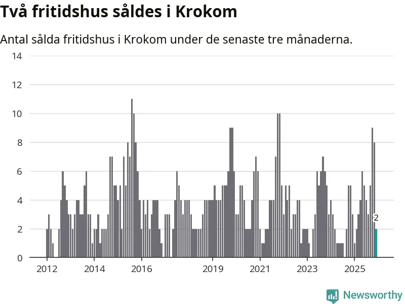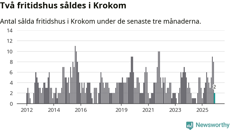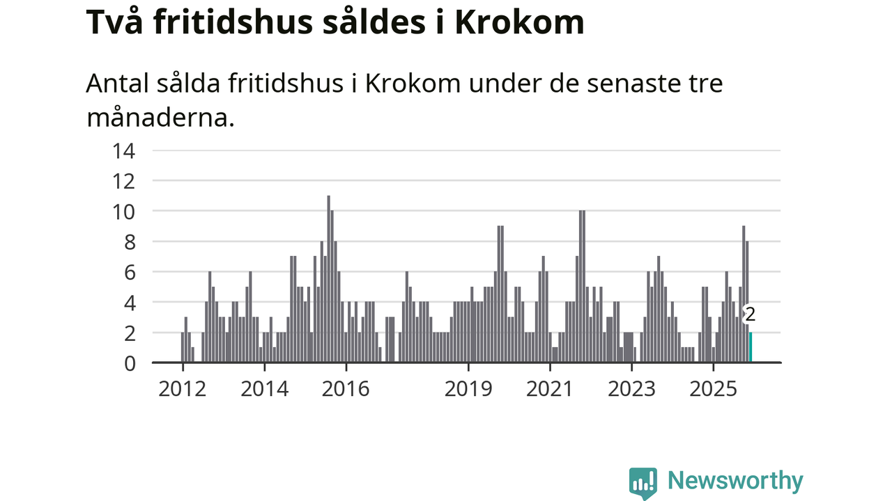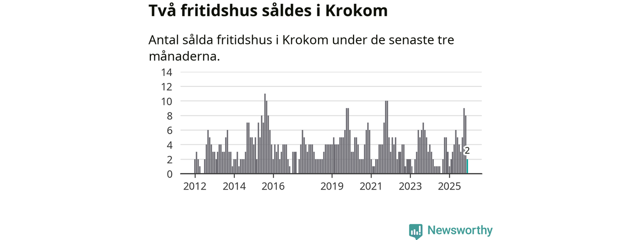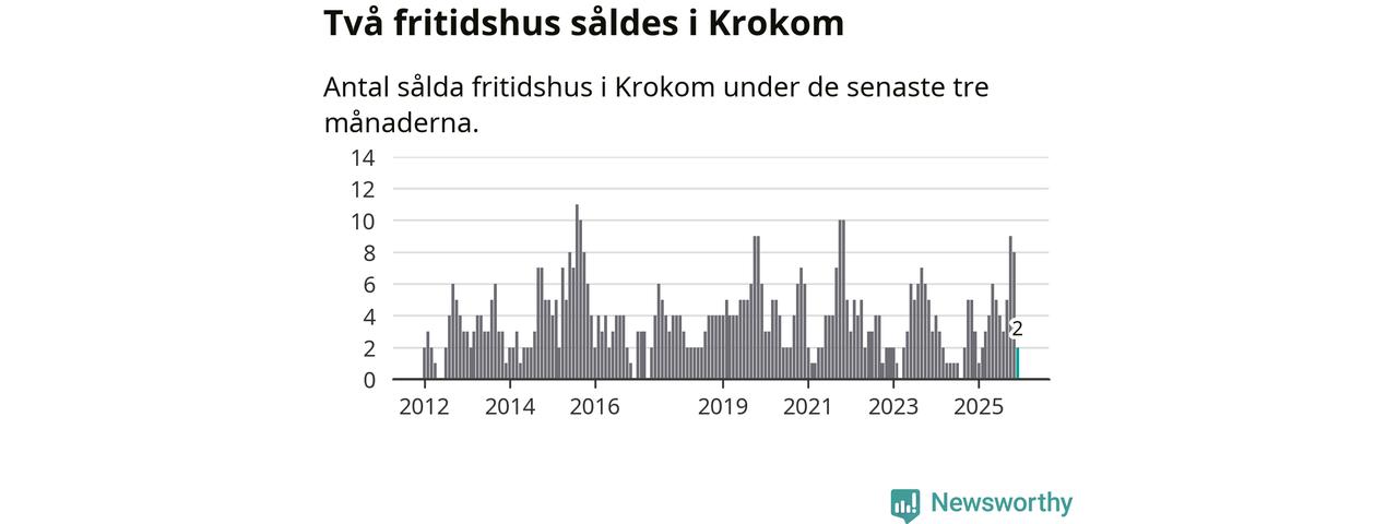 Mellan oktober och december gjordes sammanlagt två affärer med fritidshus i Krokoms kommun. Det kan jämföras med tre vid motsvarande tid i fjol.