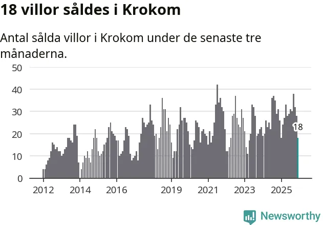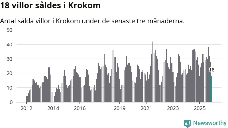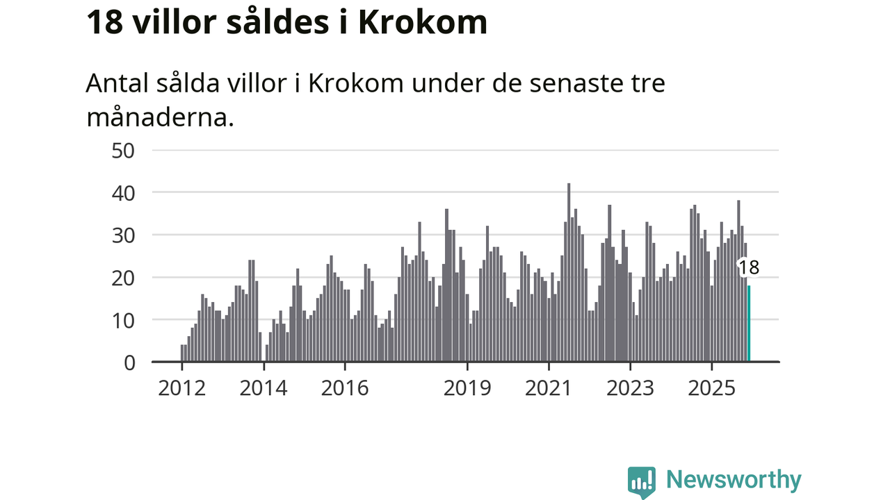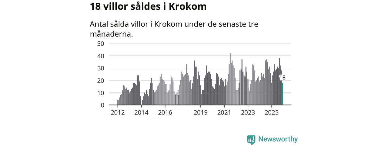 Mellan oktober och december gjordes sammanlagt 18 affärer med villor i Krokoms kommun. Det kan jämföras med 26 vid motsvarande tid i fjol.