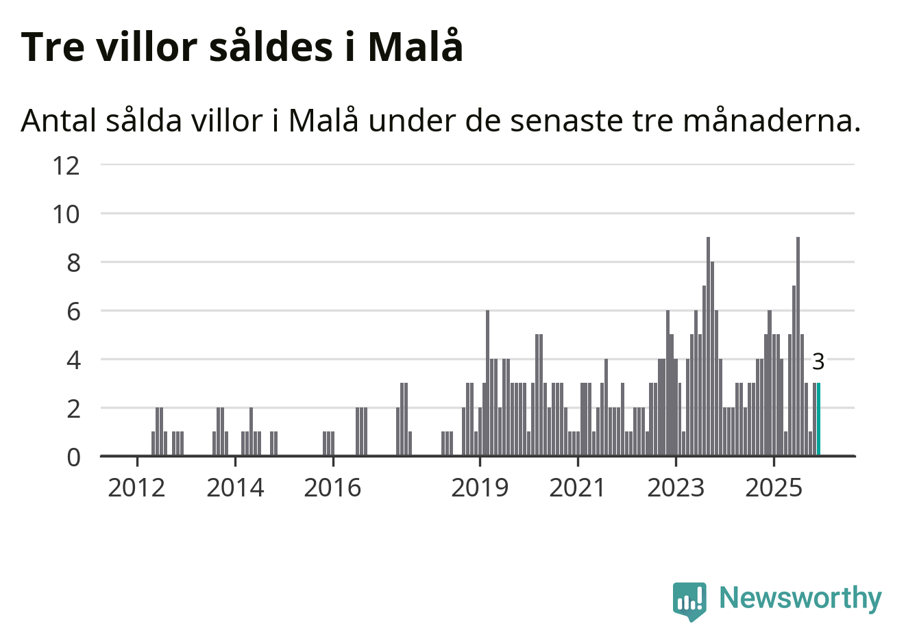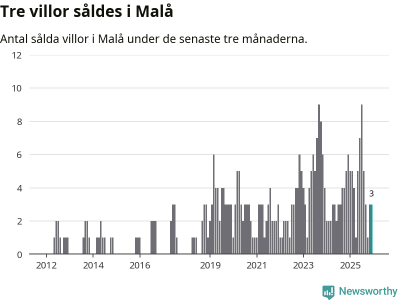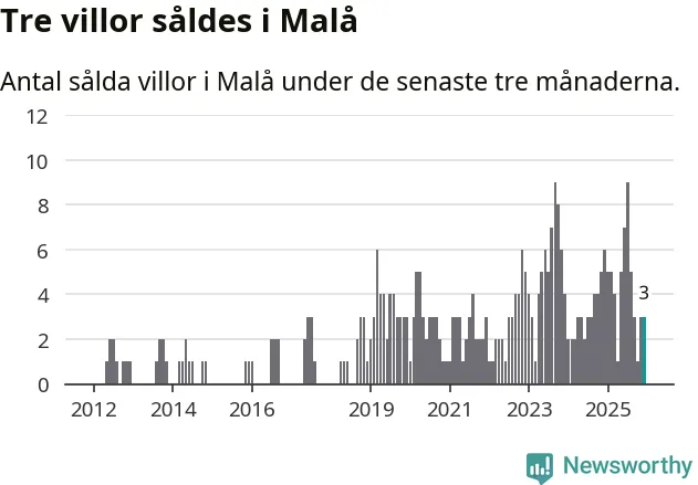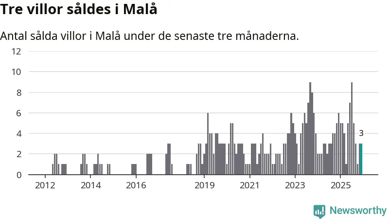 Mellan oktober och december gjordes sammanlagt tre affärer med villor i Malå kommun. Det kan jämföras med sex vid motsvarande tid i fjol.