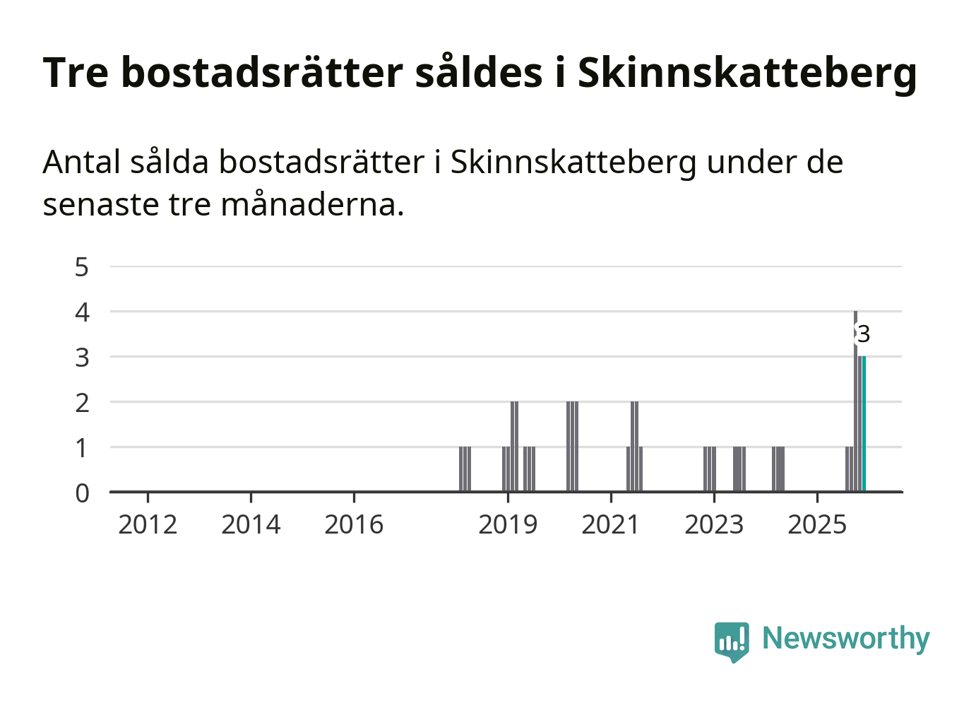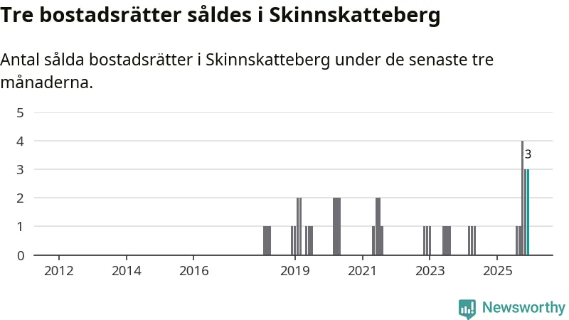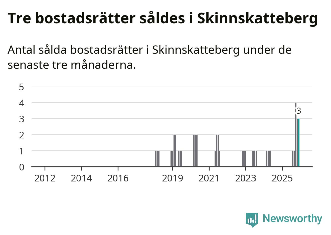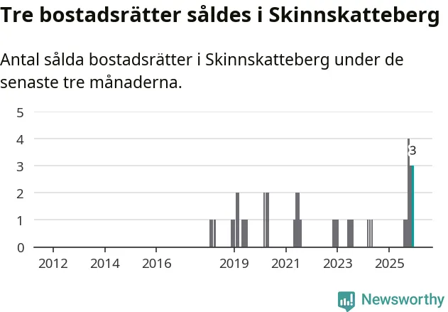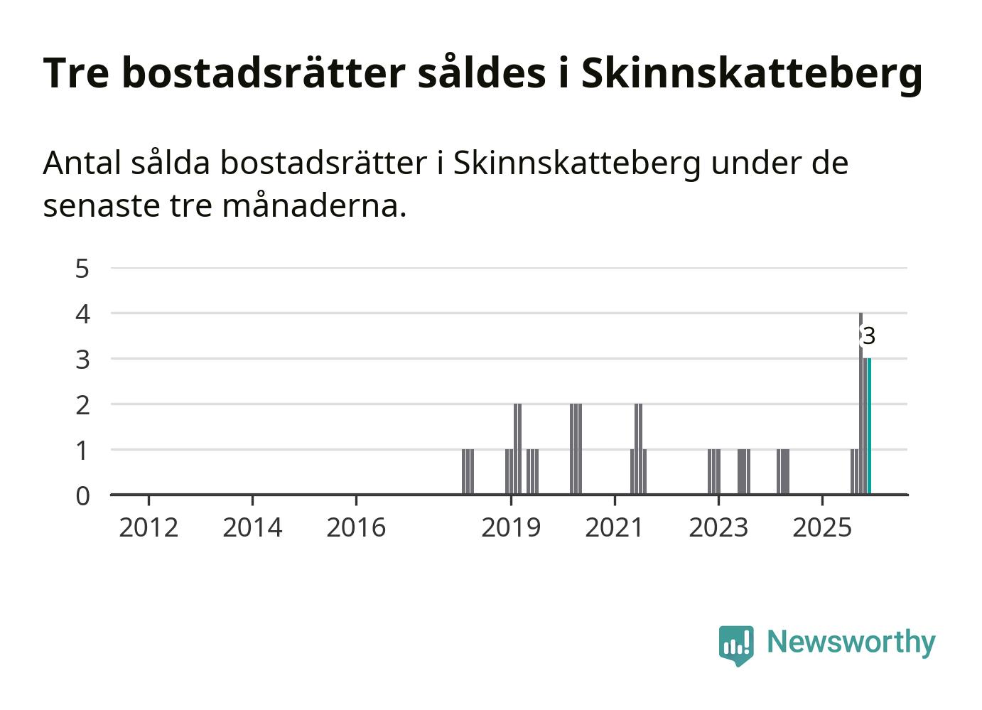 Mellan oktober och december gjordes sammanlagt tre affärer med bostadsrätter i Skinnskattebergs kommun.