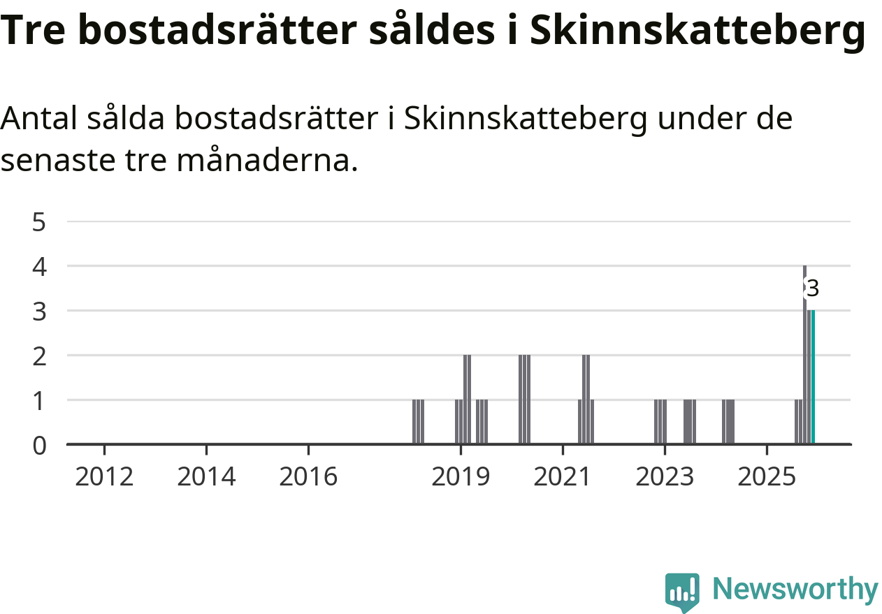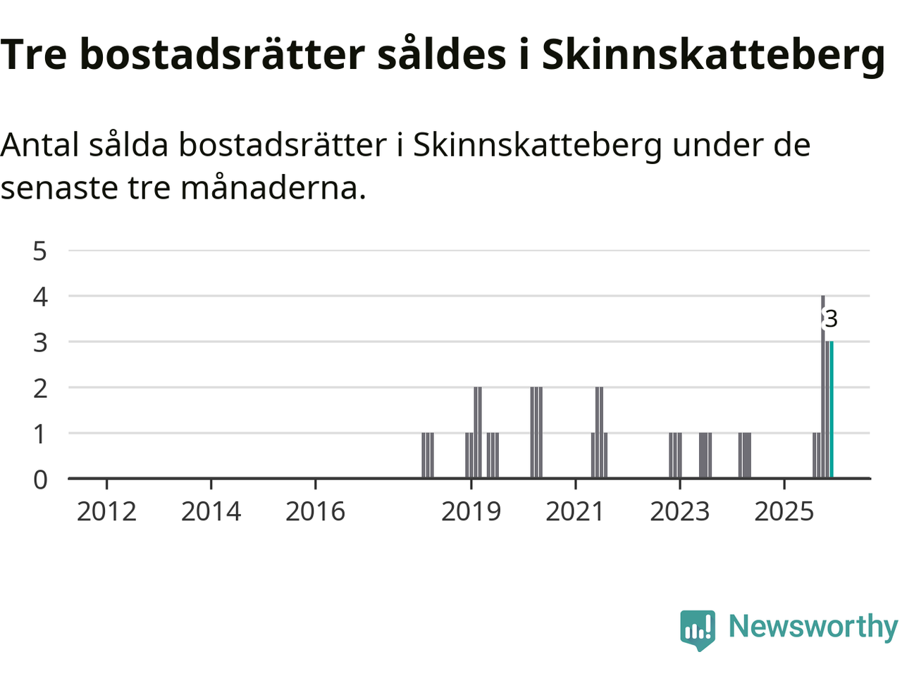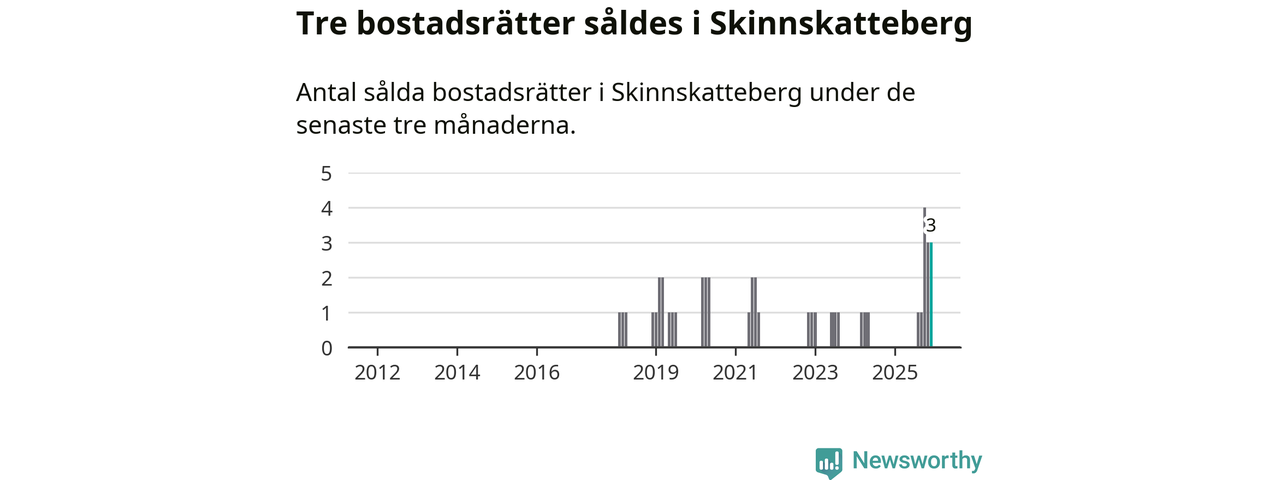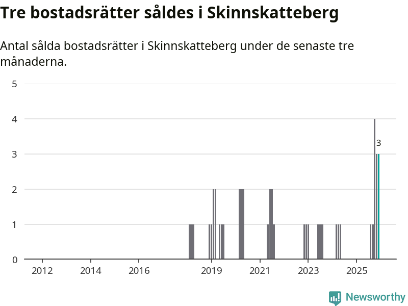 Mellan oktober och december gjordes sammanlagt tre affärer med bostadsrätter i Skinnskattebergs kommun.
