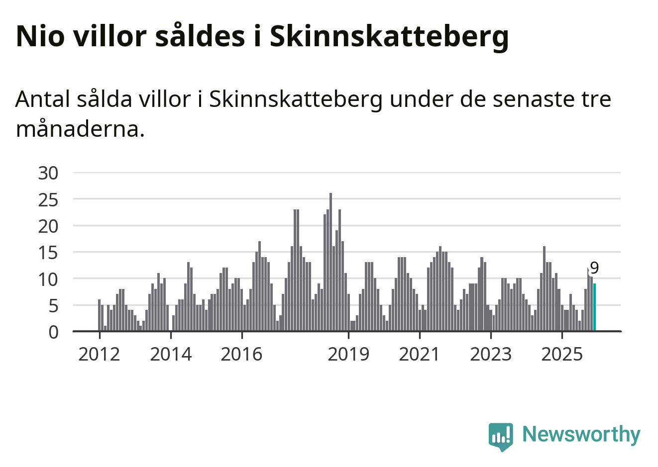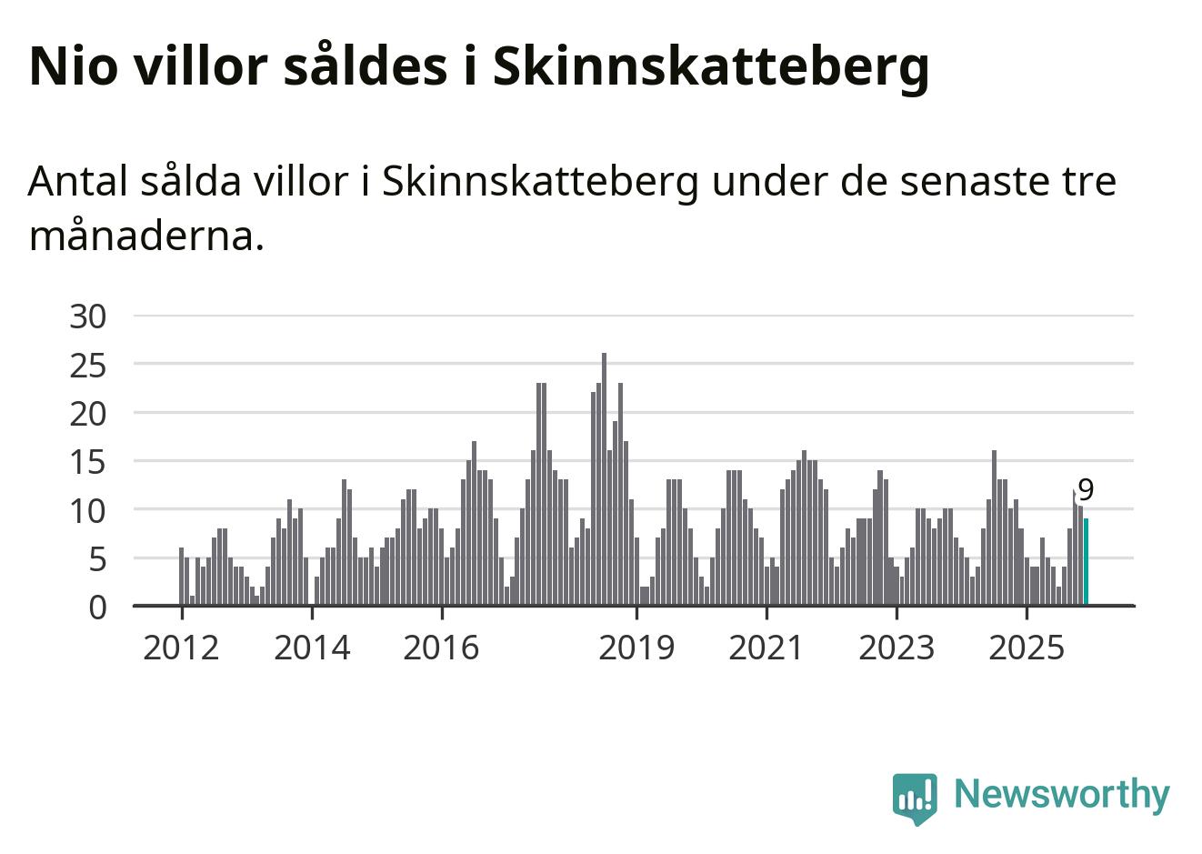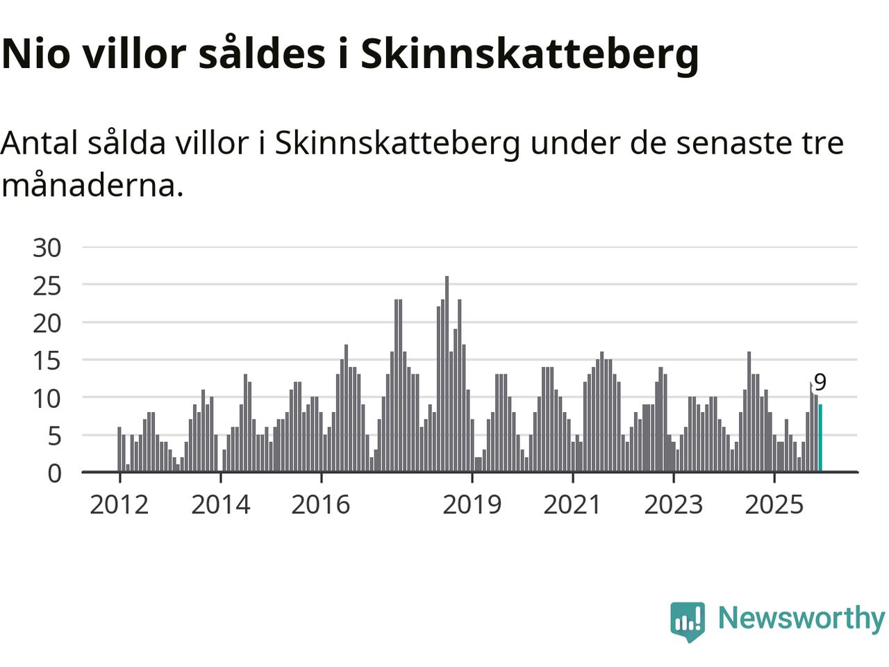 Mellan oktober och december gjordes sammanlagt nio affärer med villor i Skinnskattebergs kommun. Det kan jämföras med åtta vid motsvarande tid i fjol.