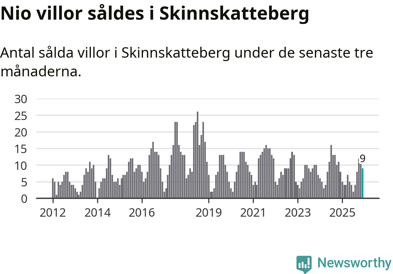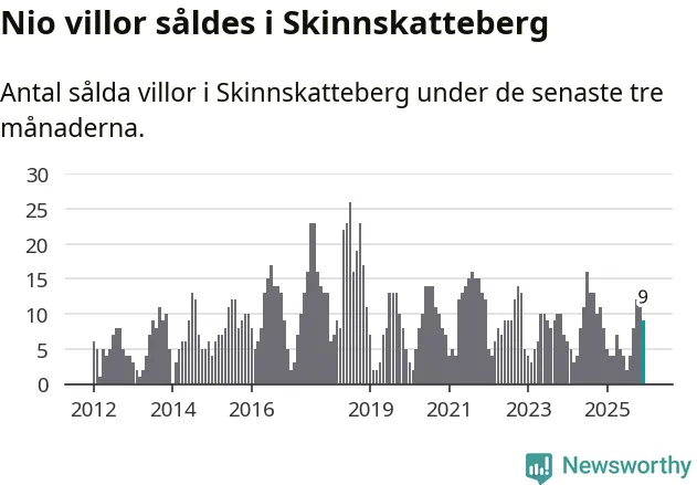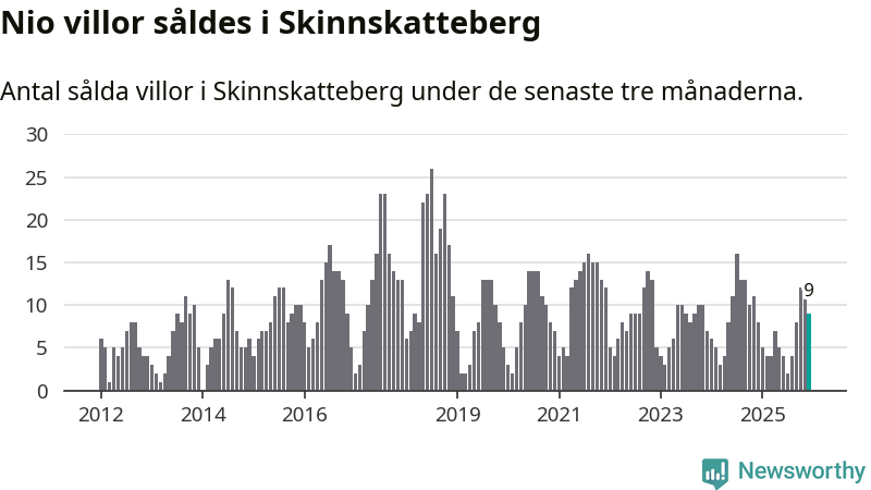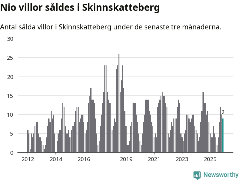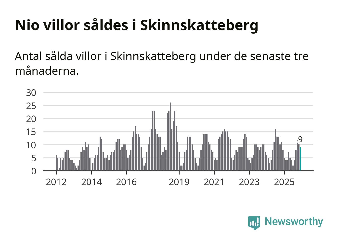 Mellan oktober och december gjordes sammanlagt nio affärer med villor i Skinnskattebergs kommun. Det kan jämföras med åtta vid motsvarande tid i fjol.