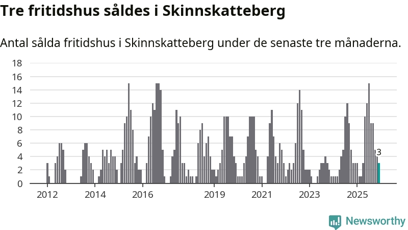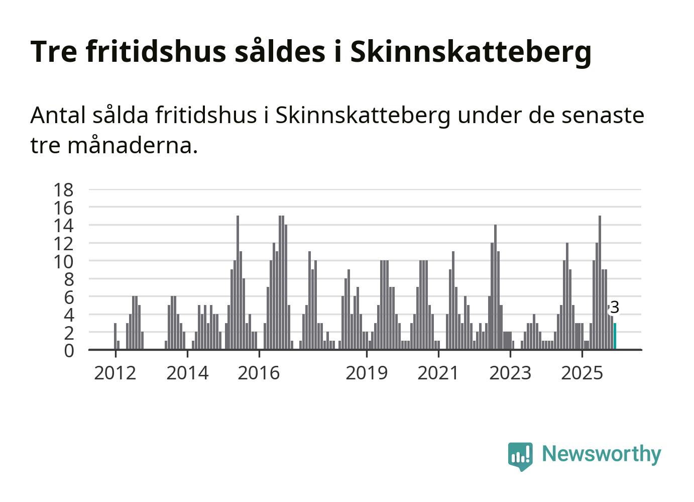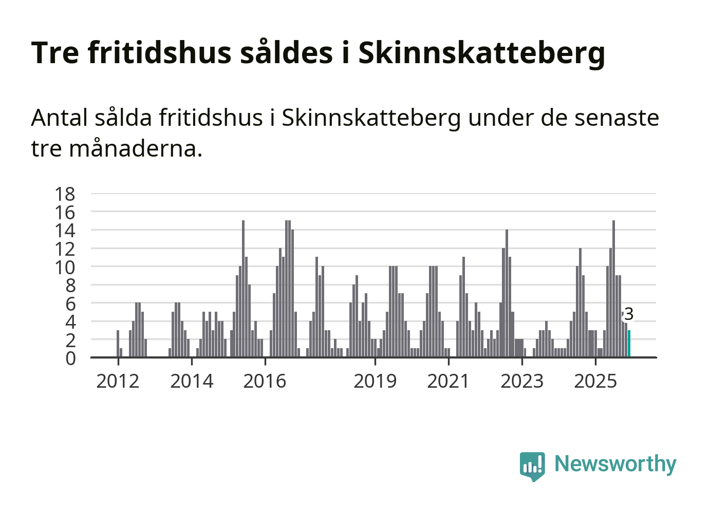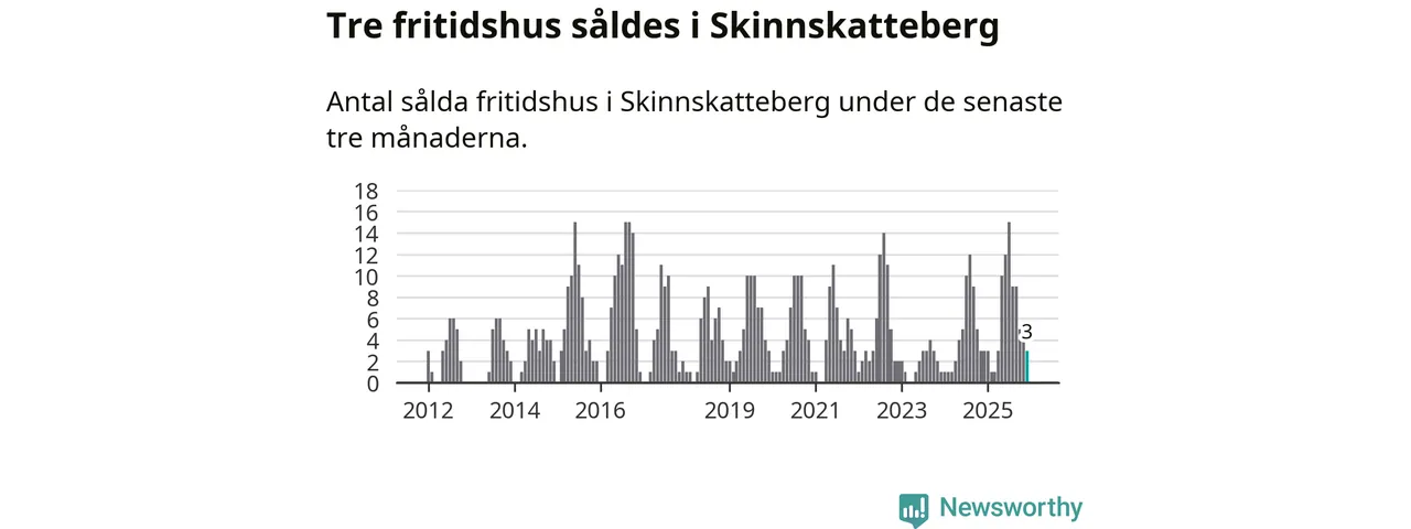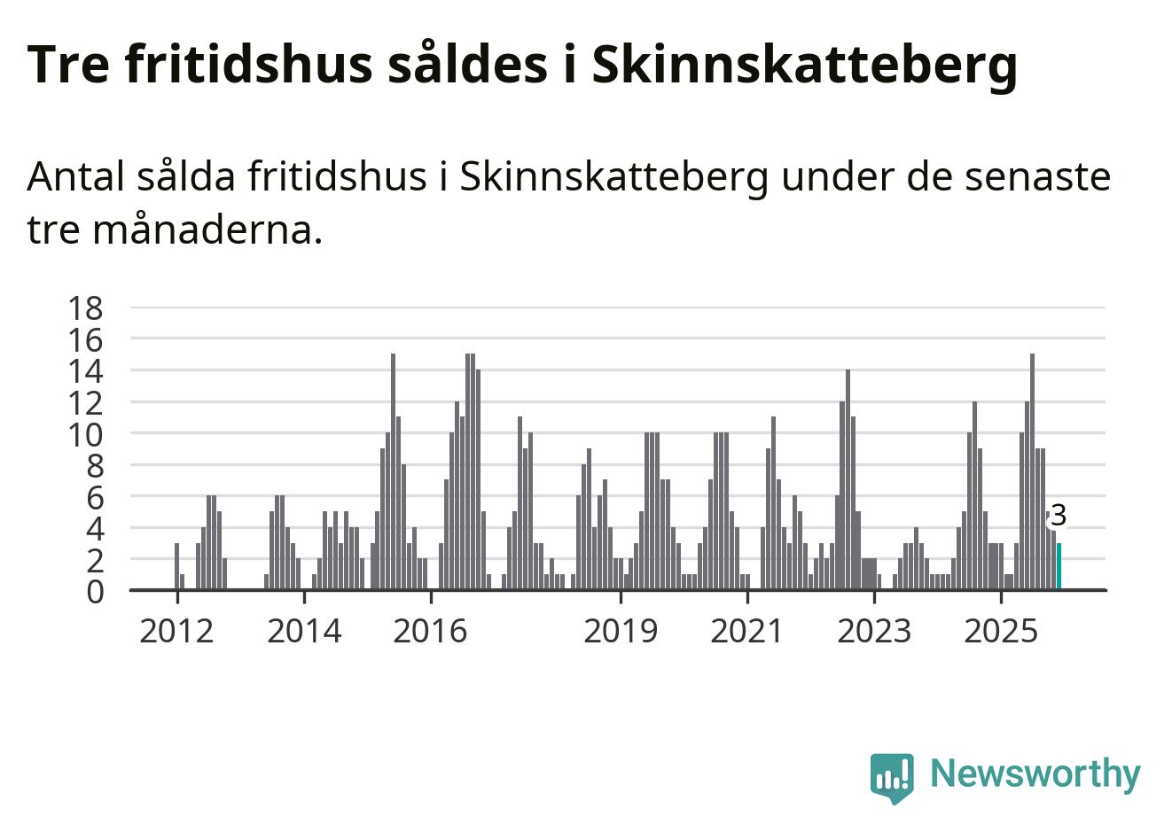 Mellan oktober och december gjordes sammanlagt tre affärer med fritidshus i Skinnskattebergs kommun. Det är lika många affärer som vid motsvarande tid i fjol.