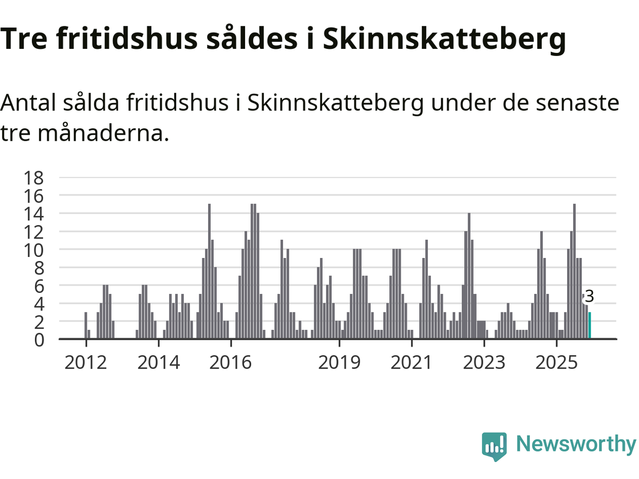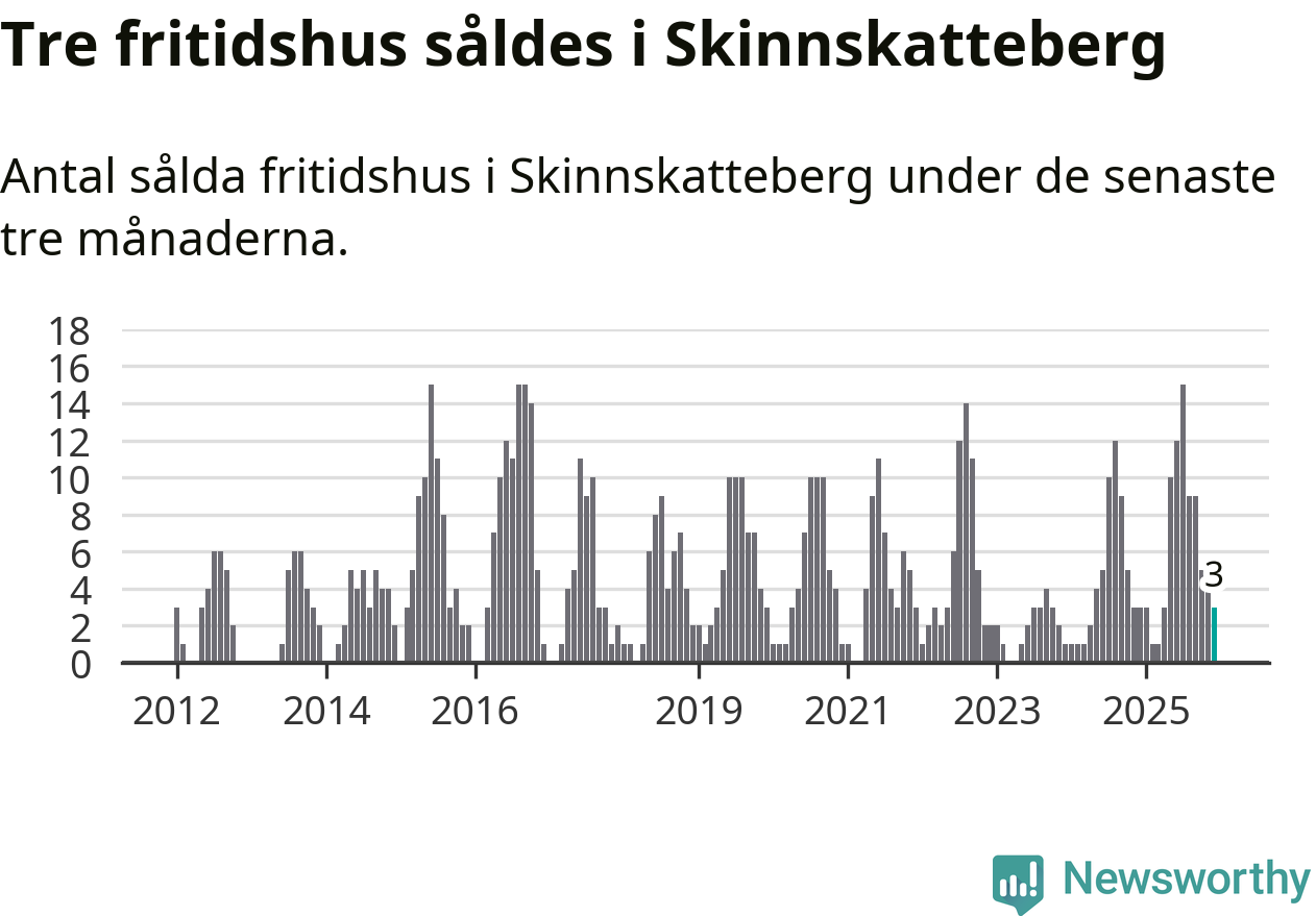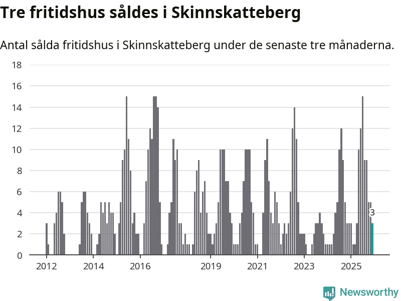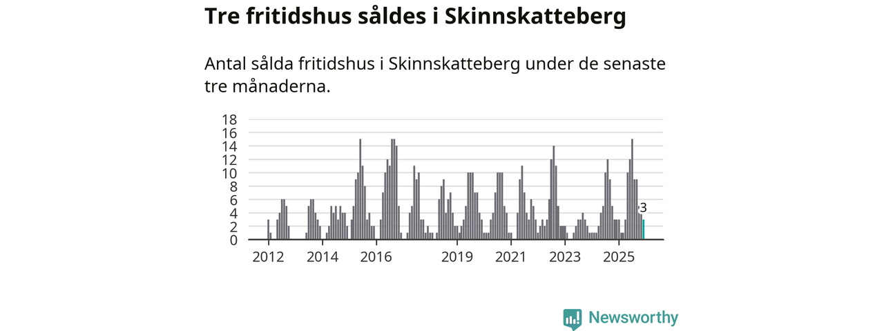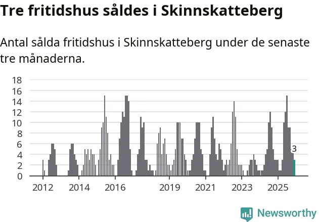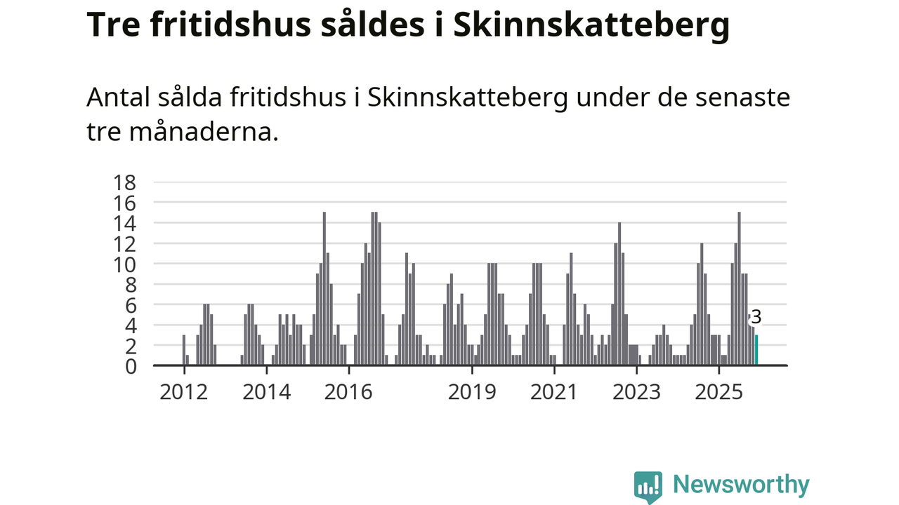 Mellan oktober och december gjordes sammanlagt tre affärer med fritidshus i Skinnskattebergs kommun. Det är lika många affärer som vid motsvarande tid i fjol.