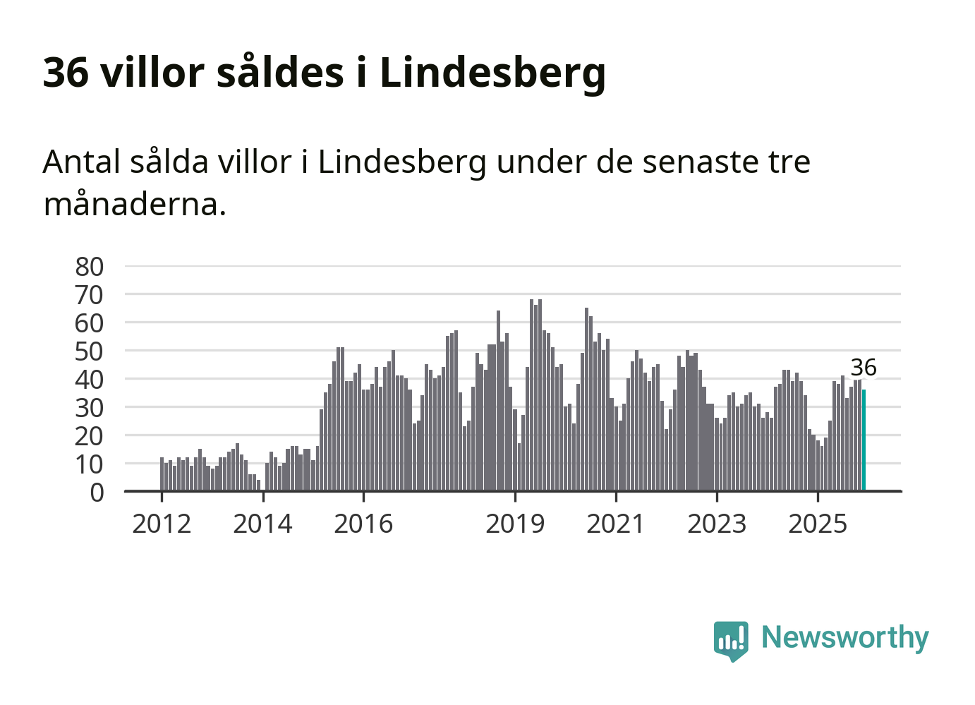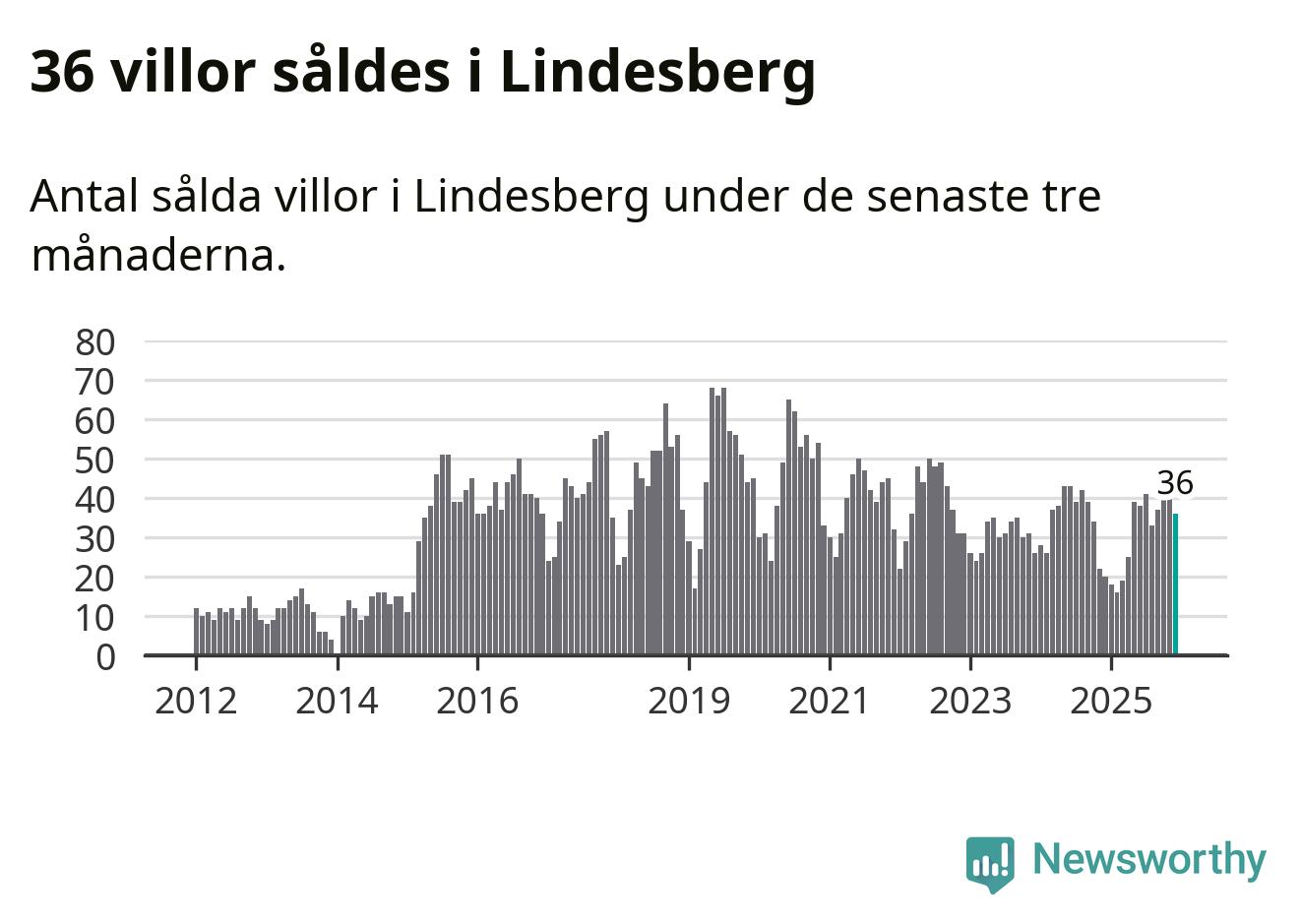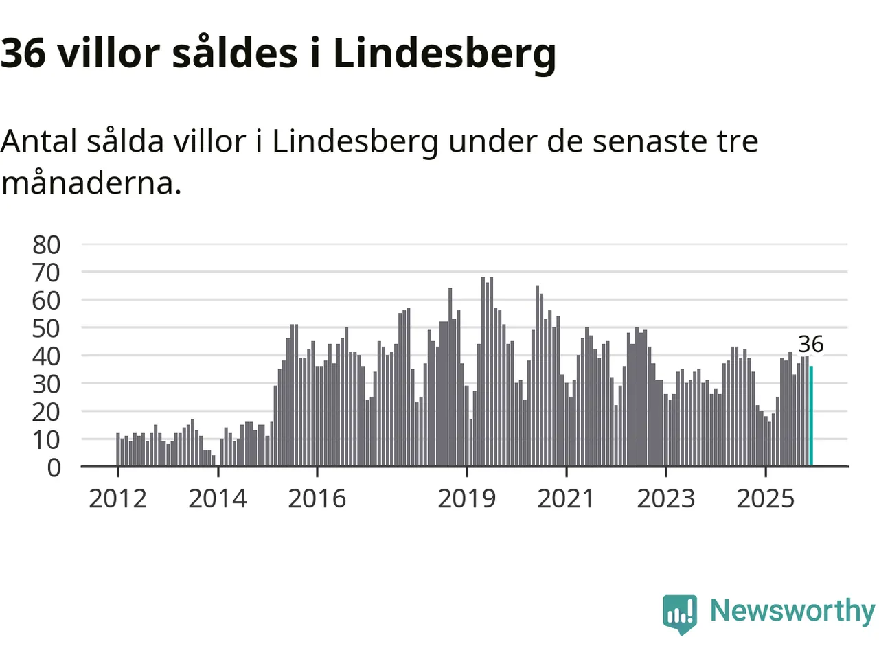 Sammanlagt såldes 36 villor i Lindesbergs kommun mellan oktober och december till ett genomsnittligt pris på 1,4 miljoner kronor. I fjol gjordes 20 affärer vid den här tiden på året.