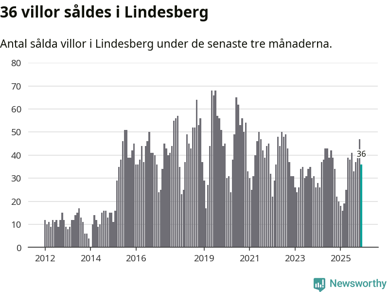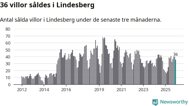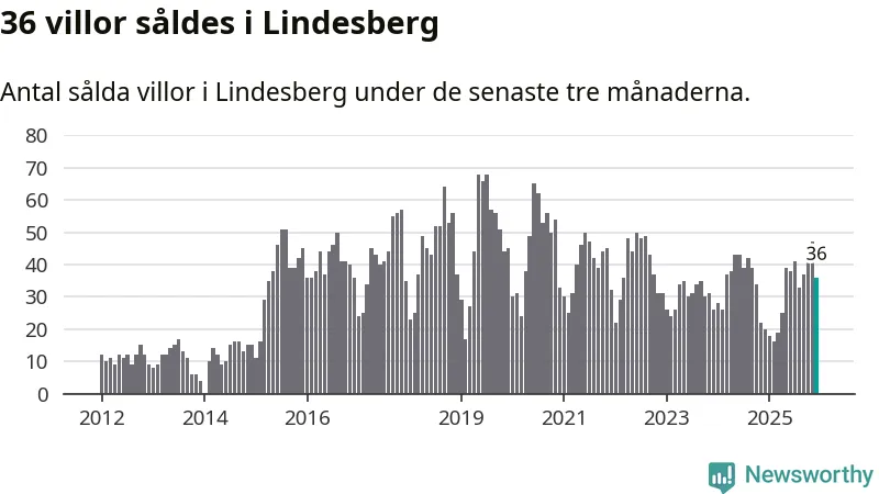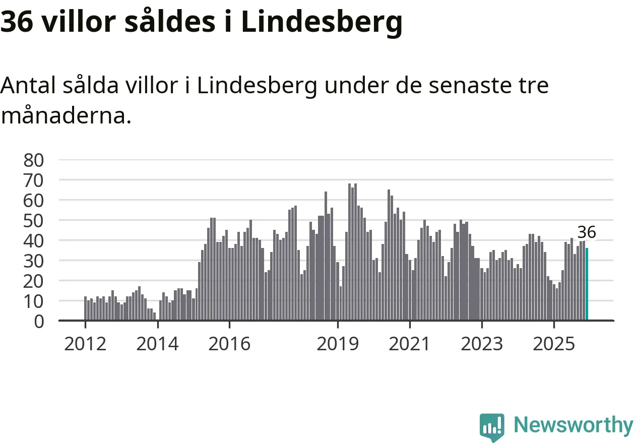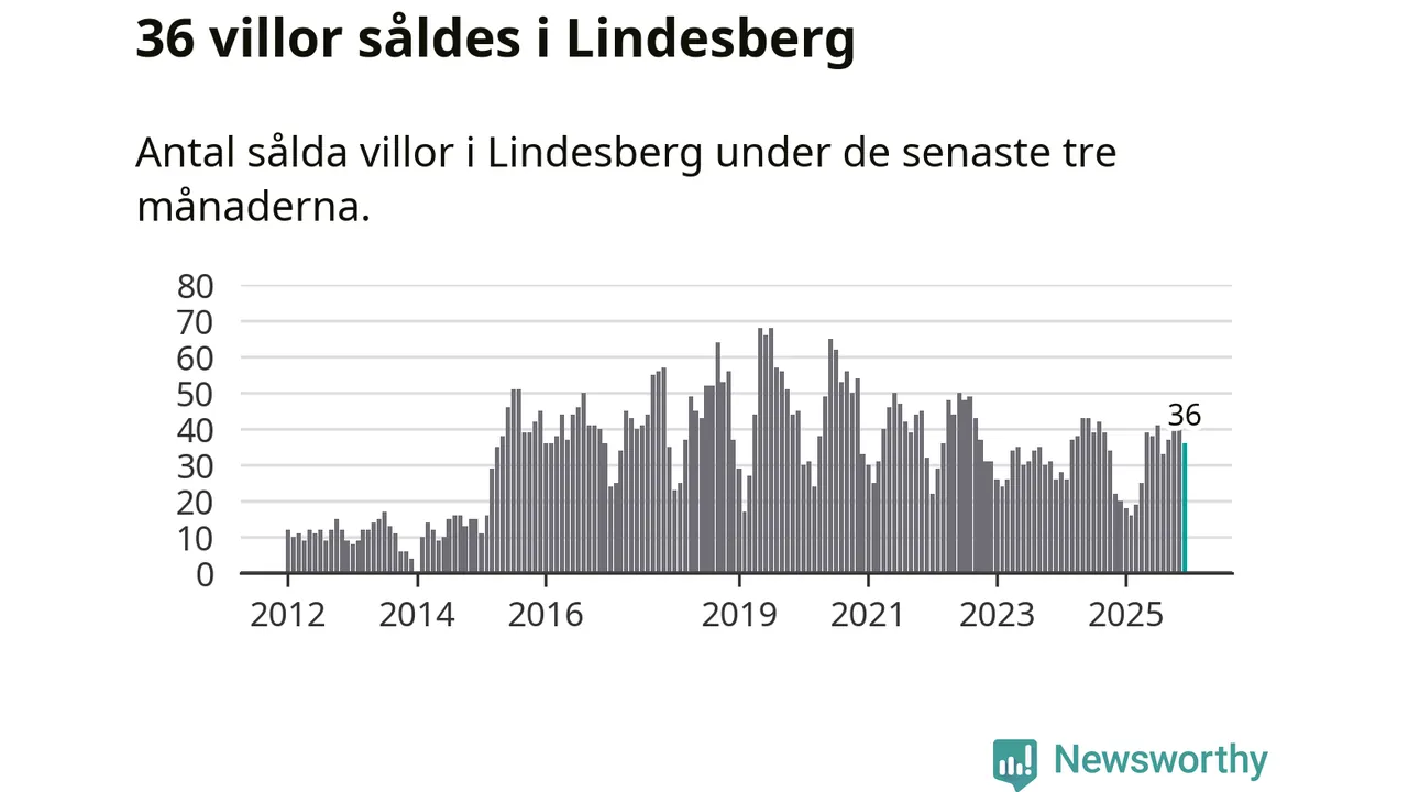 Sammanlagt såldes 36 villor i Lindesbergs kommun mellan oktober och december till ett genomsnittligt pris på 1,4 miljoner kronor. I fjol gjordes 20 affärer vid den här tiden på året.