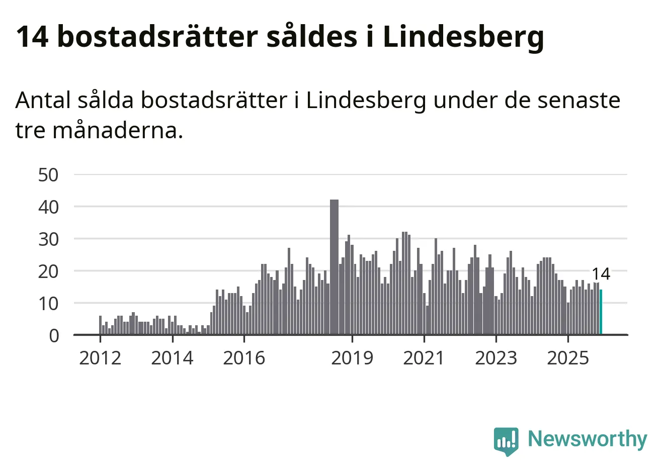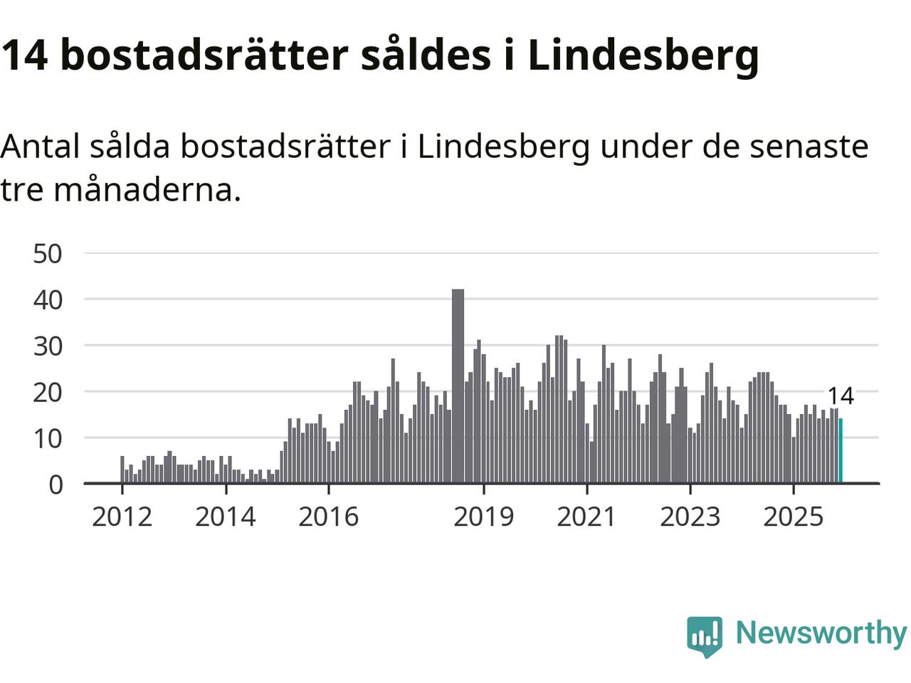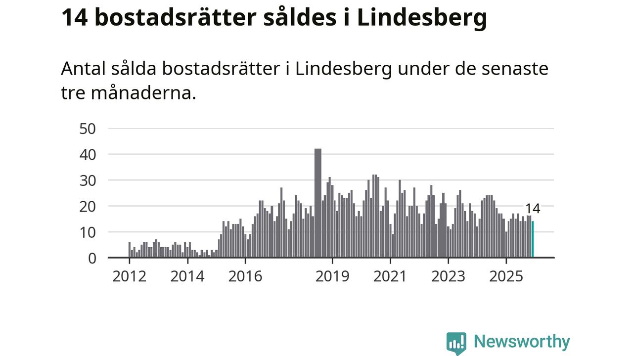 Mellan oktober och december gjordes sammanlagt 14 affärer med bostadsrätter i Lindesbergs kommun. Det kan jämföras med 15 vid motsvarande tid i fjol.