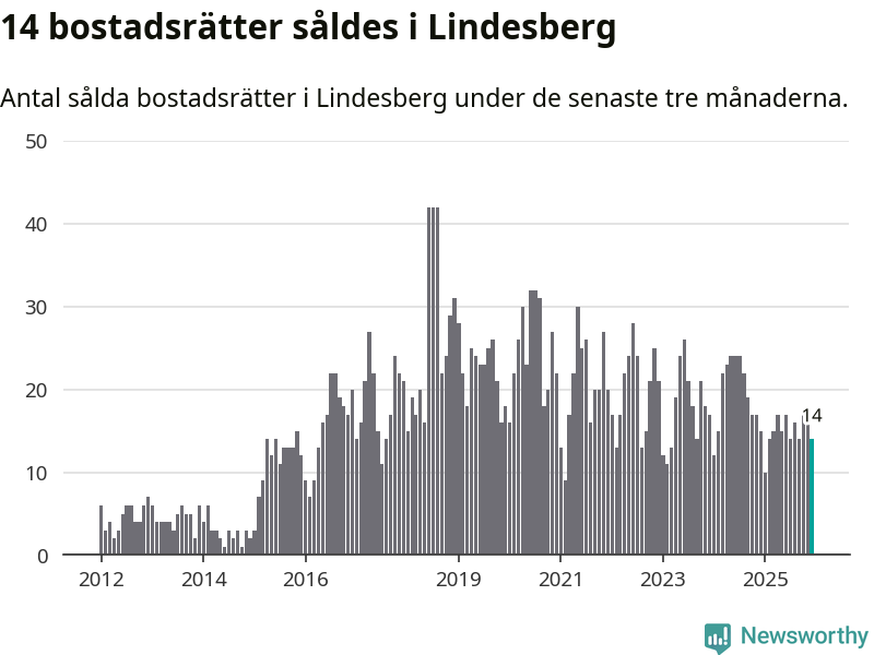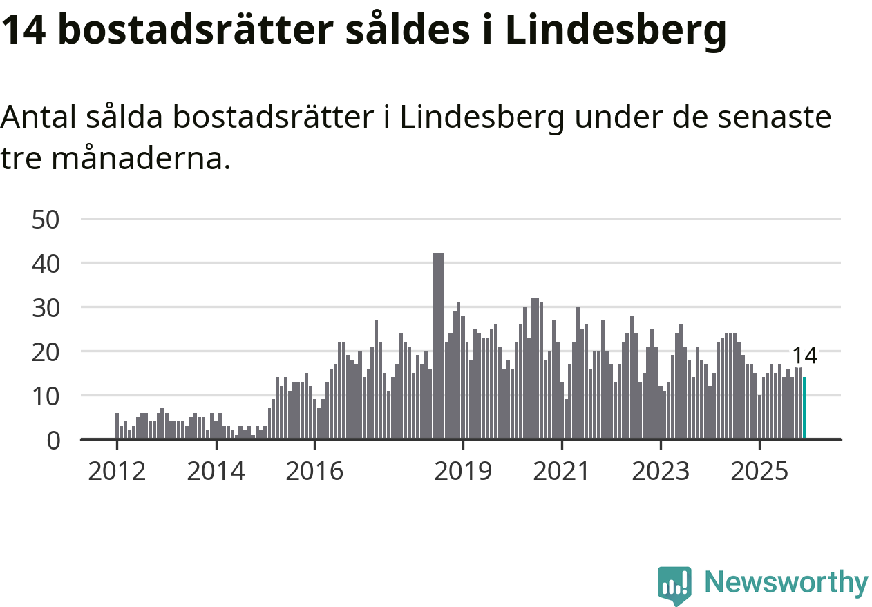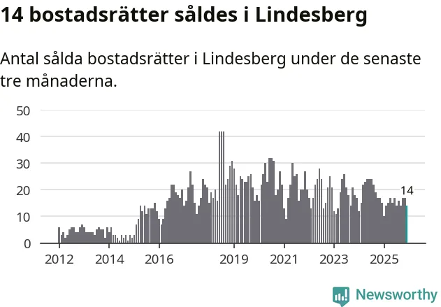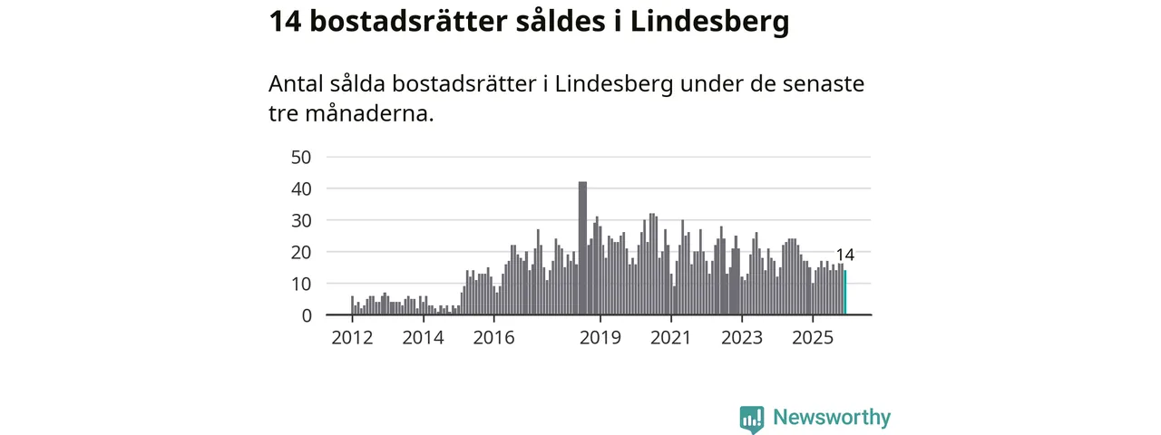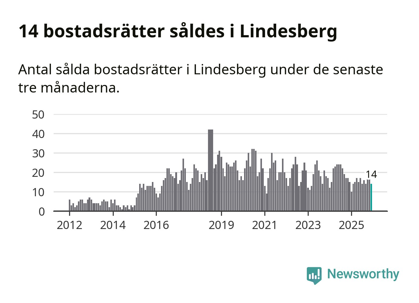 Mellan oktober och december gjordes sammanlagt 14 affärer med bostadsrätter i Lindesbergs kommun. Det kan jämföras med 15 vid motsvarande tid i fjol.