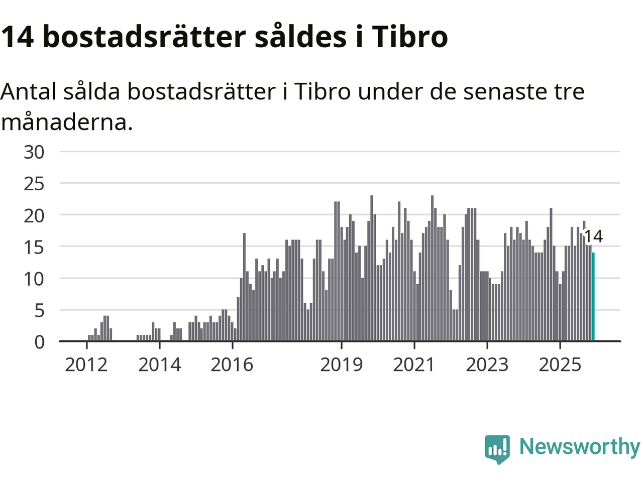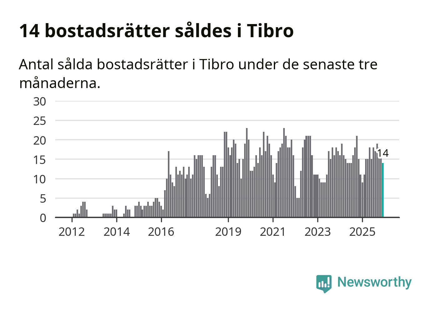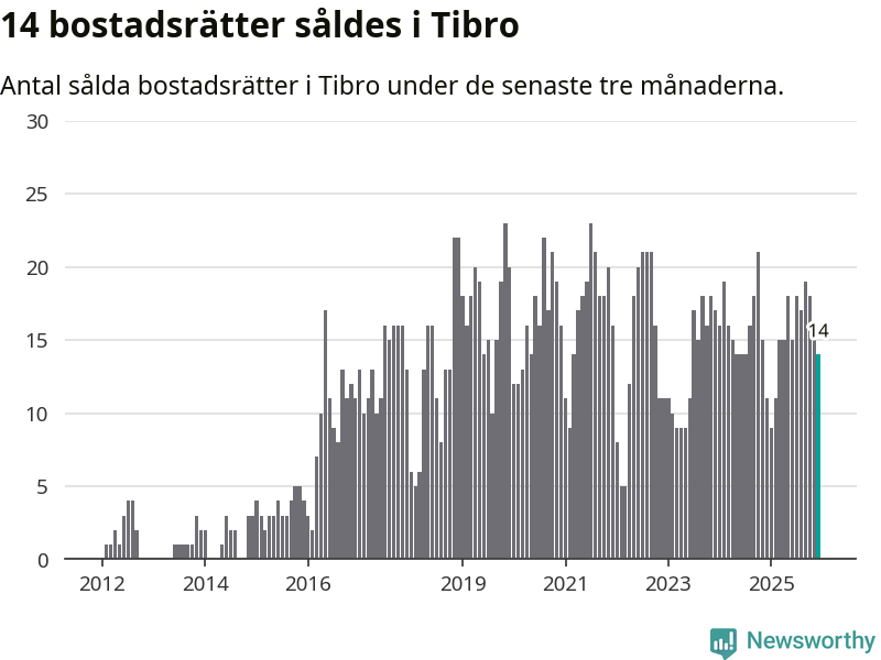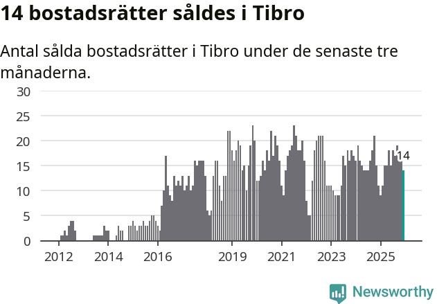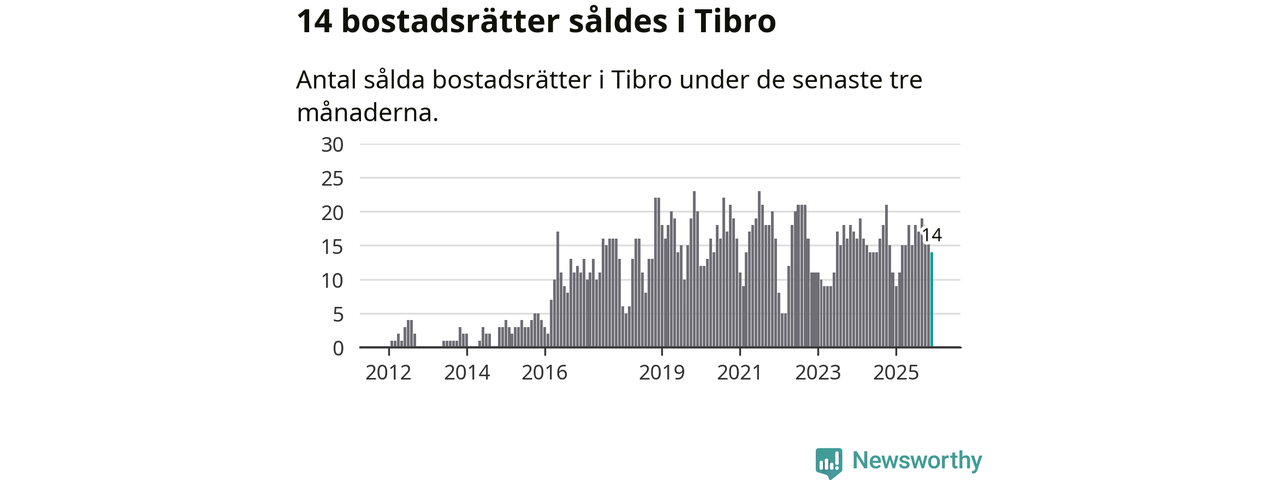Mellan oktober och december gjordes sammanlagt 14 affärer med bostadsrätter i Tibro kommun. Det kan jämföras med elva vid motsvarande tid i fjol.