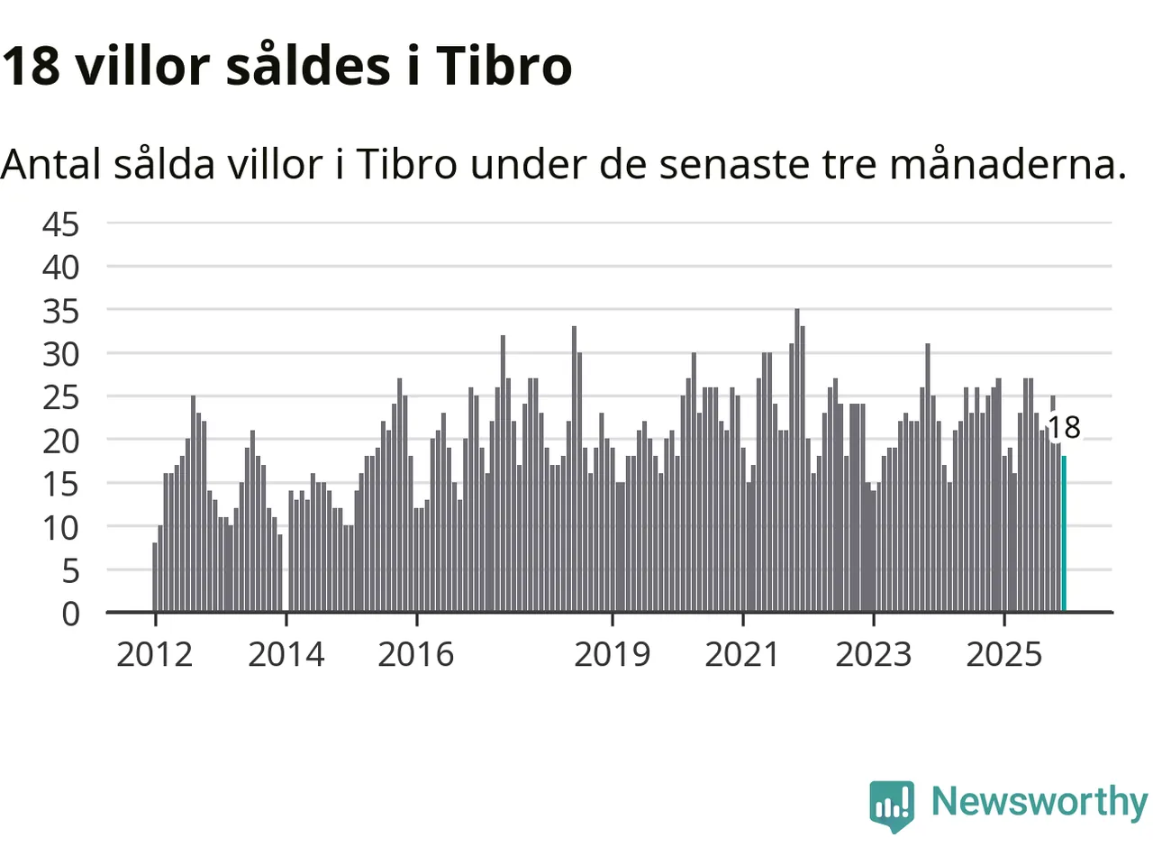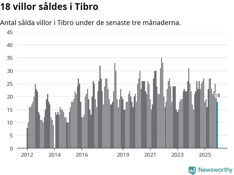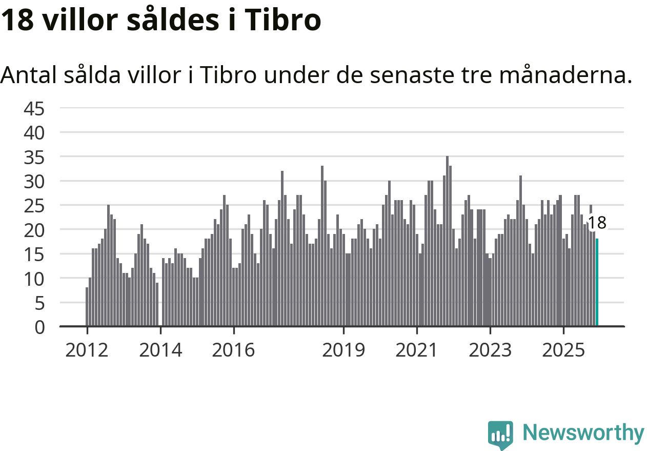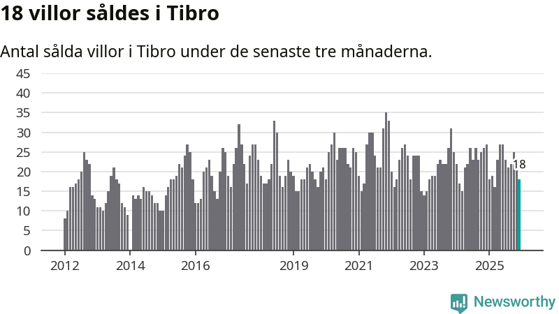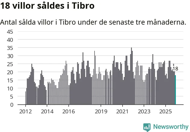Mellan oktober och december gjordes sammanlagt 18 affärer med villor i Tibro kommun. Det kan jämföras med 27 vid motsvarande tid i fjol.