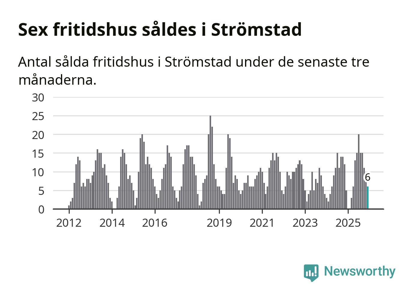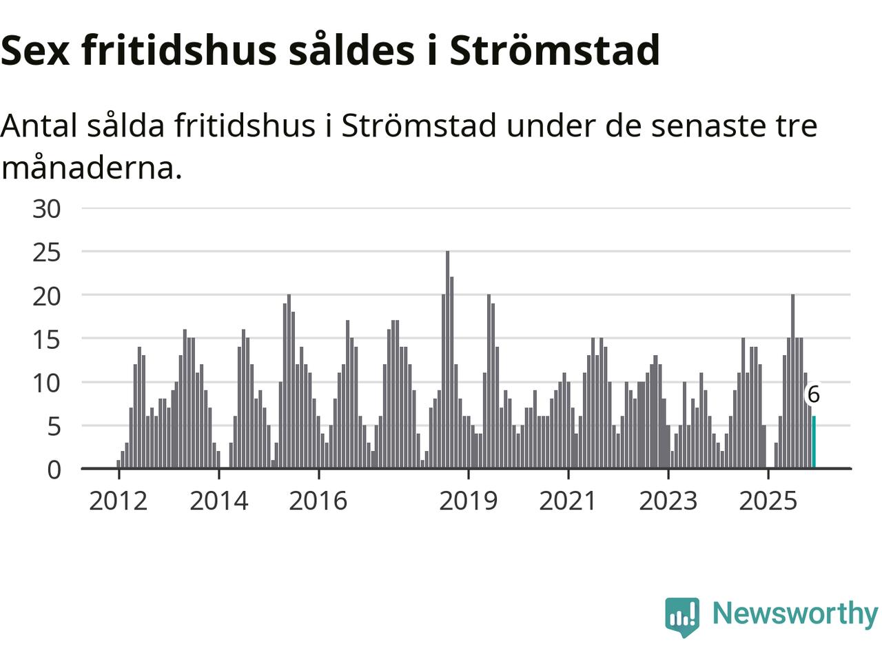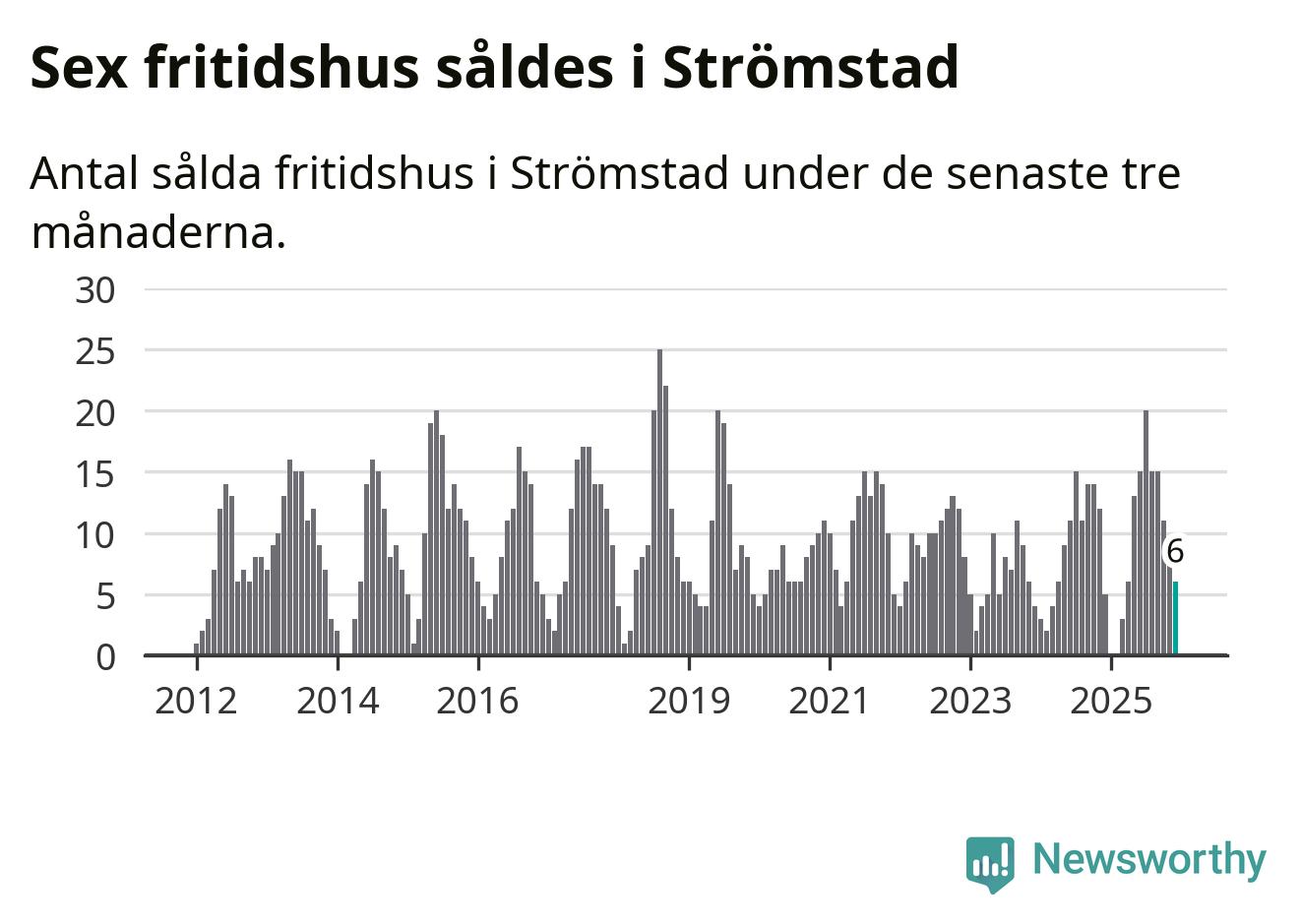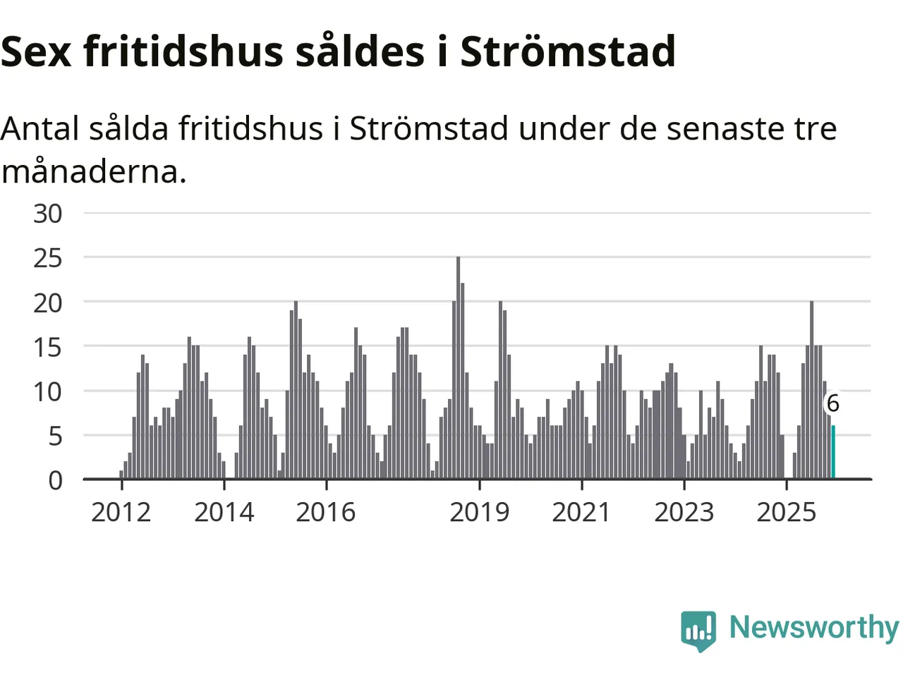 Sammanlagt såldes sex fritidshus i Strömstads kommun mellan oktober 2025 och december 2025 till ett genomsnittligt pris på 2,8 miljoner kronor. I fjol gjordes fem affärer vid den här tiden på året.
