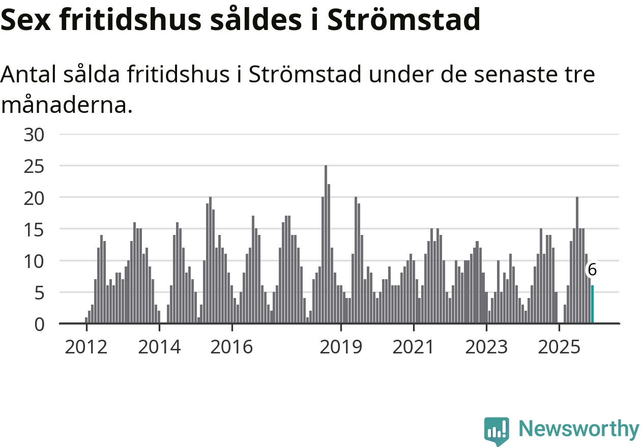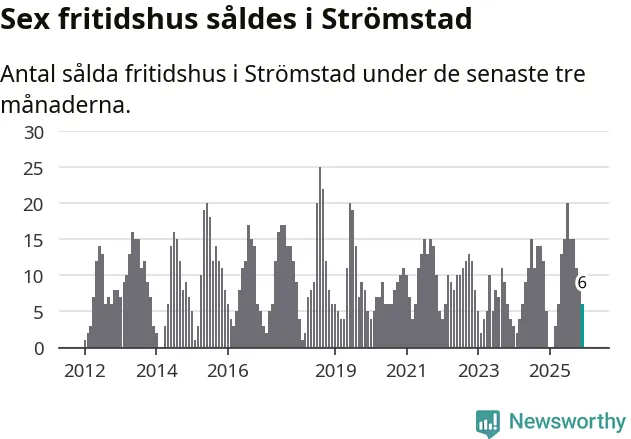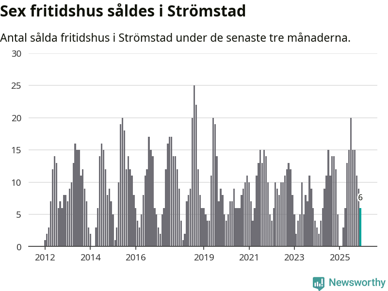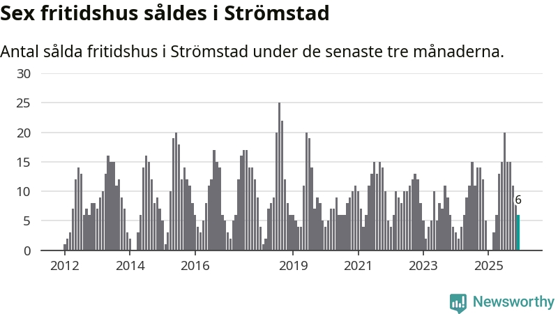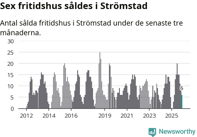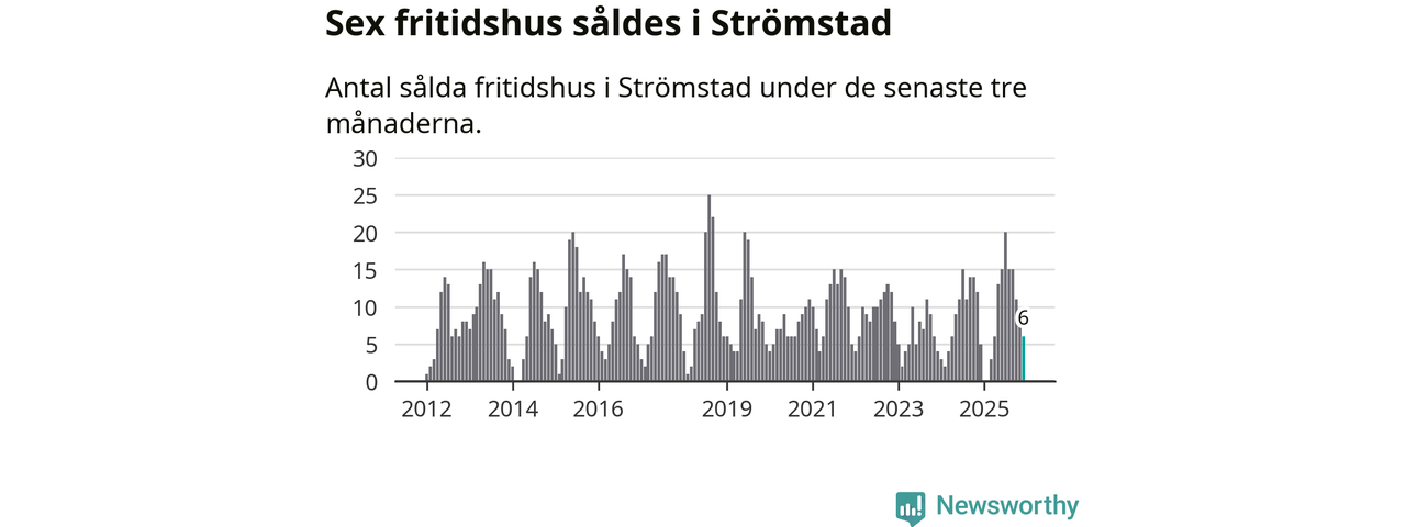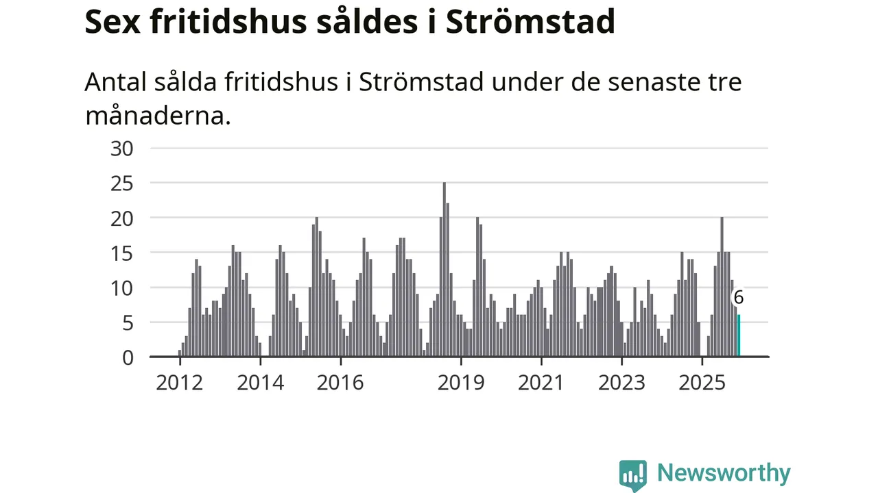 Sammanlagt såldes sex fritidshus i Strömstads kommun mellan oktober 2025 och december 2025 till ett genomsnittligt pris på 2,8 miljoner kronor. I fjol gjordes fem affärer vid den här tiden på året.