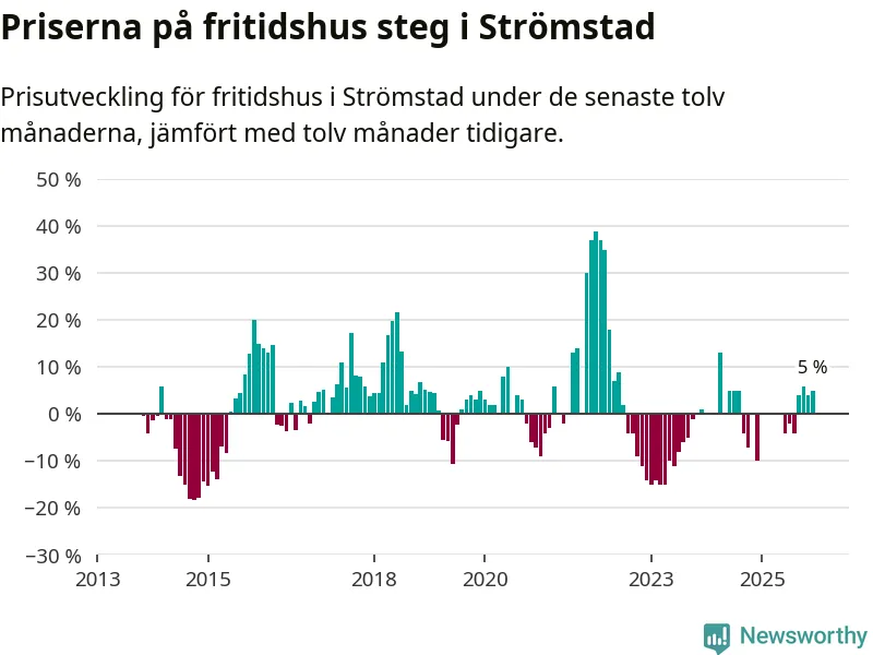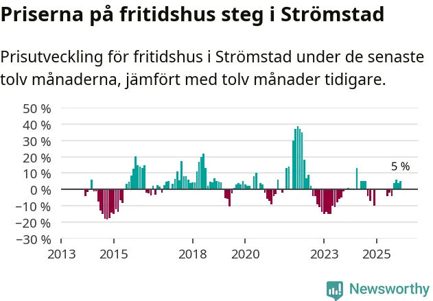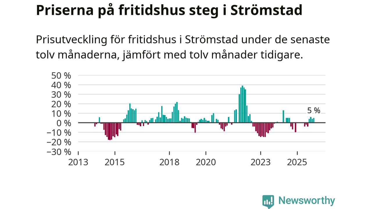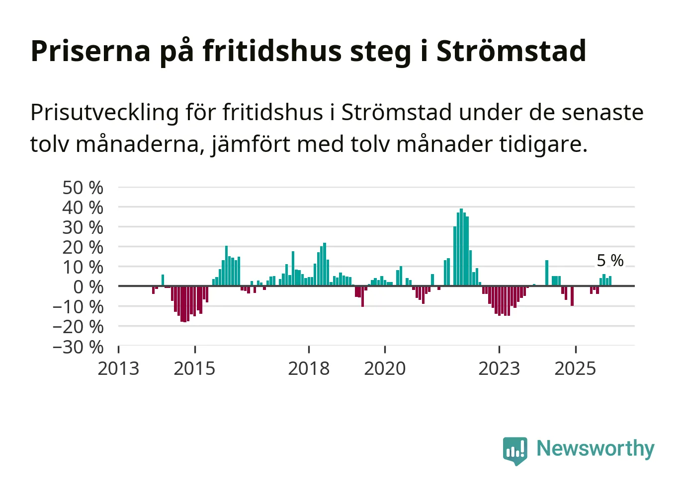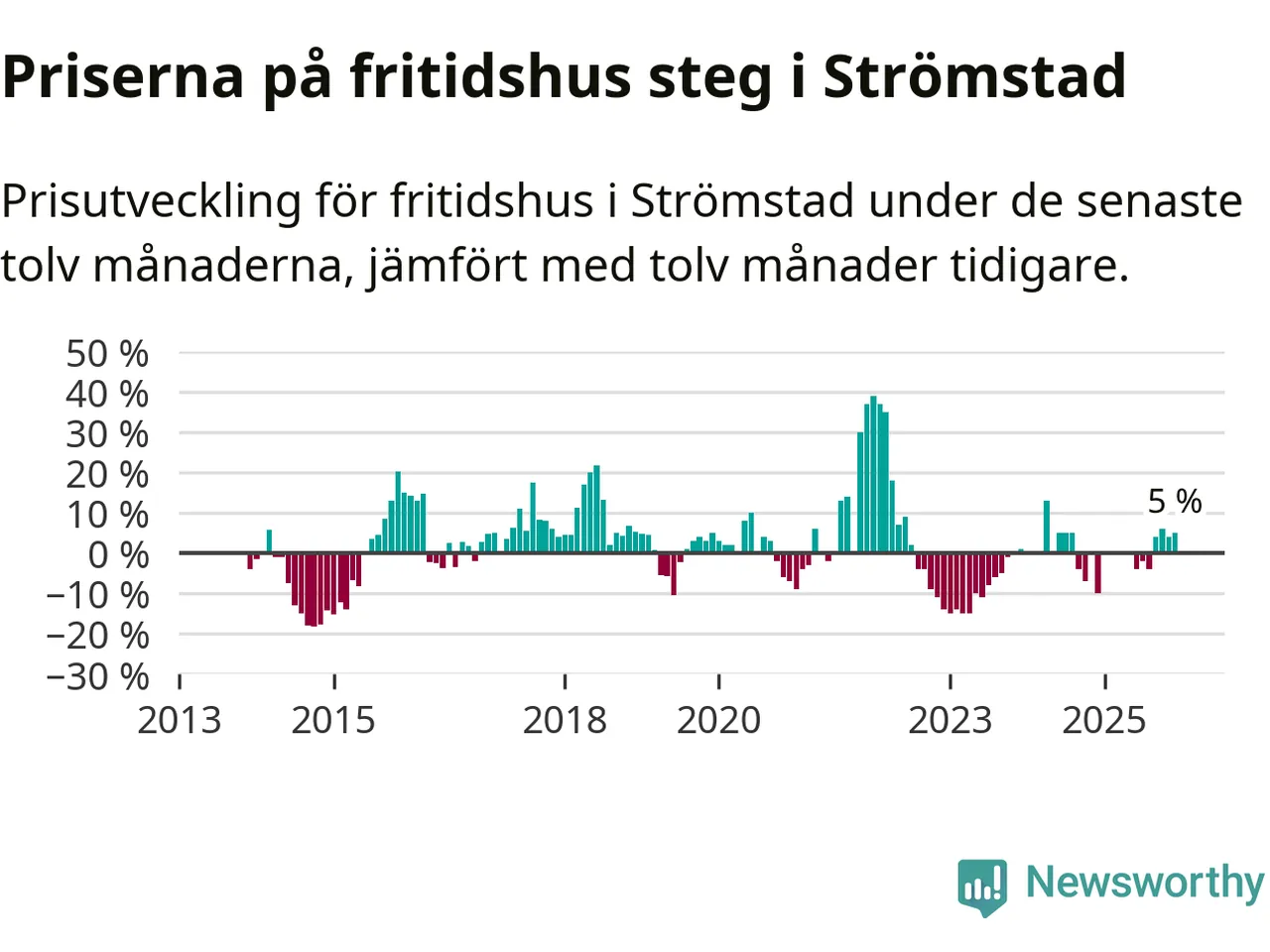Sammanlagt såldes sex fritidshus i Strömstads kommun mellan oktober 2025 och december 2025 till ett genomsnittligt pris på 2,8 miljoner kronor. I fjol gjordes fem affärer vid den här tiden på året.