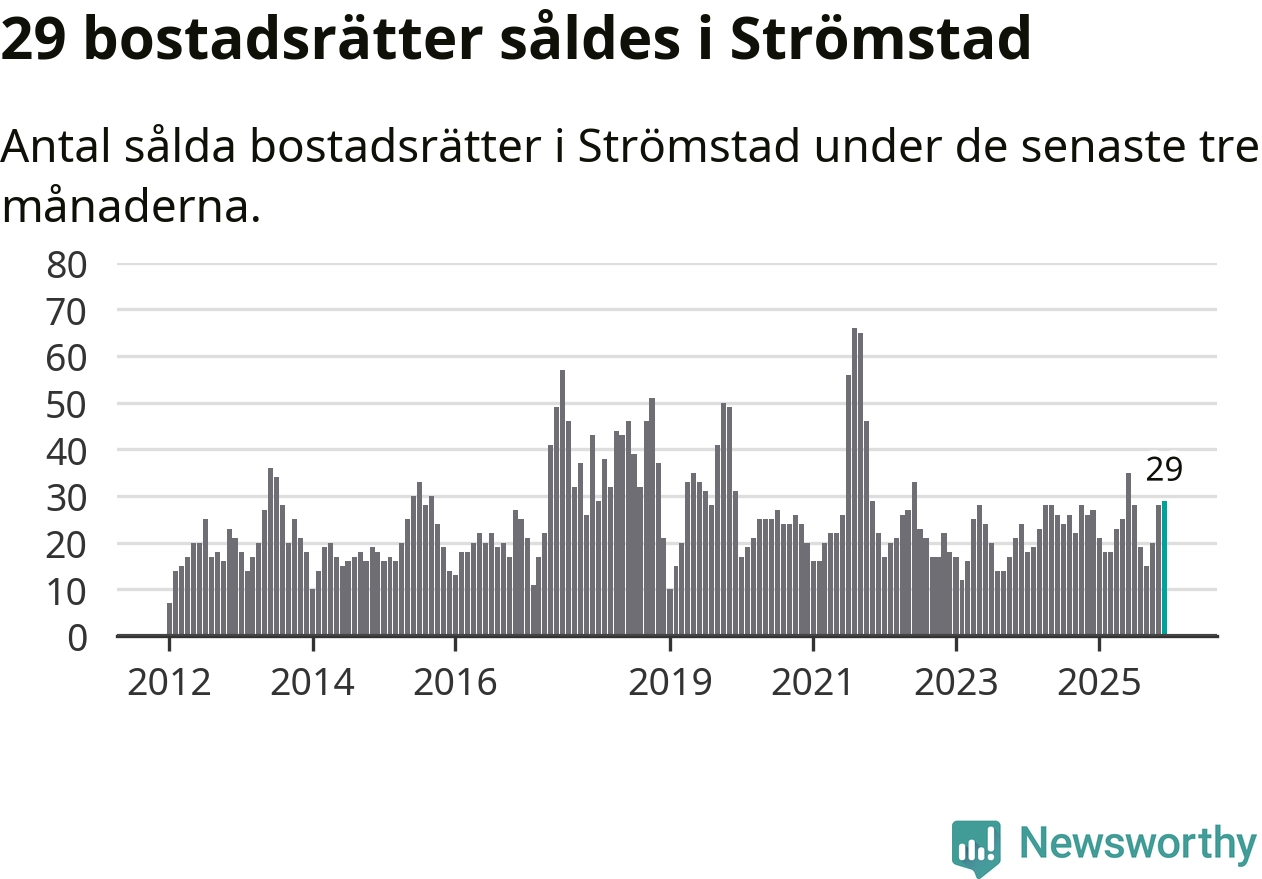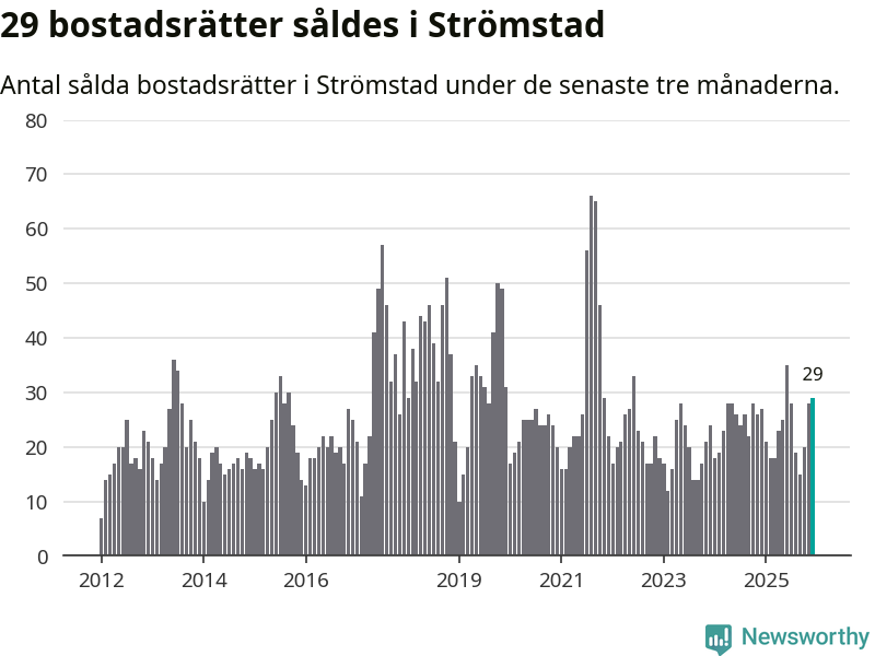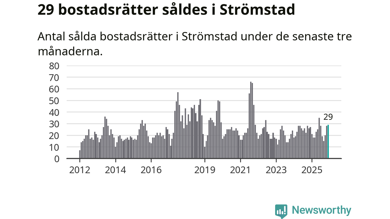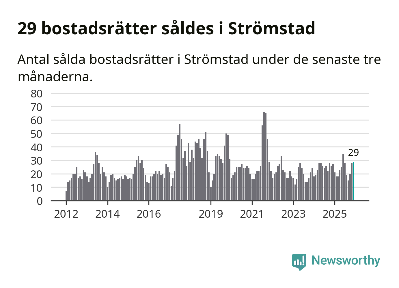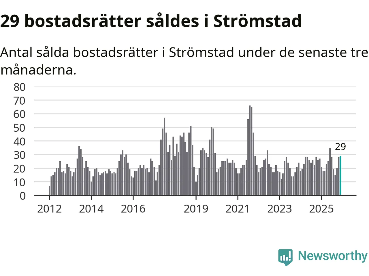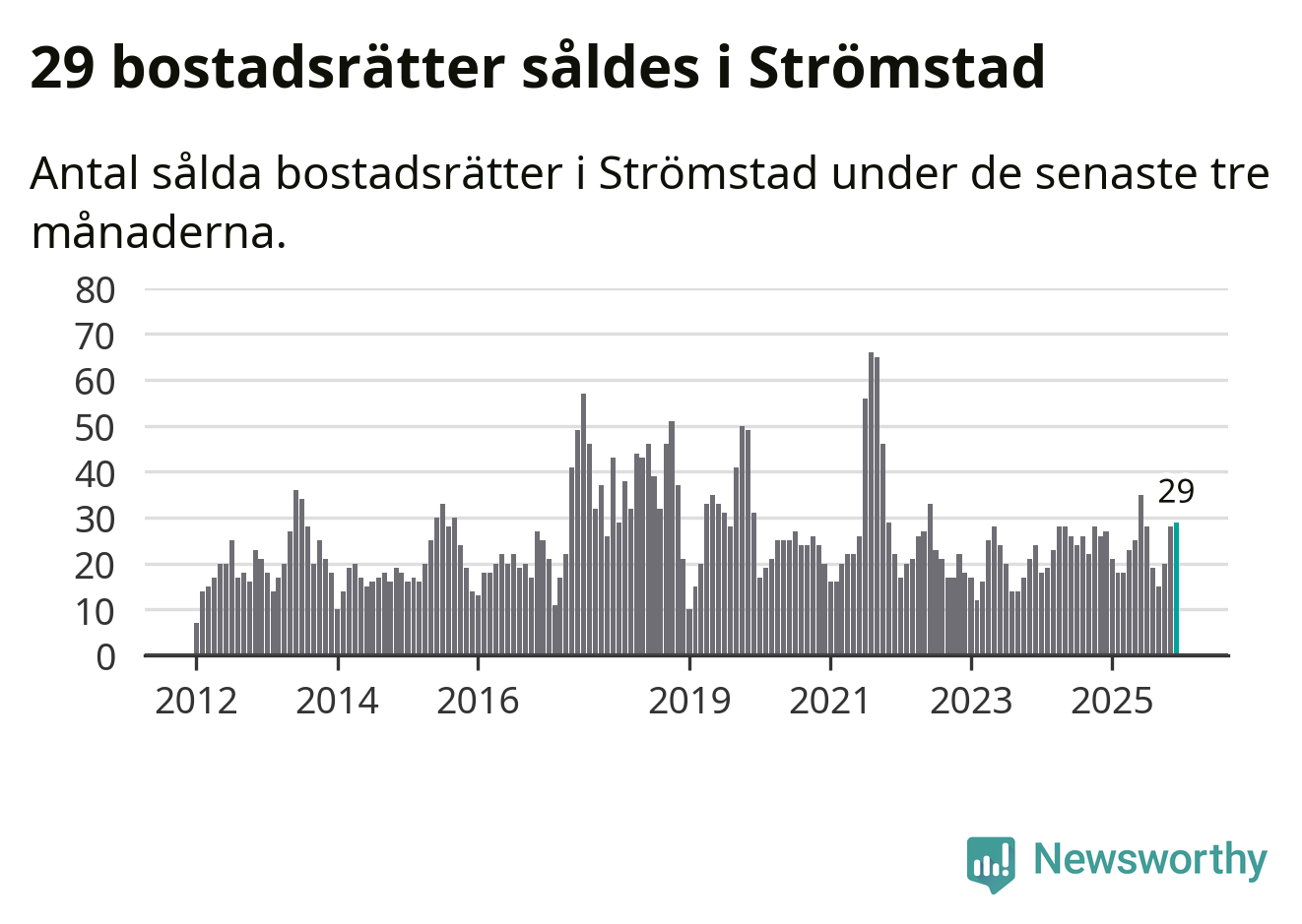 Mellan oktober och december gjordes sammanlagt 29 affärer med bostadsrätter i Strömstads kommun. Det kan jämföras med 27 vid motsvarande tid i fjol.
