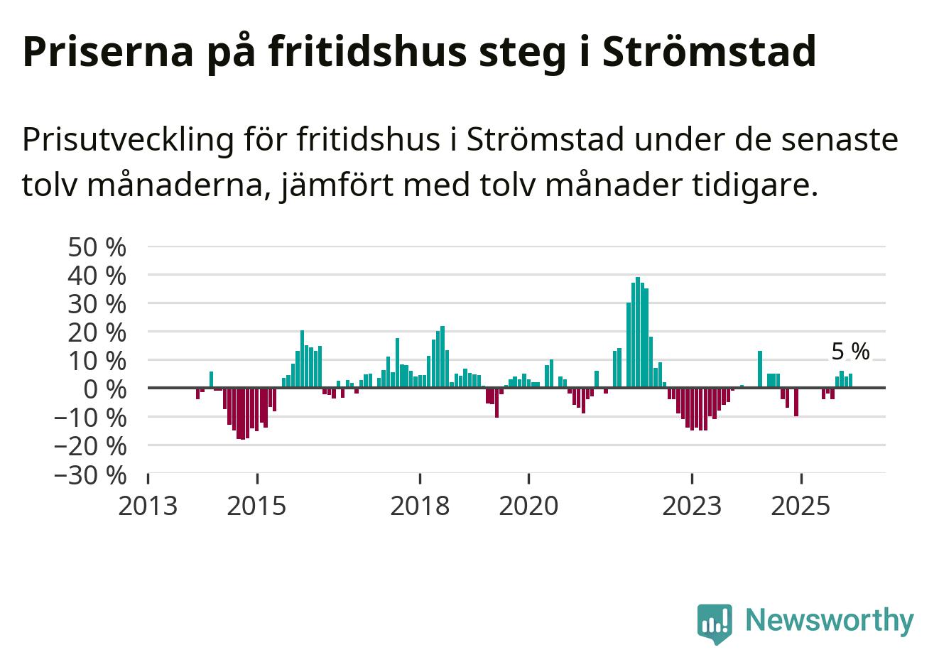 Priserna på fritidshus har gått upp i Strömstads kommun. Medelpriset på försäljningarna under de senaste tolv månaderna visar på en uppgång med 5 procent.