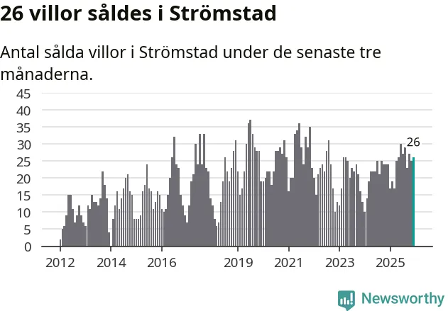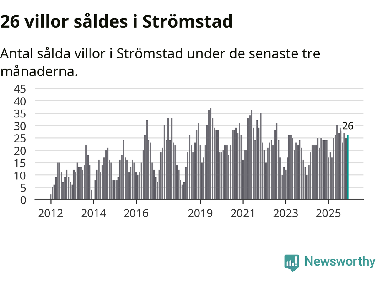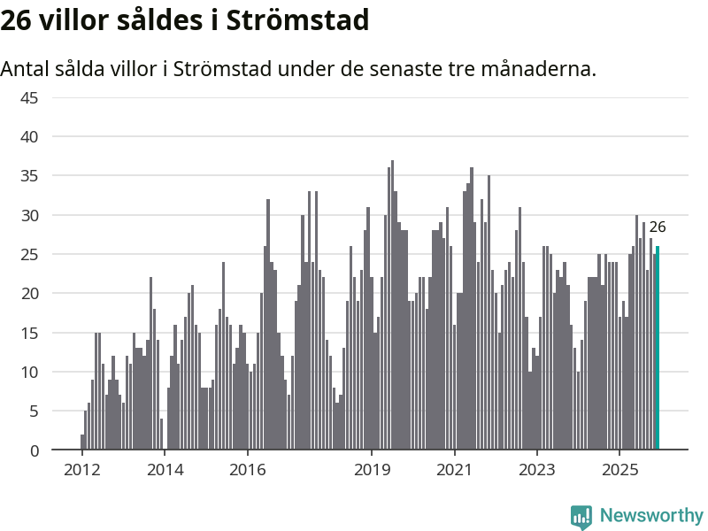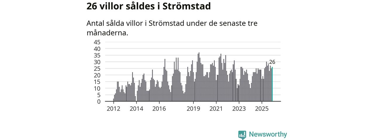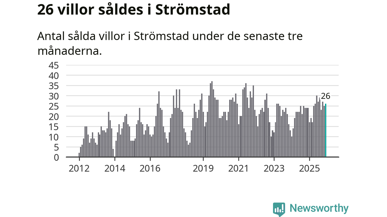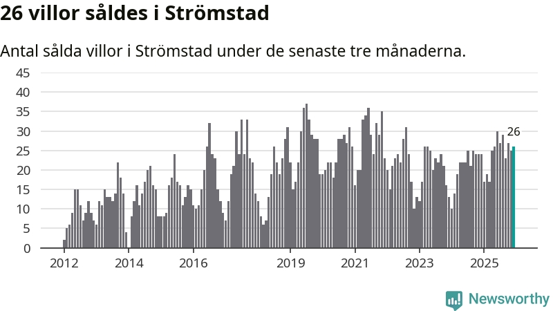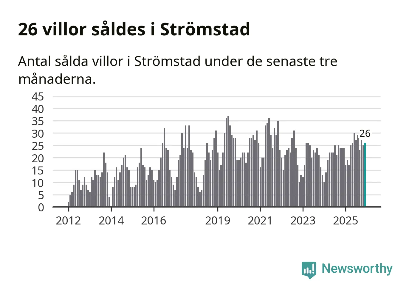 Mellan oktober och december gjordes sammanlagt 26 affärer med villor i Strömstads kommun. Det kan jämföras med 24 vid motsvarande tid i fjol.