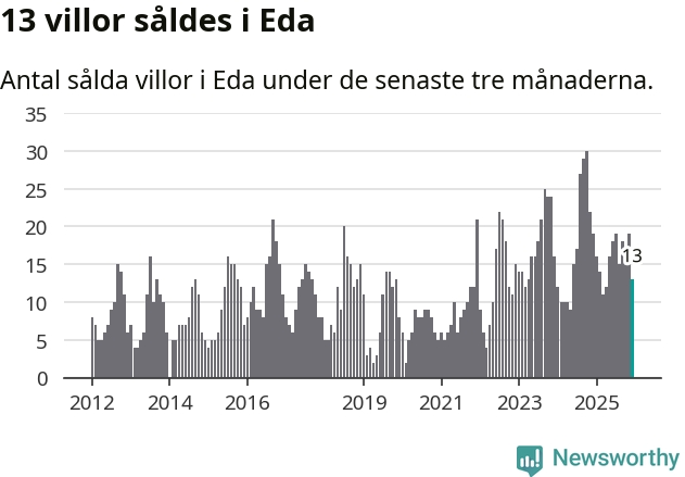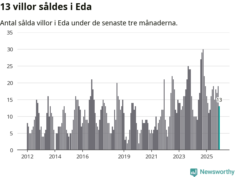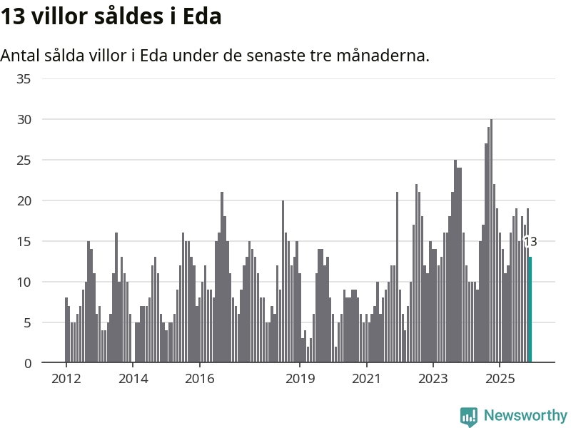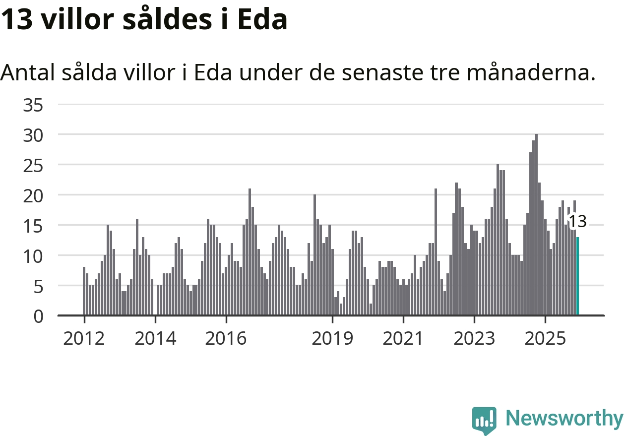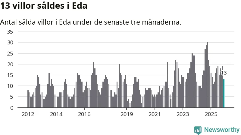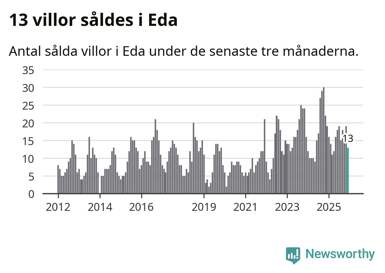 Mellan oktober och december gjordes sammanlagt 13 affärer med villor i Eda kommun. Det kan jämföras med 19 vid motsvarande tid i fjol.