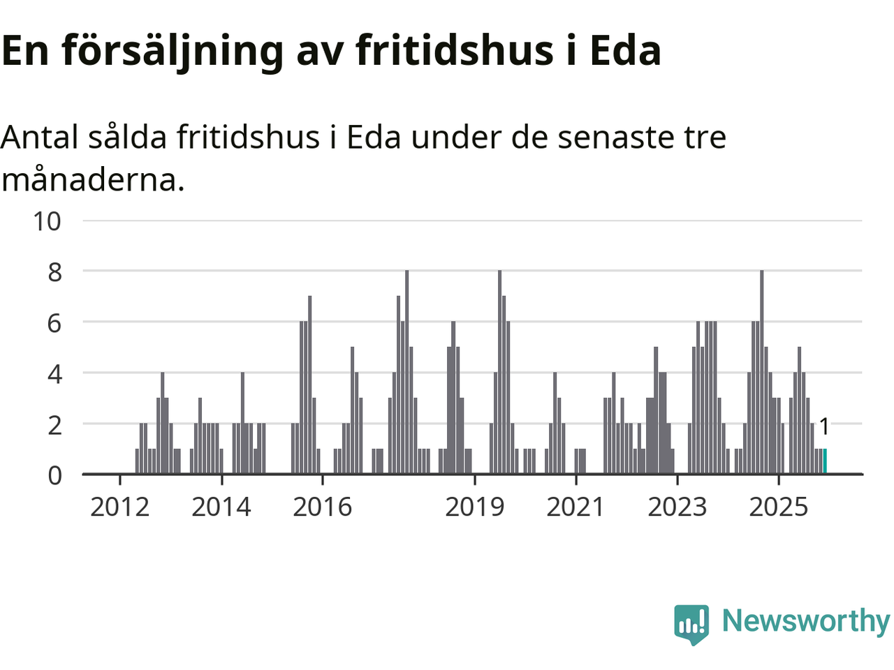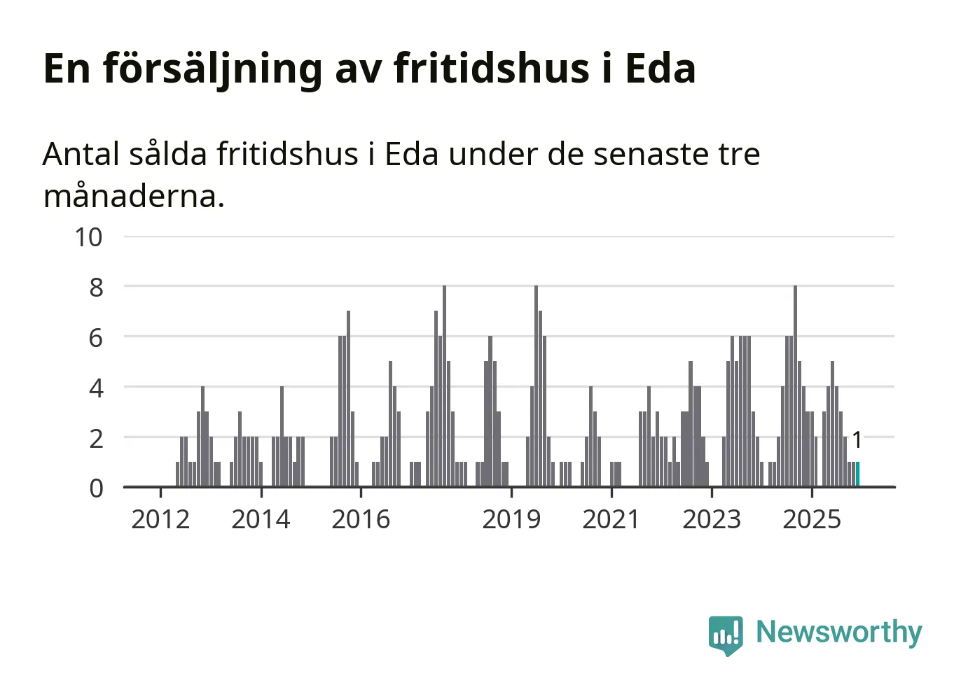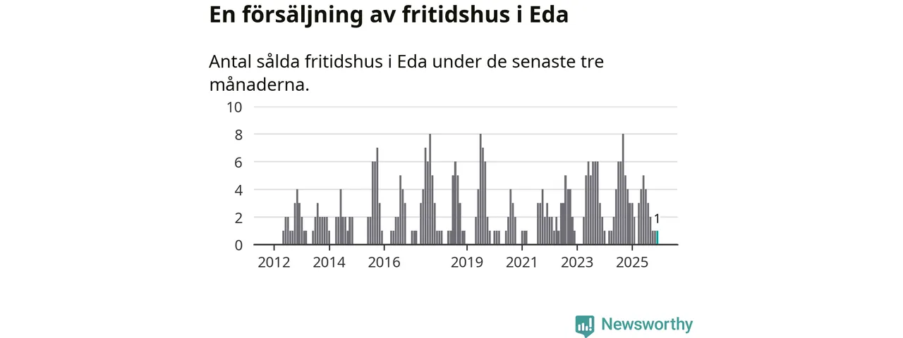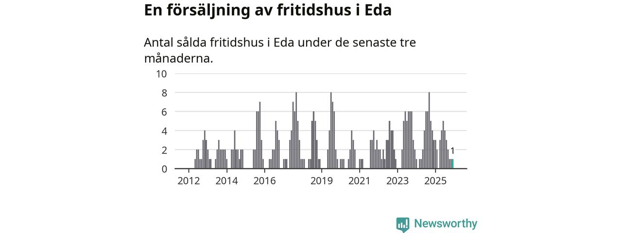 Mellan oktober och december gjordes sammanlagt en affär med fritidshus i Eda kommun. Det kan jämföras med tre vid motsvarande tid i fjol.