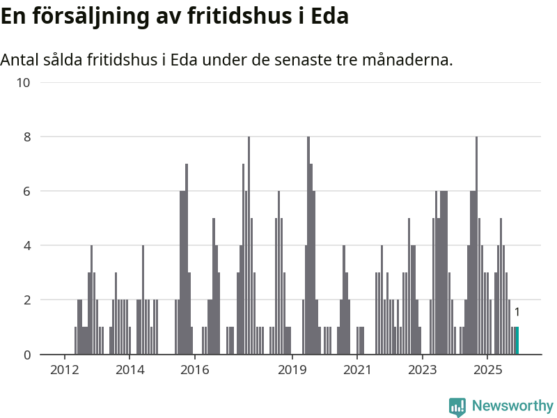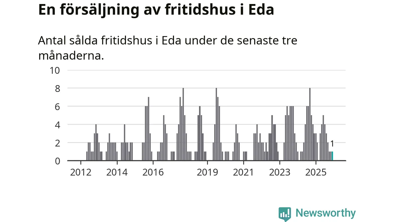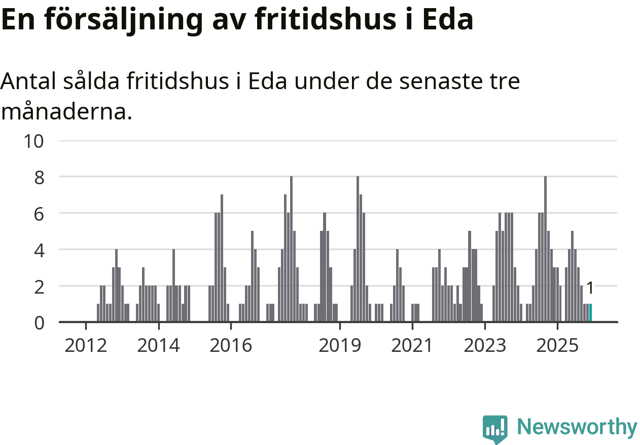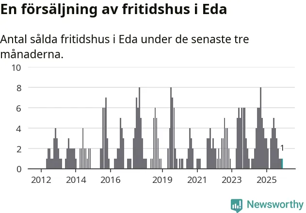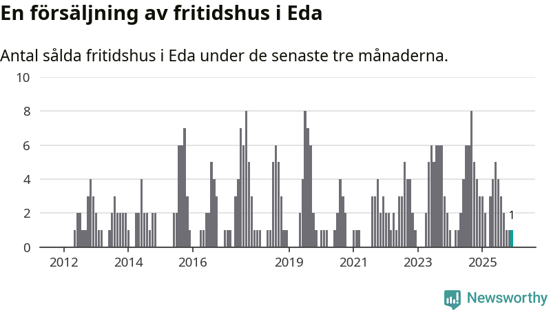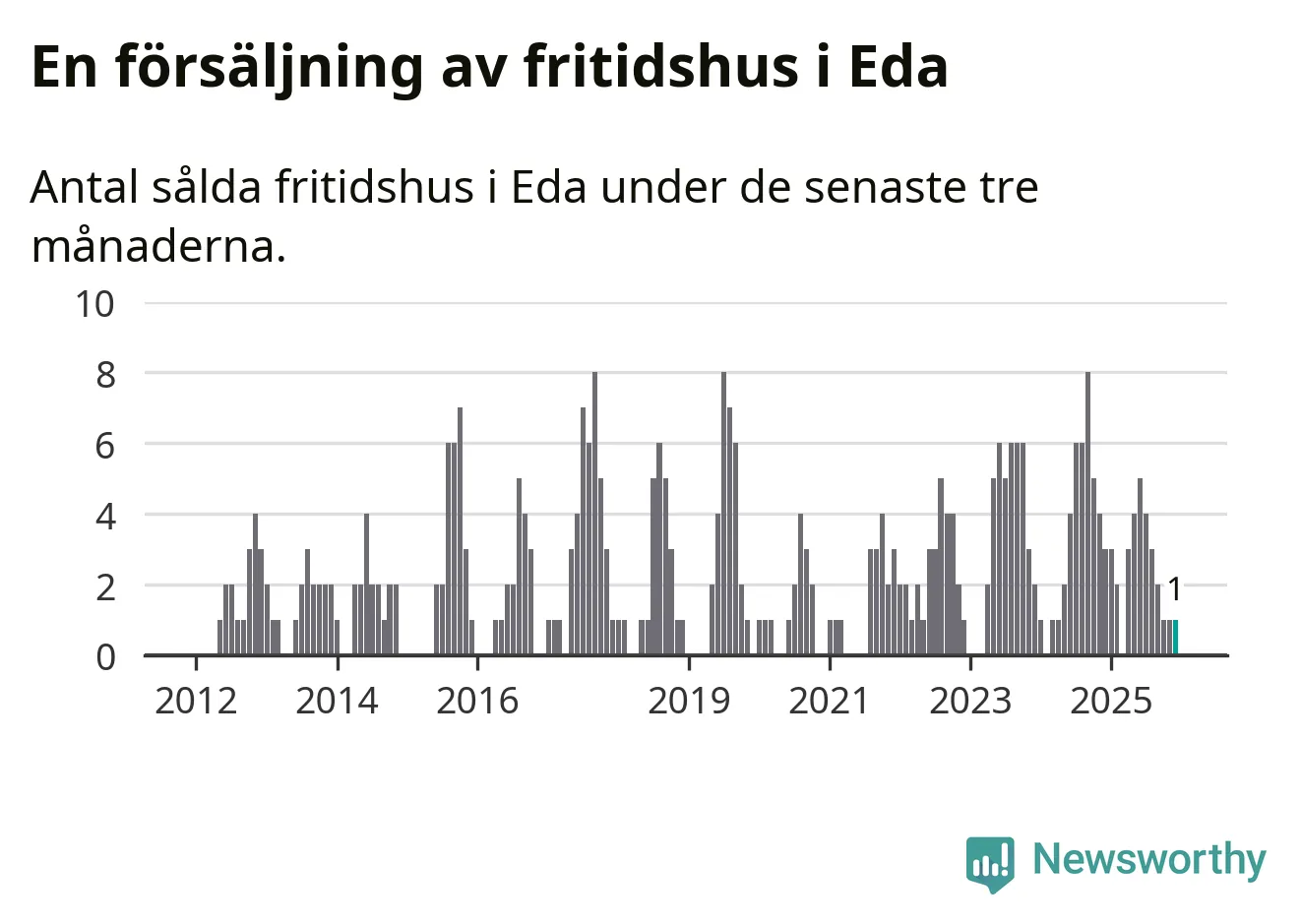 Mellan oktober och december gjordes sammanlagt en affär med fritidshus i Eda kommun. Det kan jämföras med tre vid motsvarande tid i fjol.
