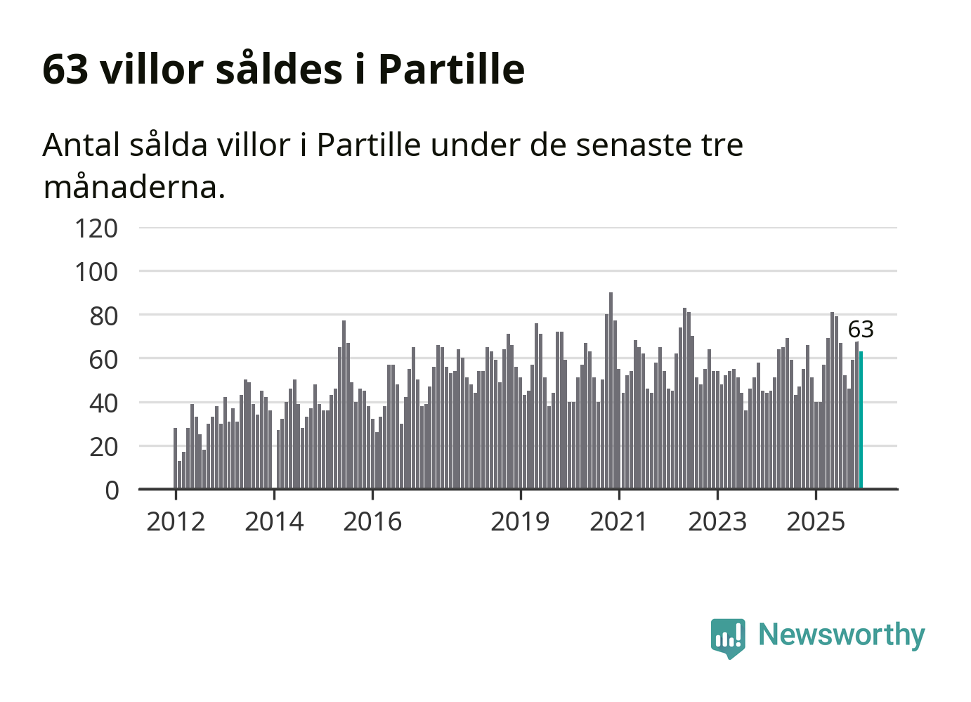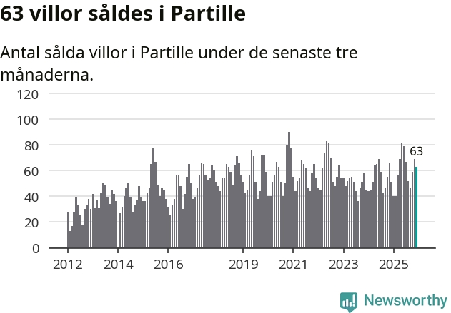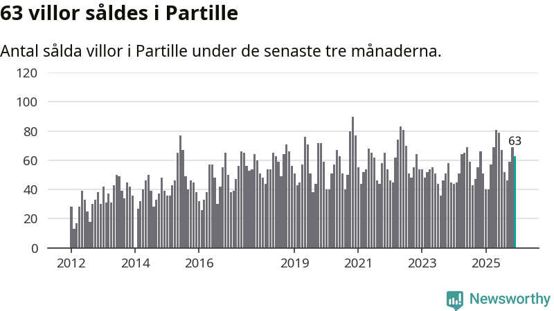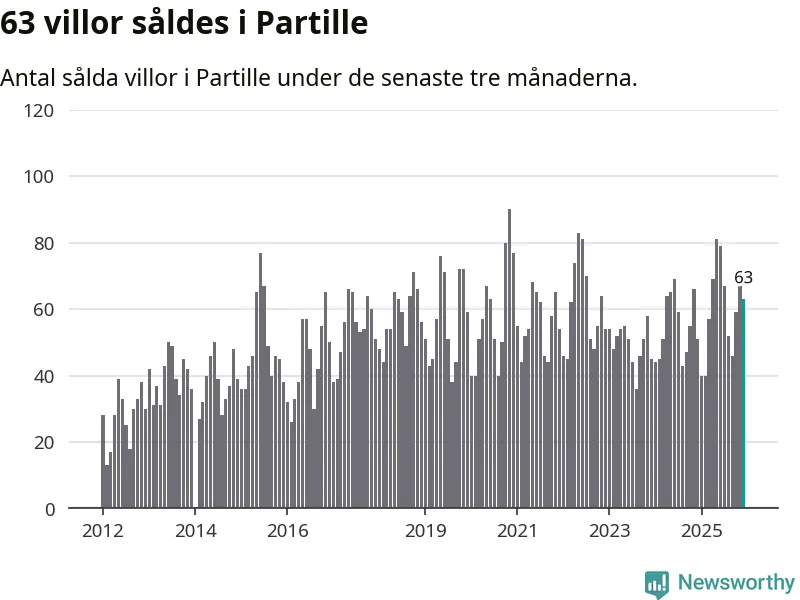Sammanlagt såldes 63 villor i Partille kommun mellan oktober och december till ett genomsnittligt pris på 6,2 miljoner kronor. I fjol gjordes 51 affärer vid den här tiden på året.