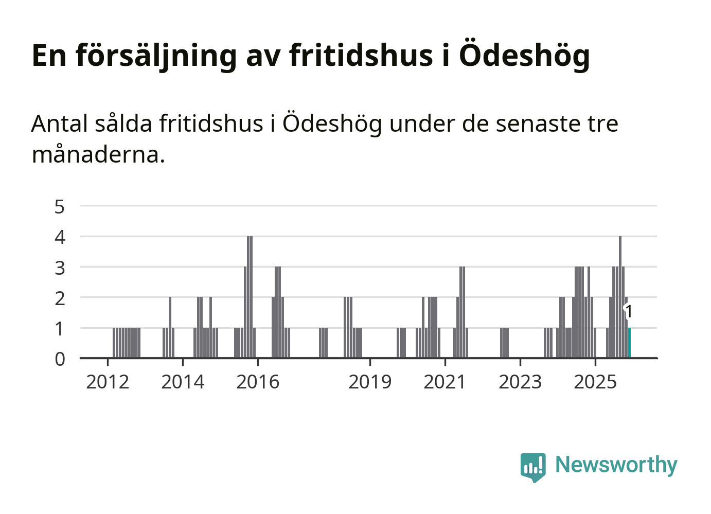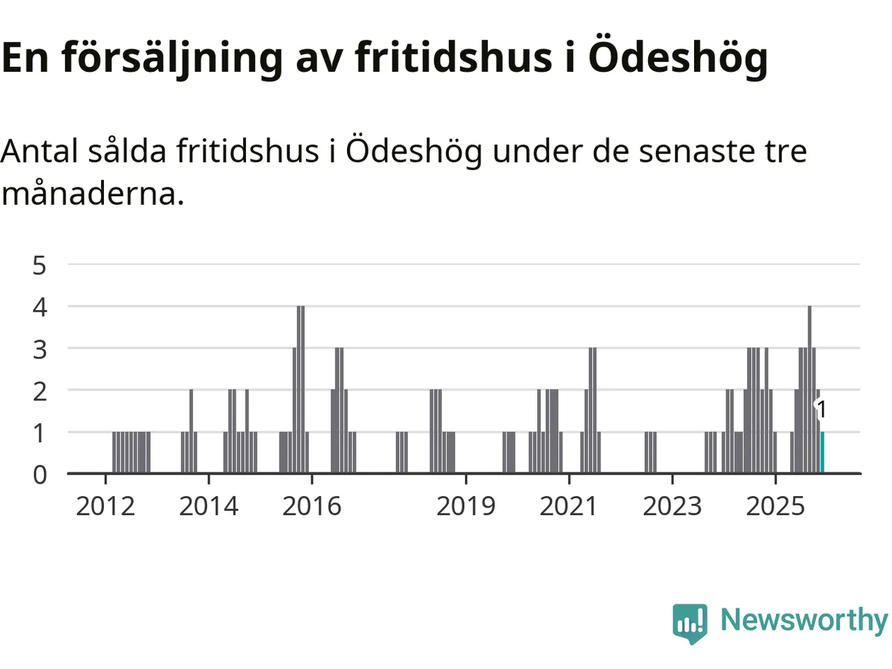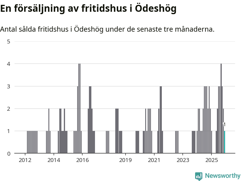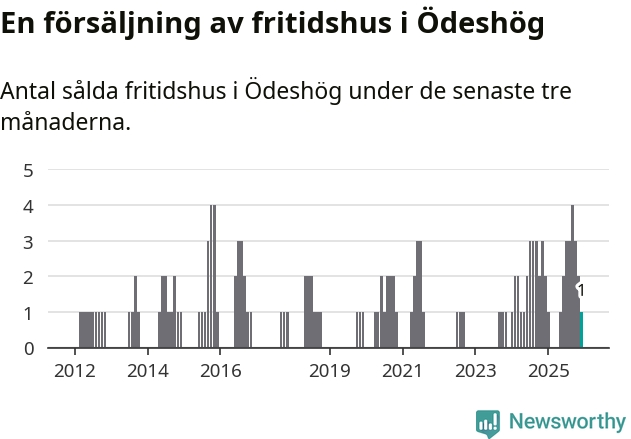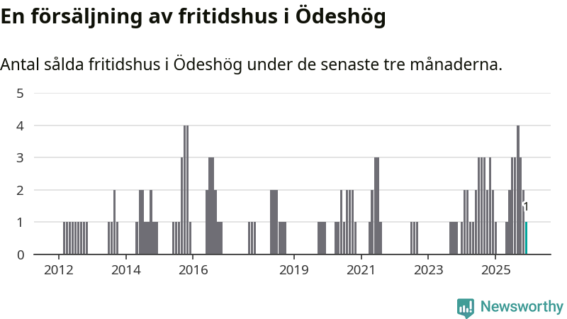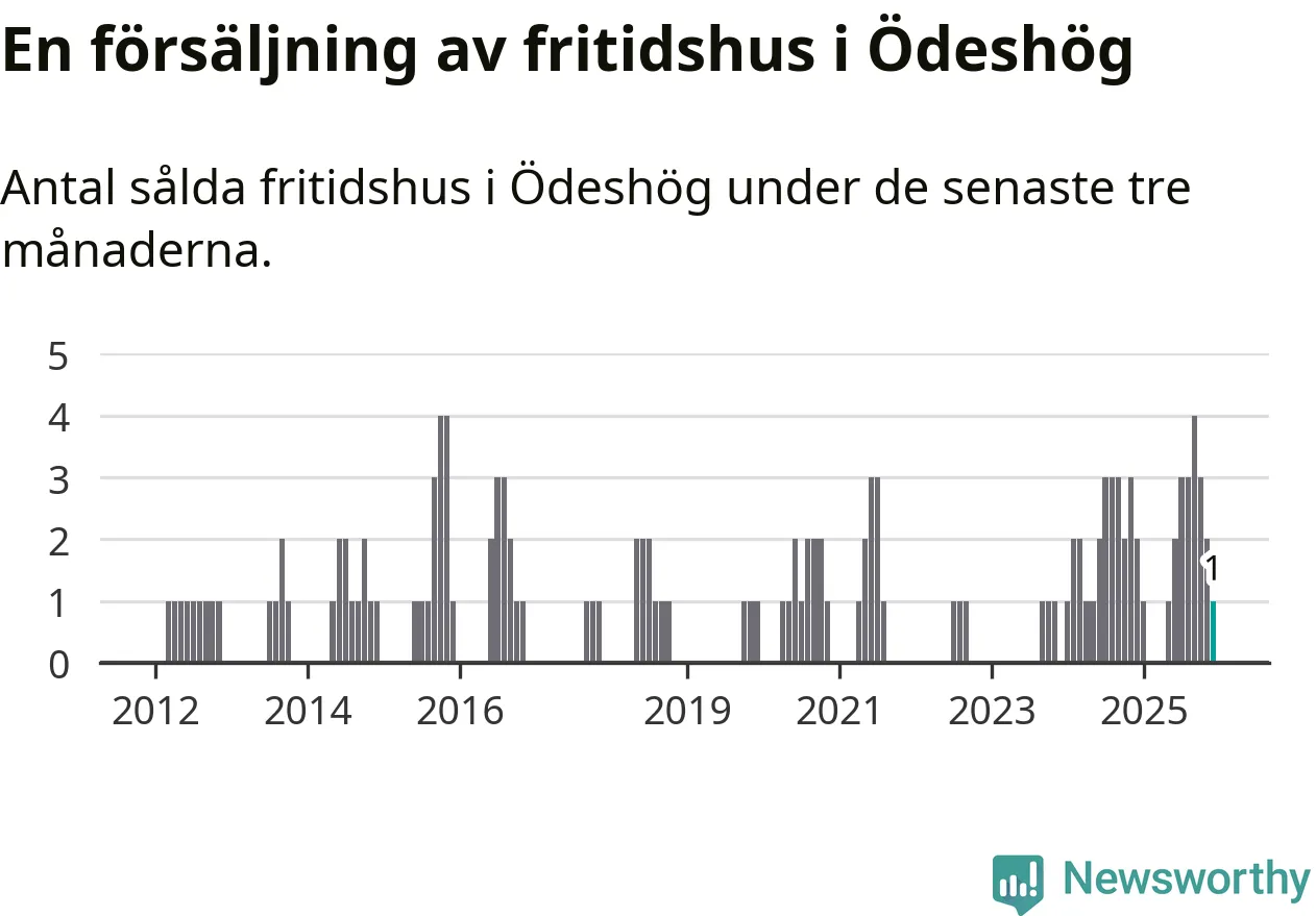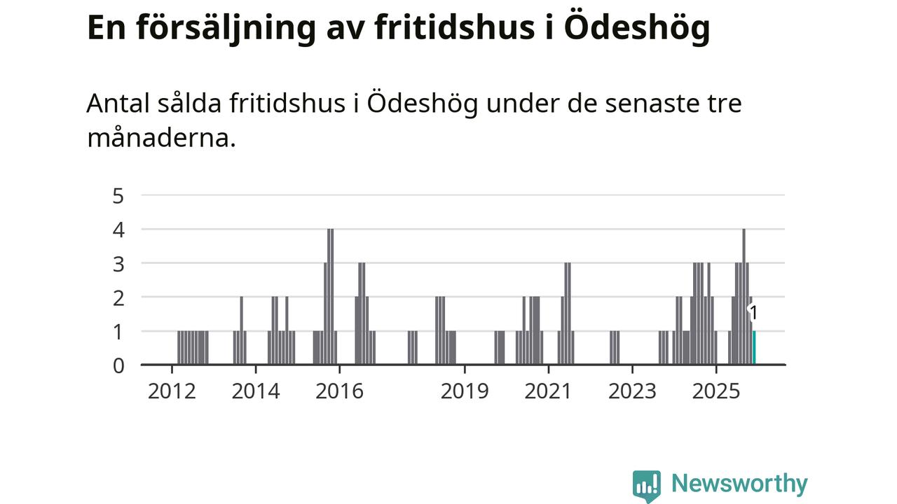 Mellan oktober och december gjordes sammanlagt en affär med fritidshus i Ödeshögs kommun. Det kan jämföras med två vid motsvarande tid i fjol.