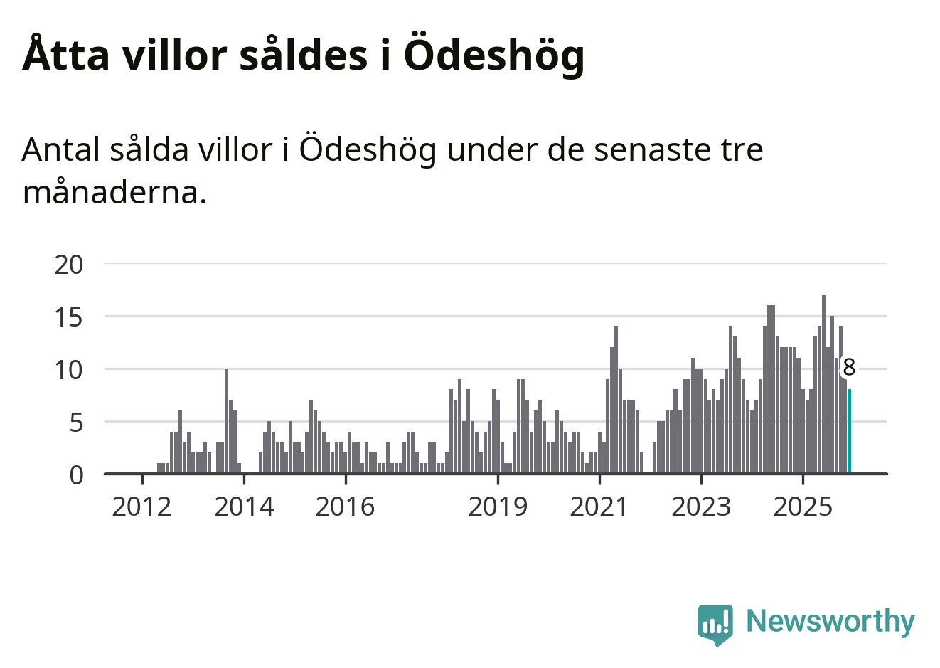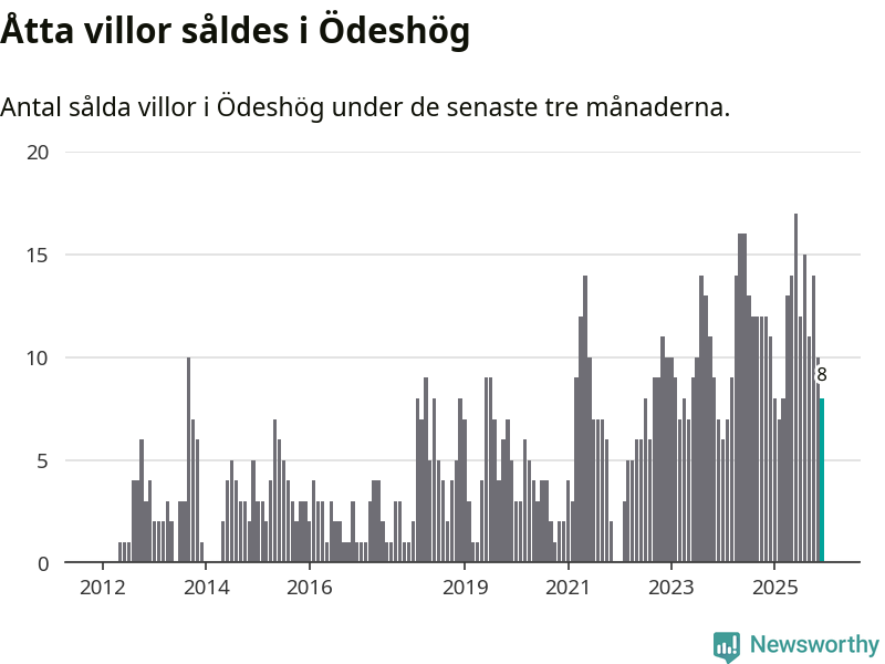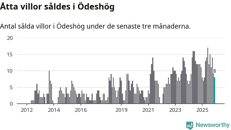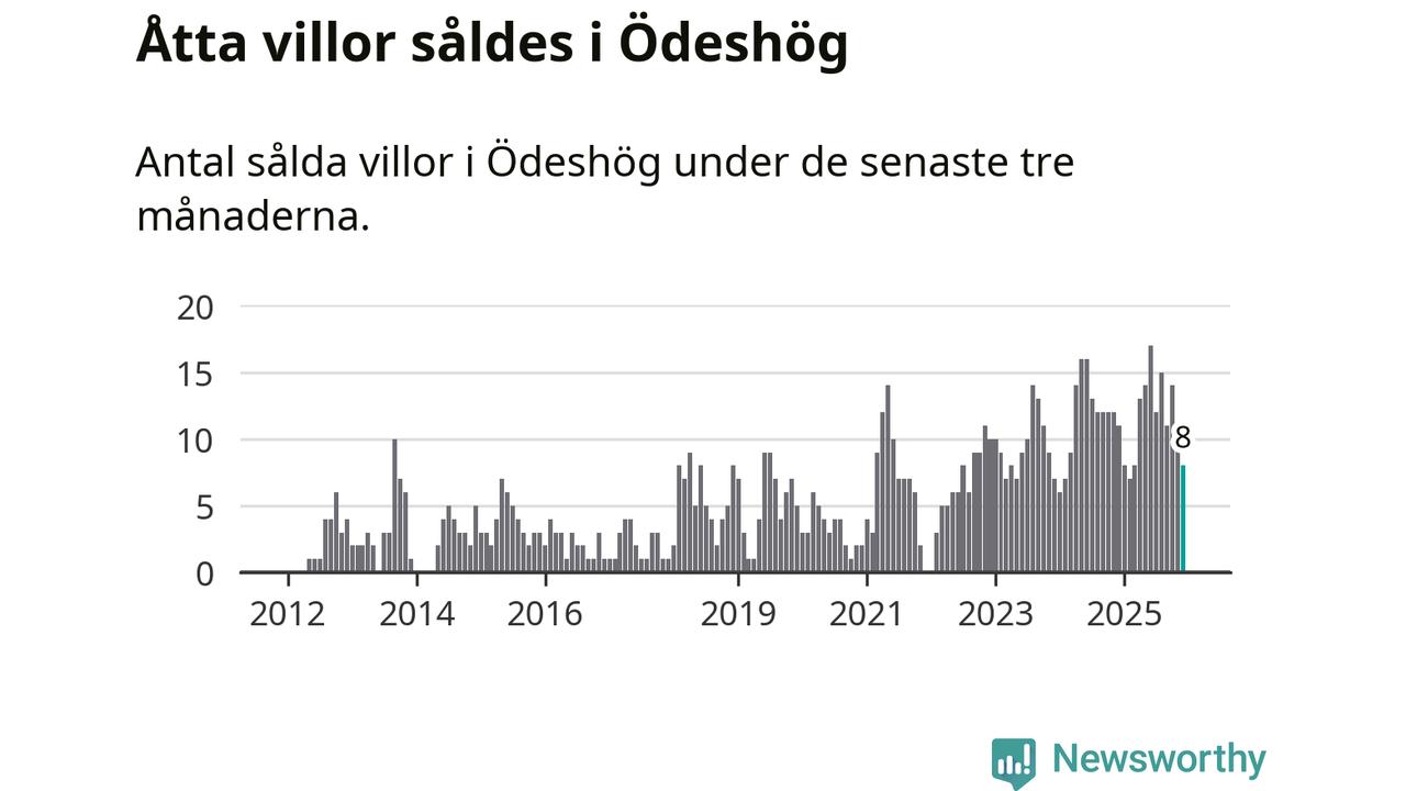 Mellan oktober och december gjordes sammanlagt åtta affärer med villor i Ödeshögs kommun. Det kan jämföras med elva vid motsvarande tid i fjol.