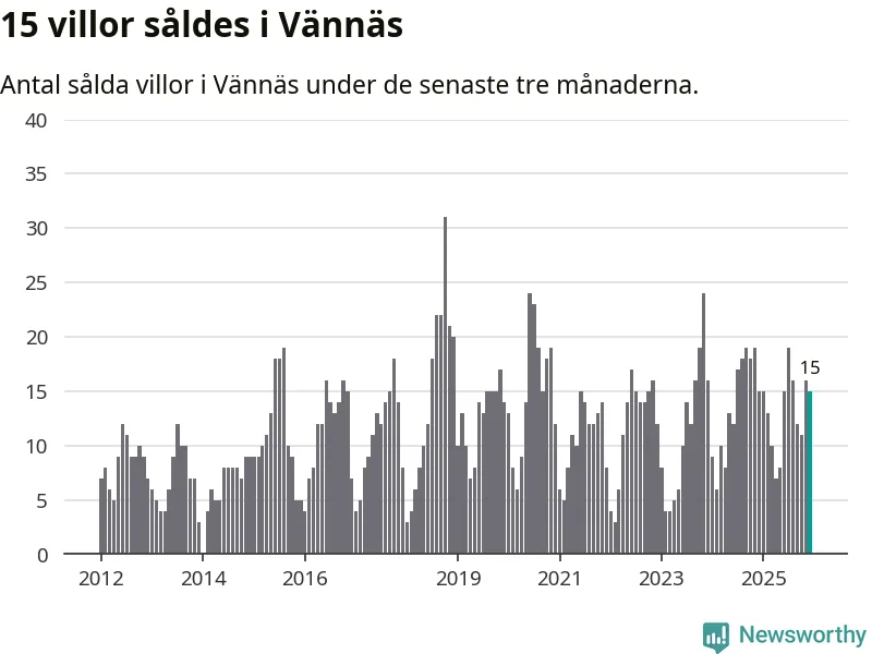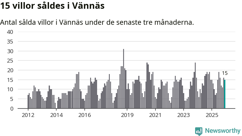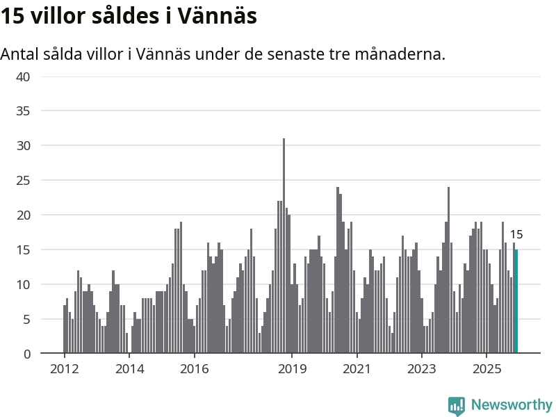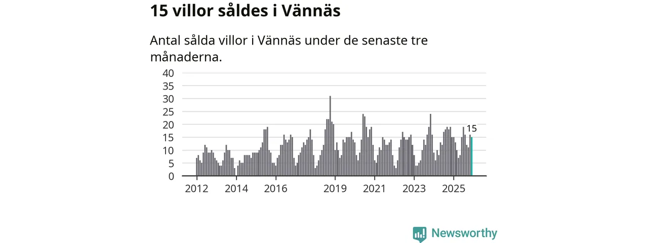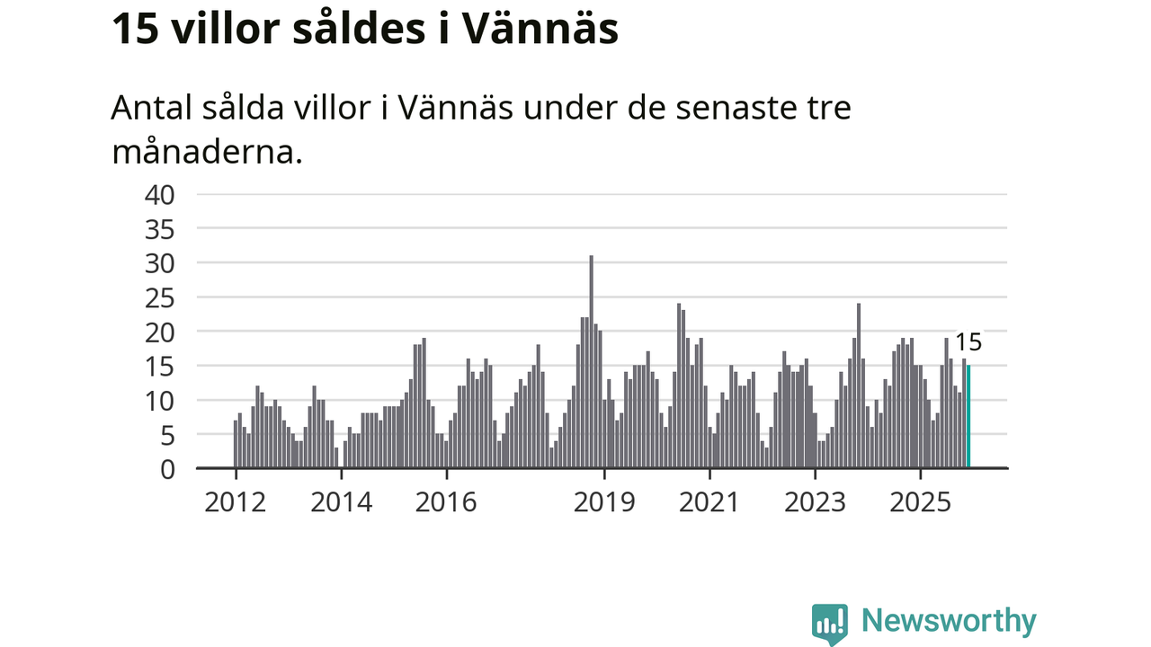 Mellan oktober och december gjordes sammanlagt 15 affärer med villor i Vännäs kommun. Det är lika många affärer som vid motsvarande tid i fjol.