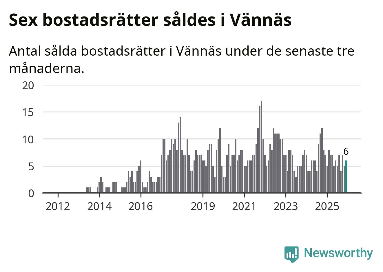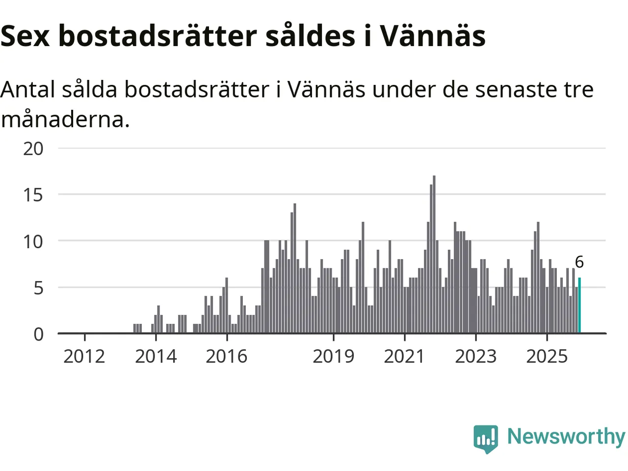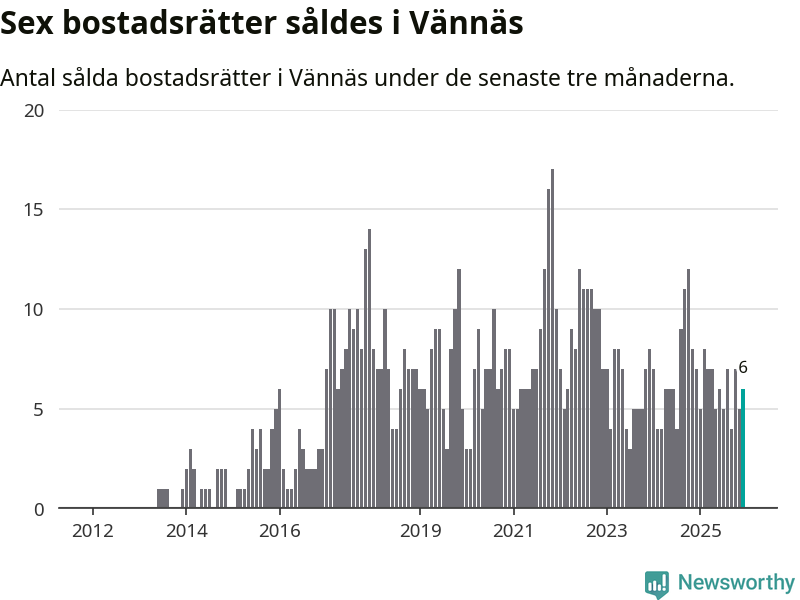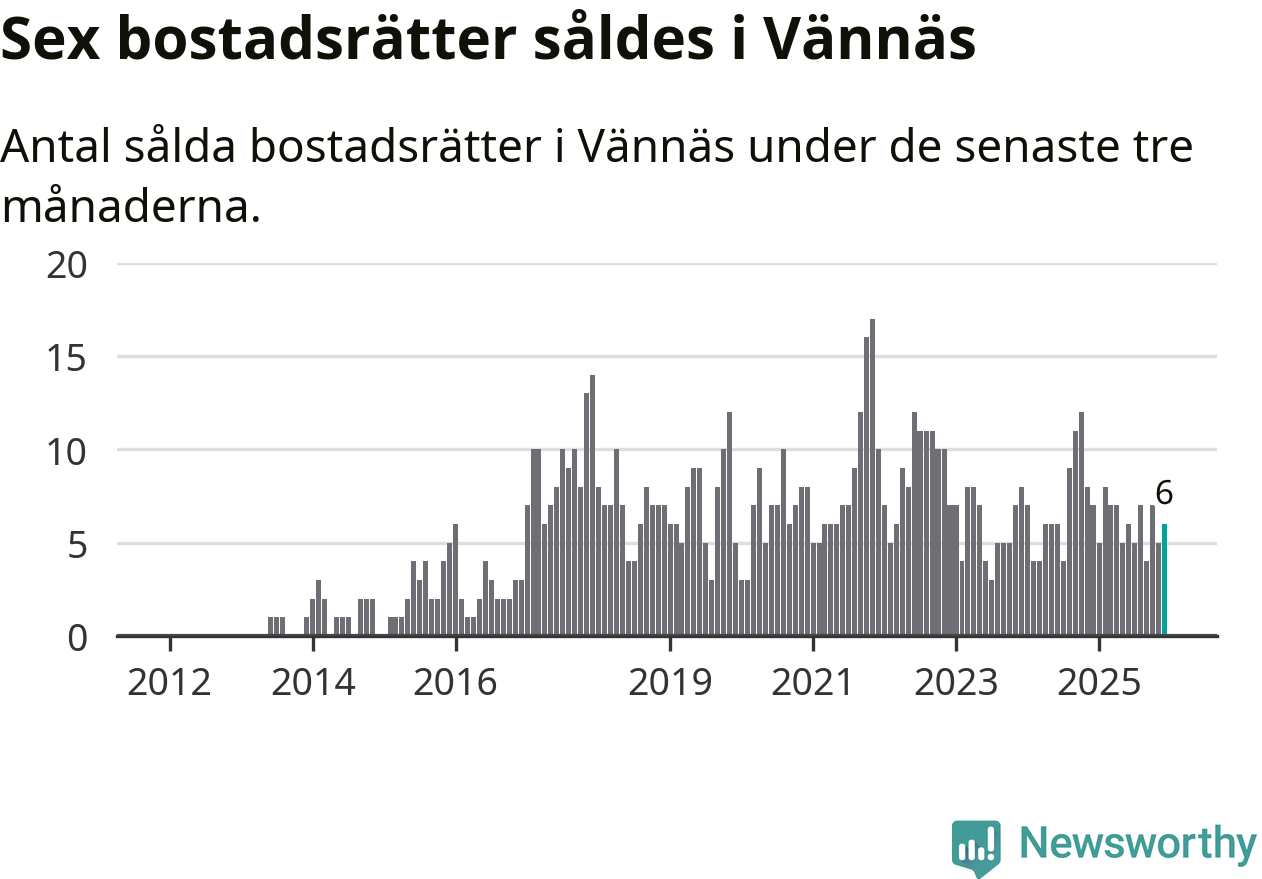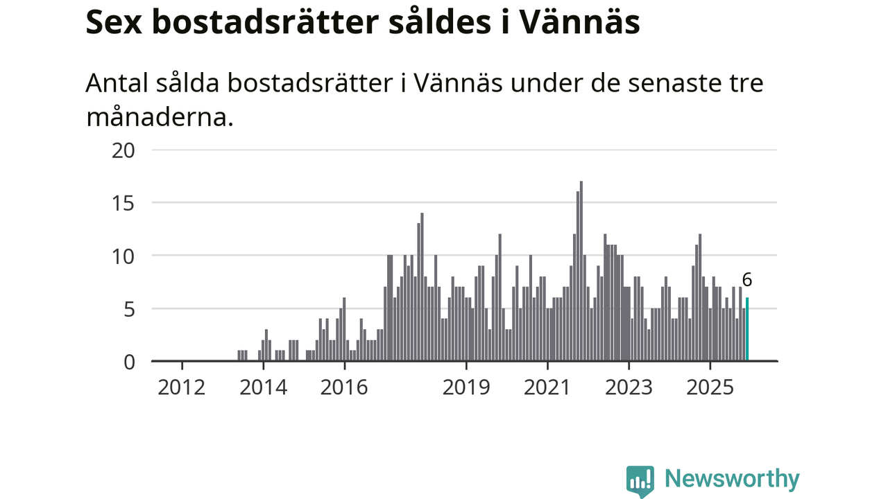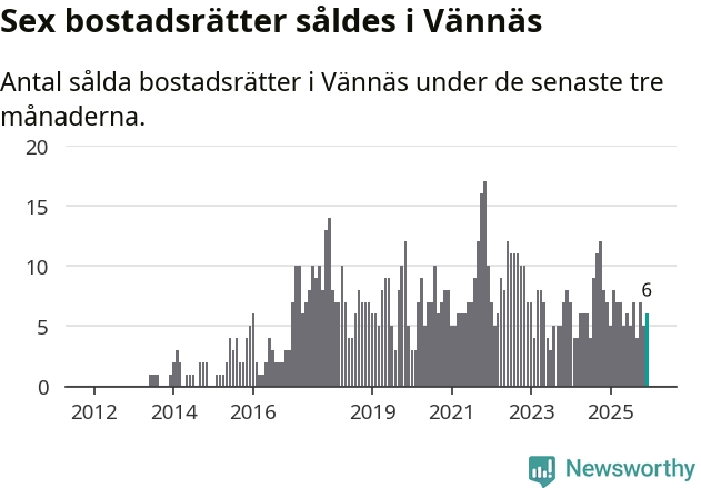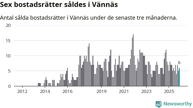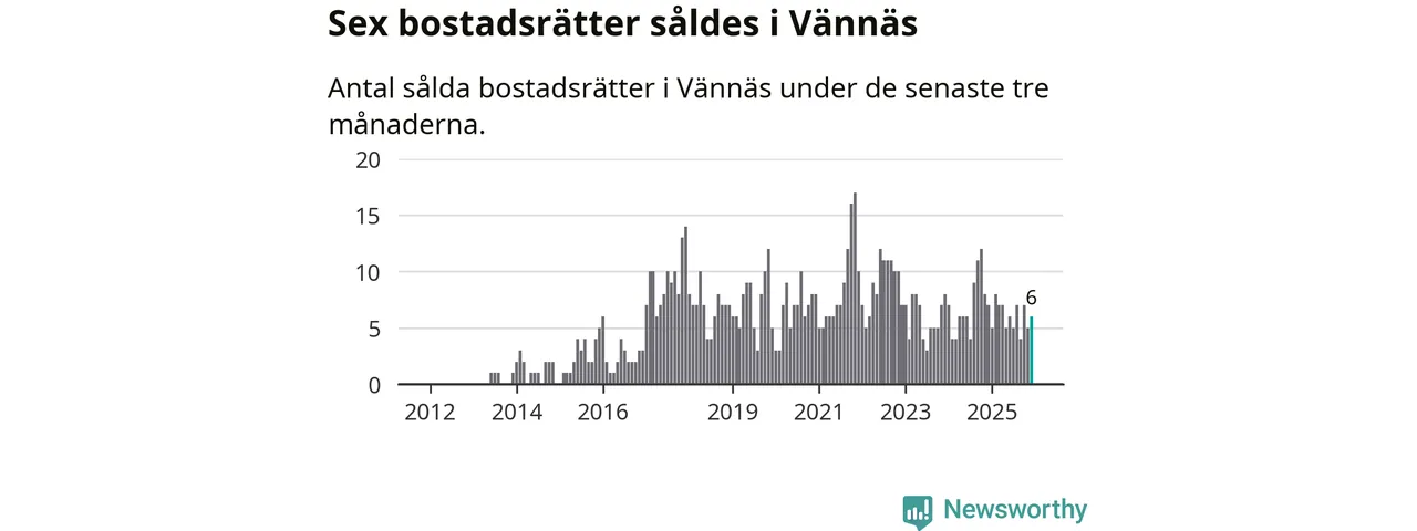 Mellan oktober och december gjordes sammanlagt sex affärer med bostadsrätter i Vännäs kommun. Det kan jämföras med sju vid motsvarande tid i fjol.