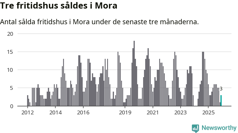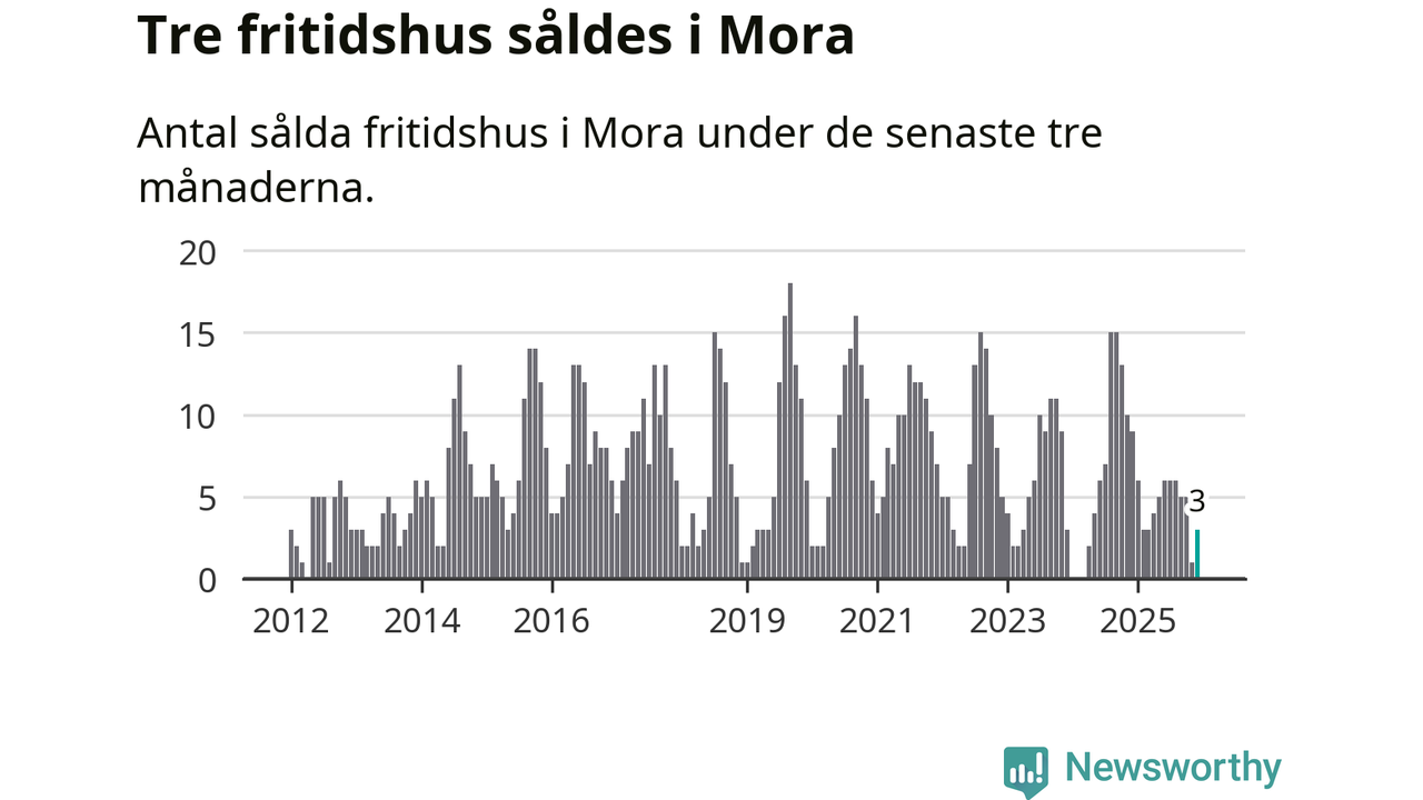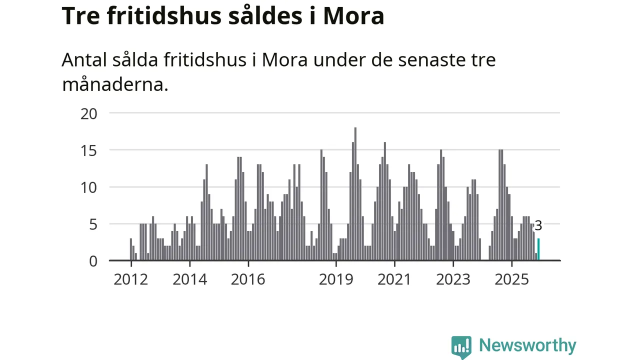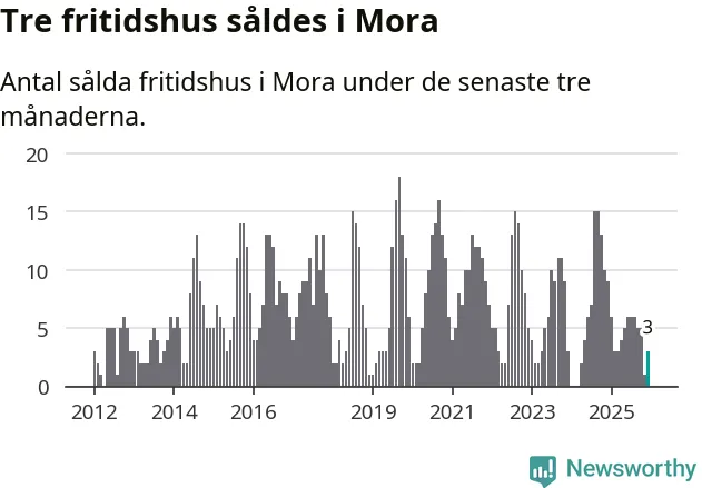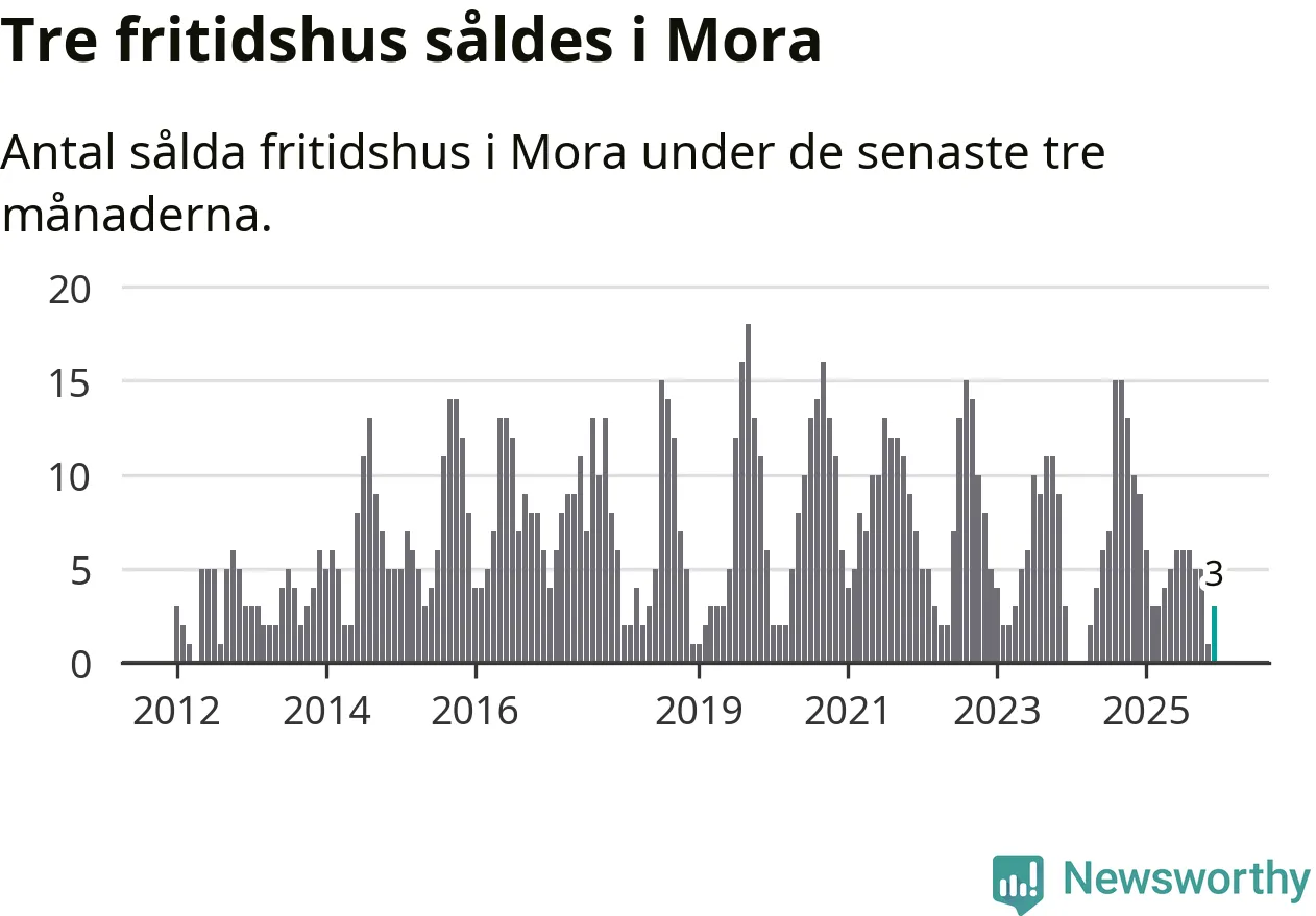 Mellan oktober och december gjordes sammanlagt tre affärer med fritidshus i Mora kommun. Det kan jämföras med nio vid motsvarande tid i fjol.