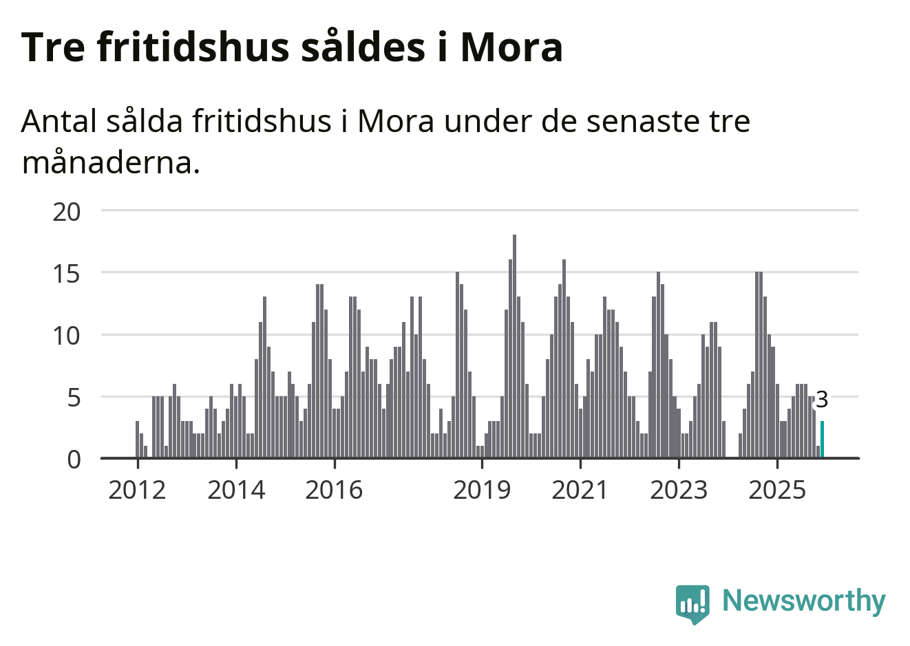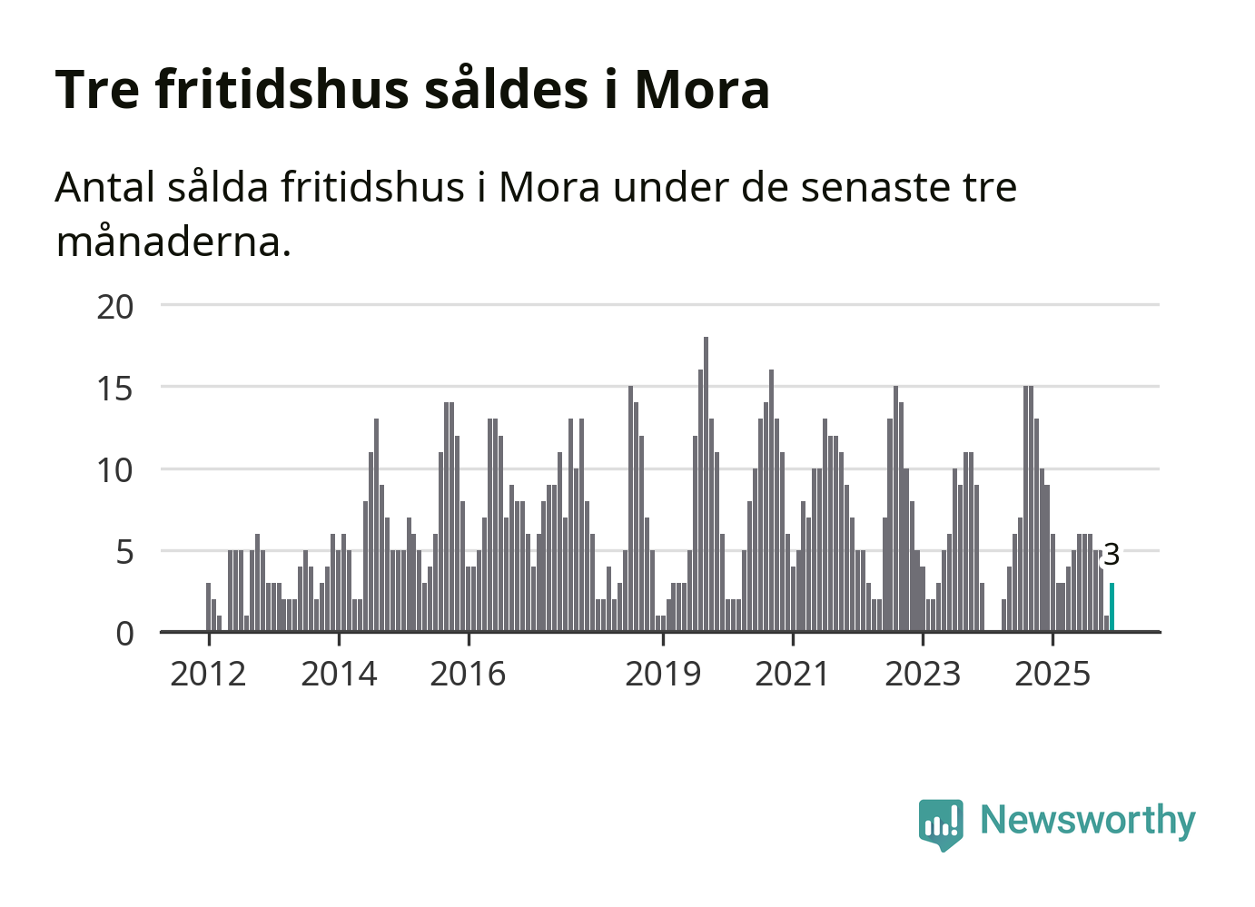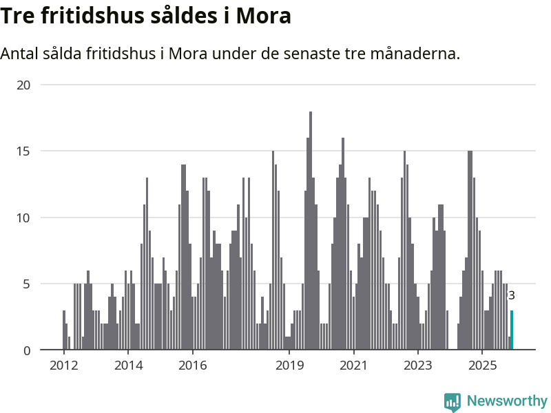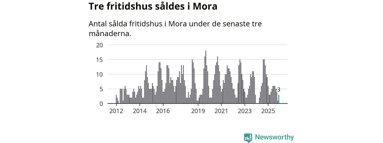 Mellan oktober och december gjordes sammanlagt tre affärer med fritidshus i Mora kommun. Det kan jämföras med nio vid motsvarande tid i fjol.