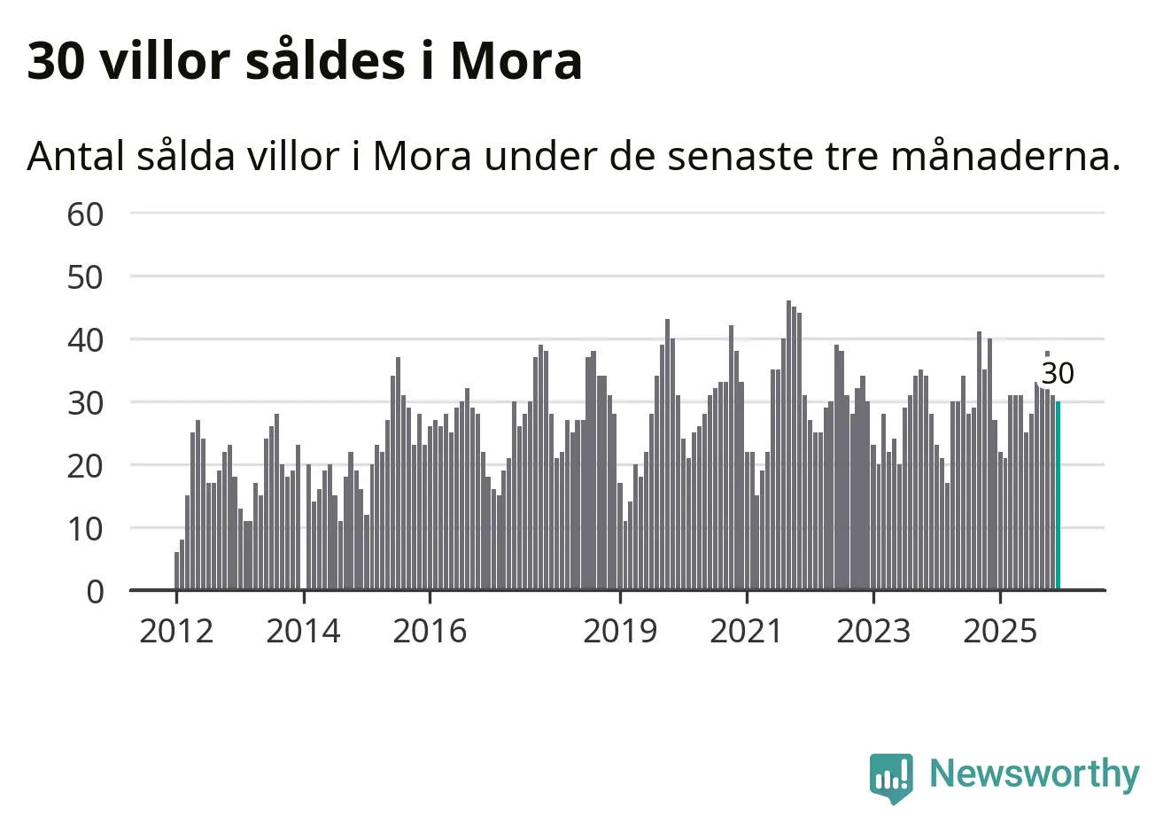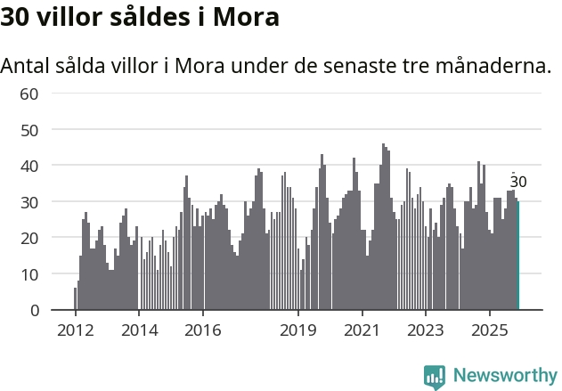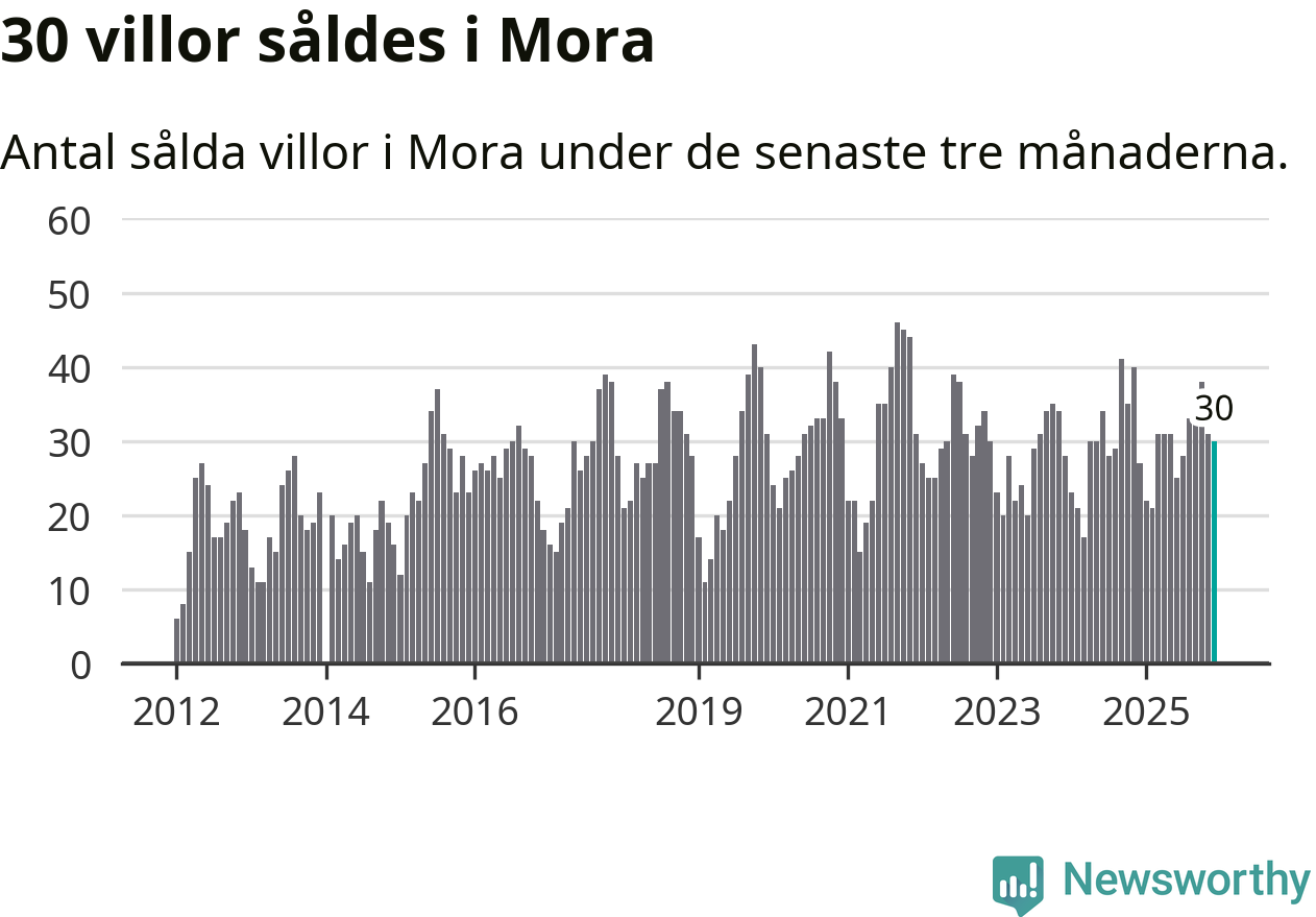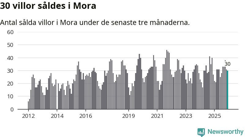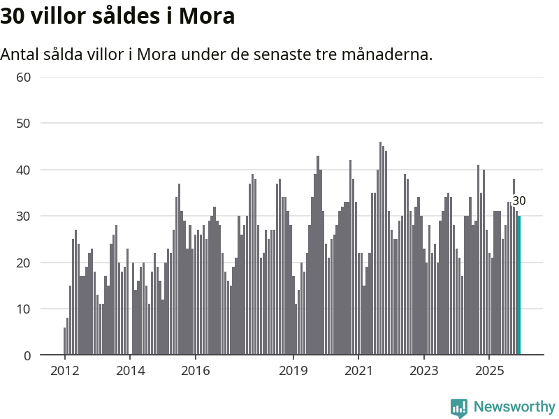 Mellan oktober och december gjordes sammanlagt 30 affärer med villor i Mora kommun. Det kan jämföras med 27 vid motsvarande tid i fjol.