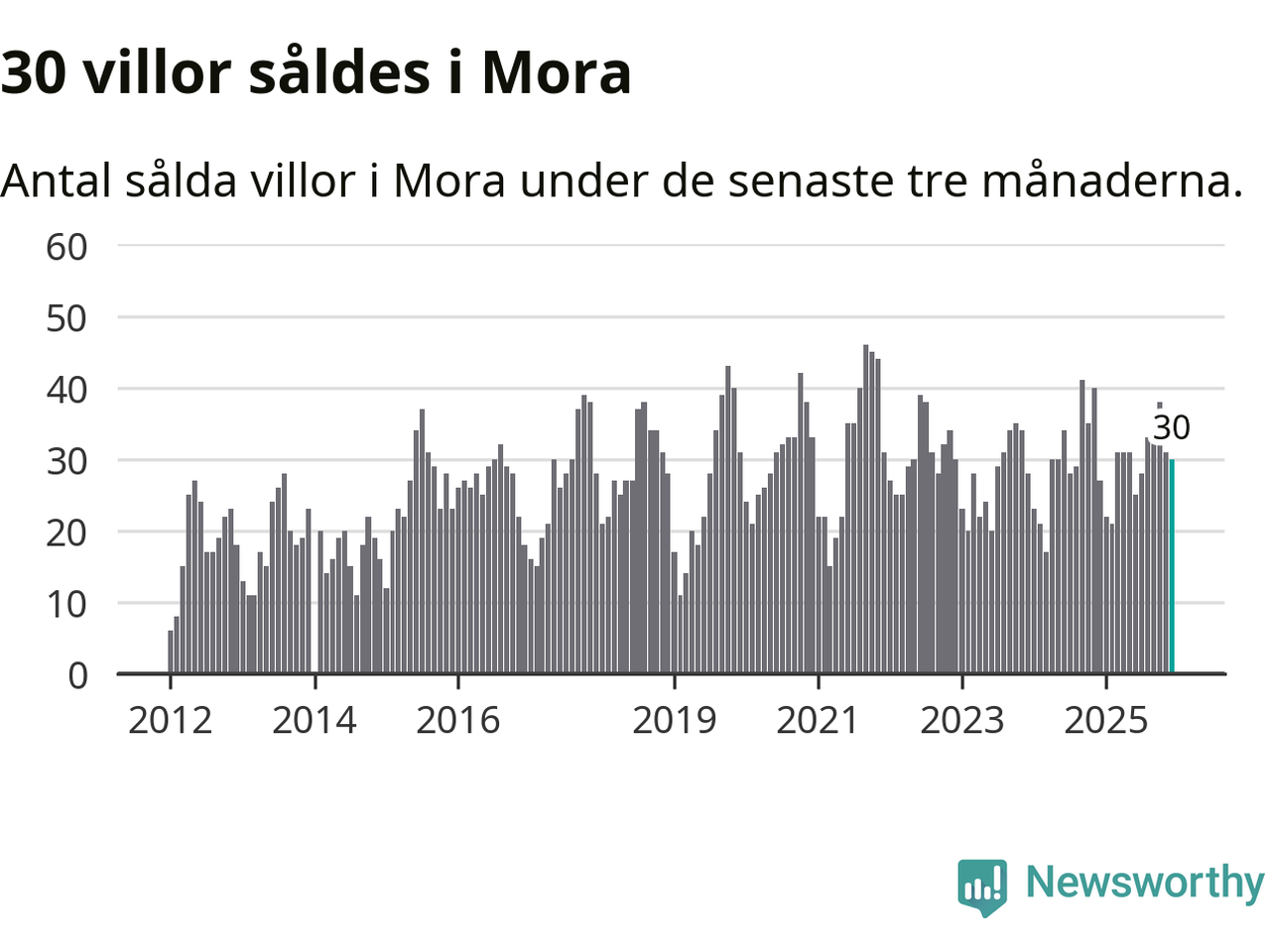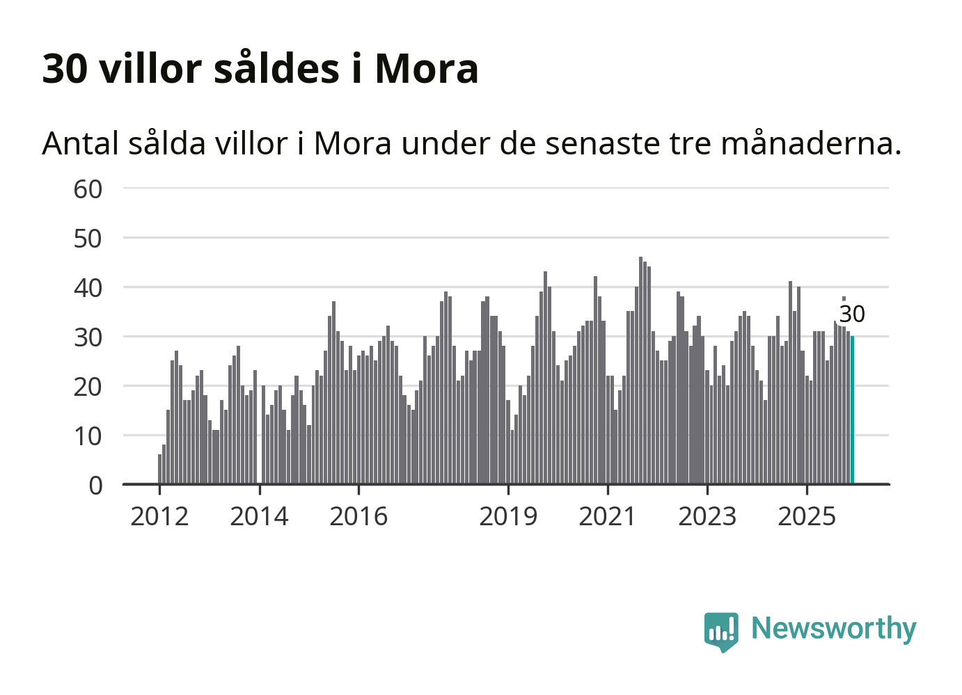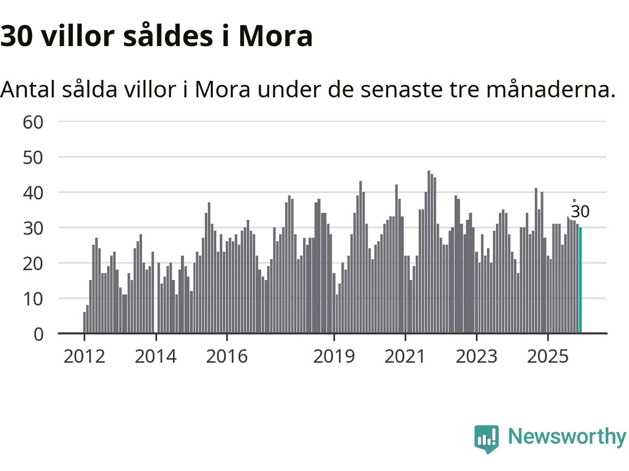 Mellan oktober och december gjordes sammanlagt 30 affärer med villor i Mora kommun. Det kan jämföras med 27 vid motsvarande tid i fjol.